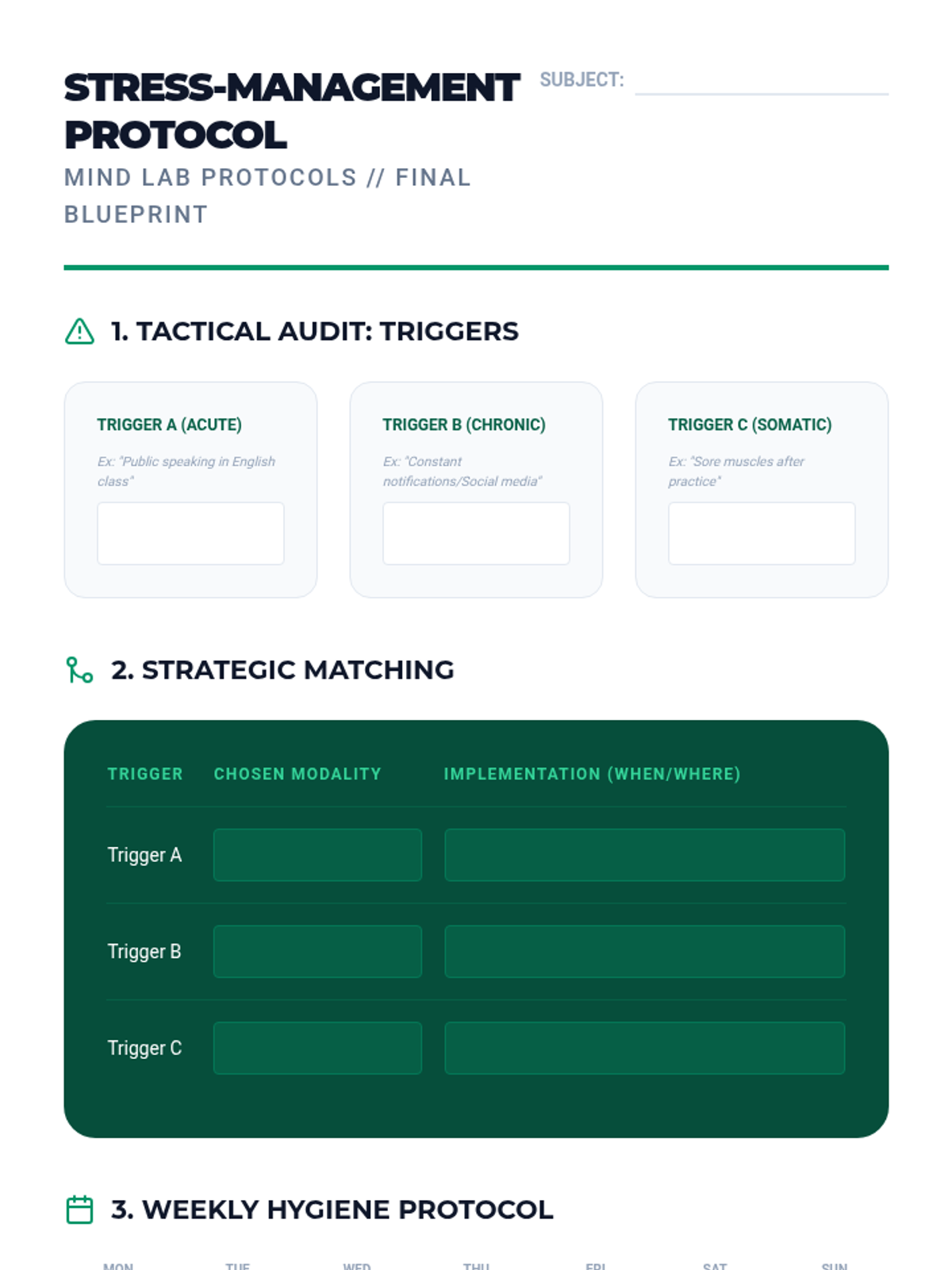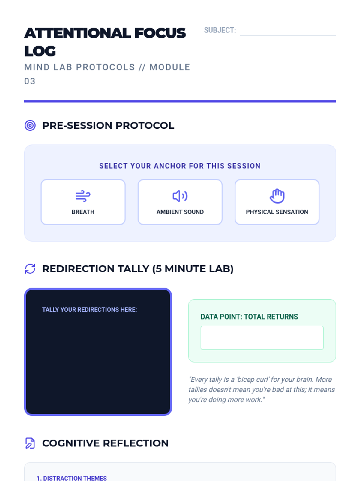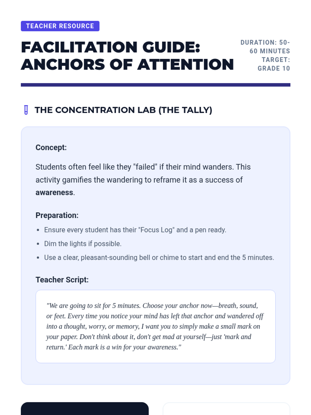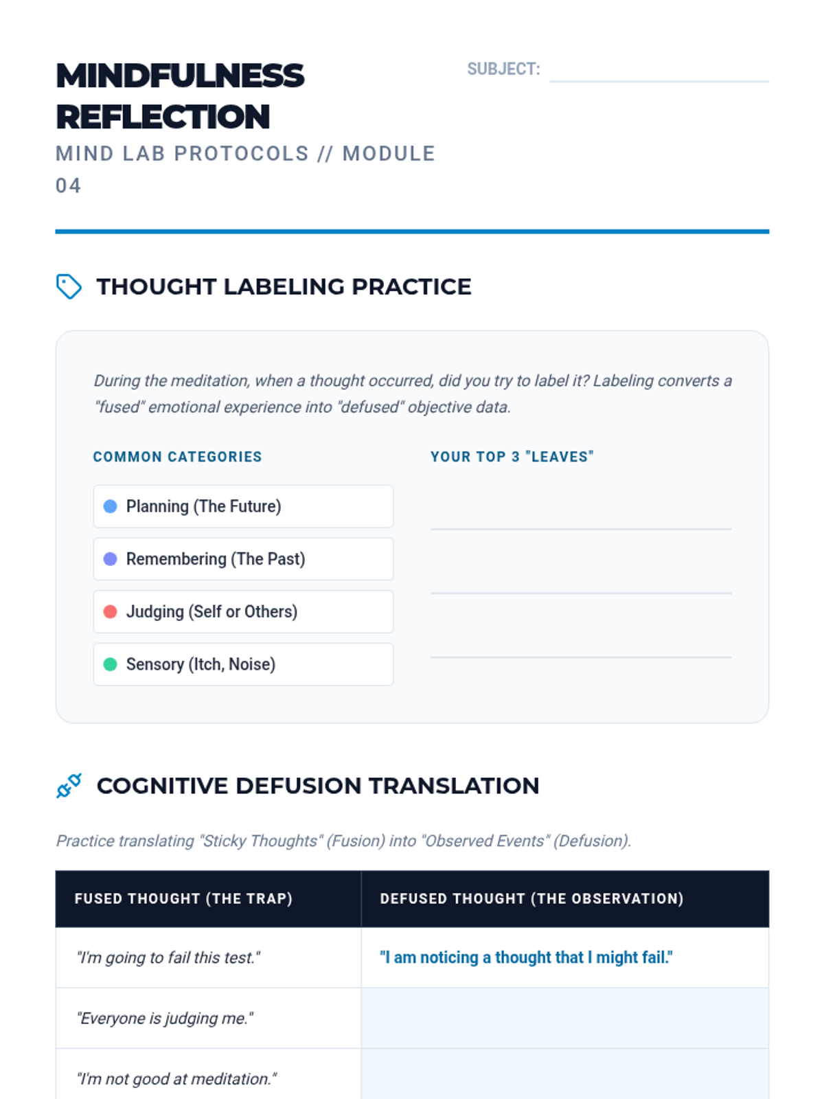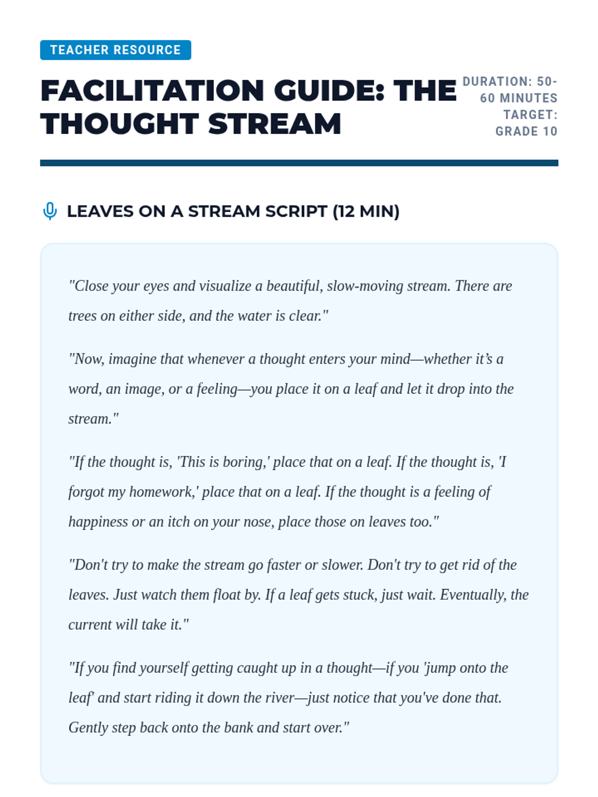 A comprehensive 10th-grade sequence exploring the intersection of neuroscience and mindfulness. Students learn the physiological basis of stress and master various meditation techniques—from box breathing to cognitive defusion—to build a personalized mental regulation protocol.