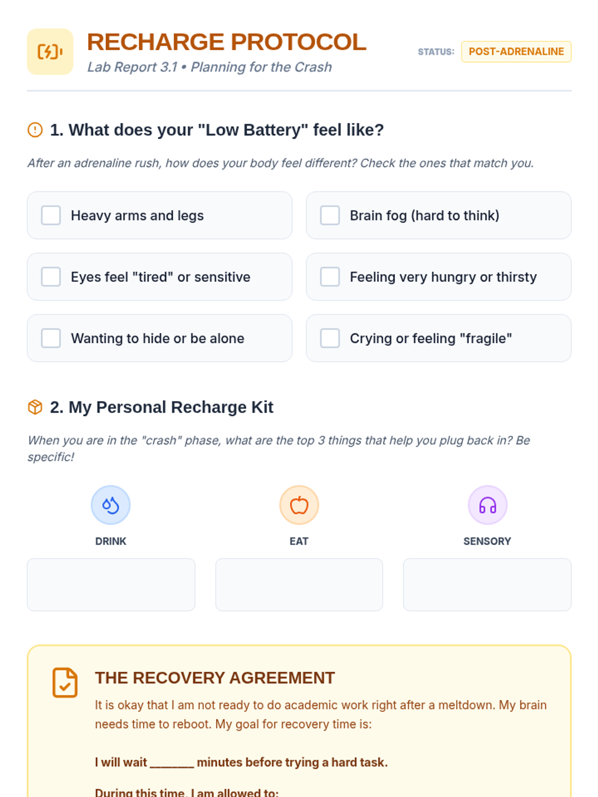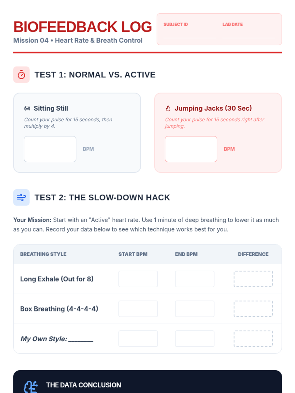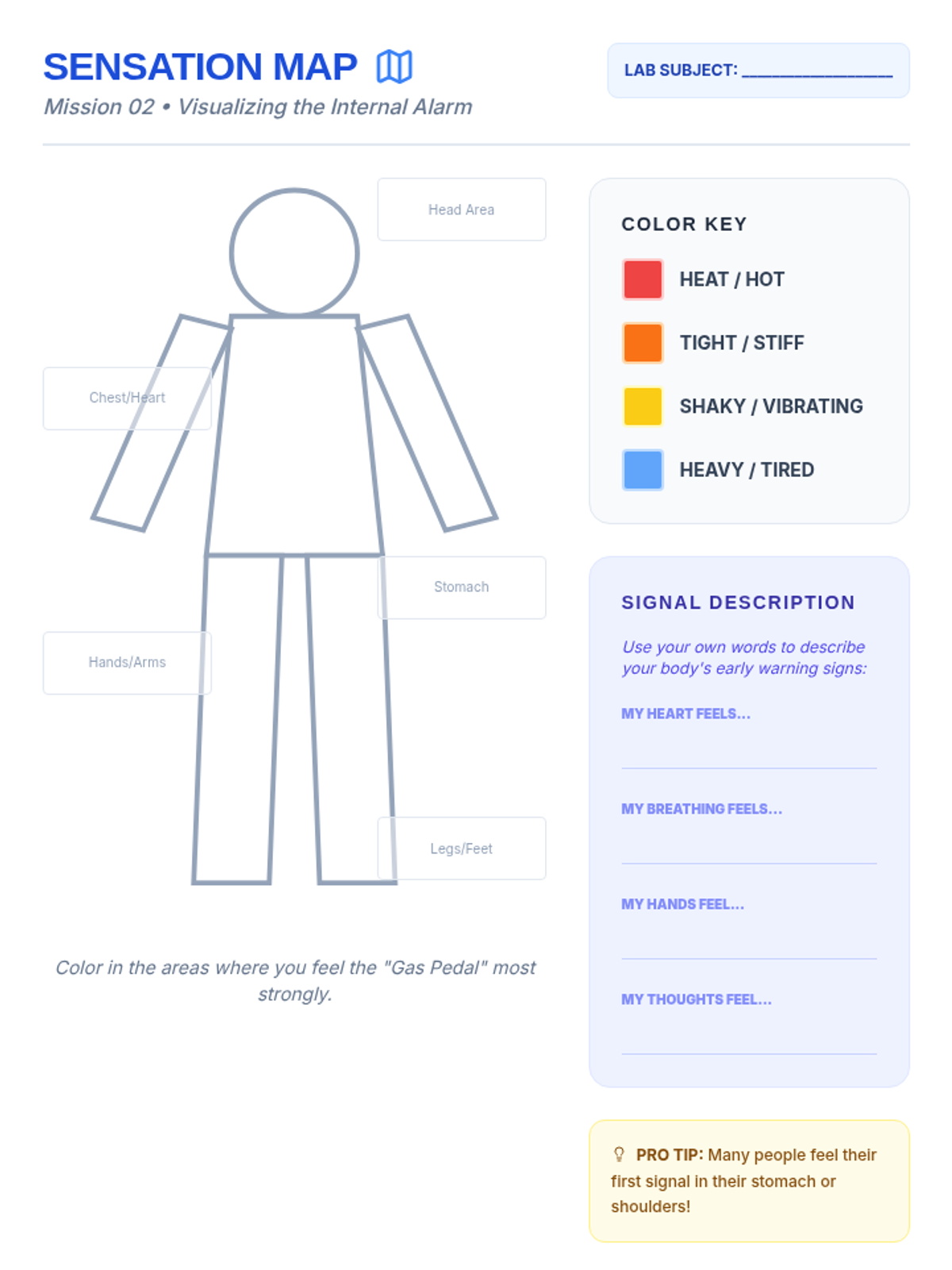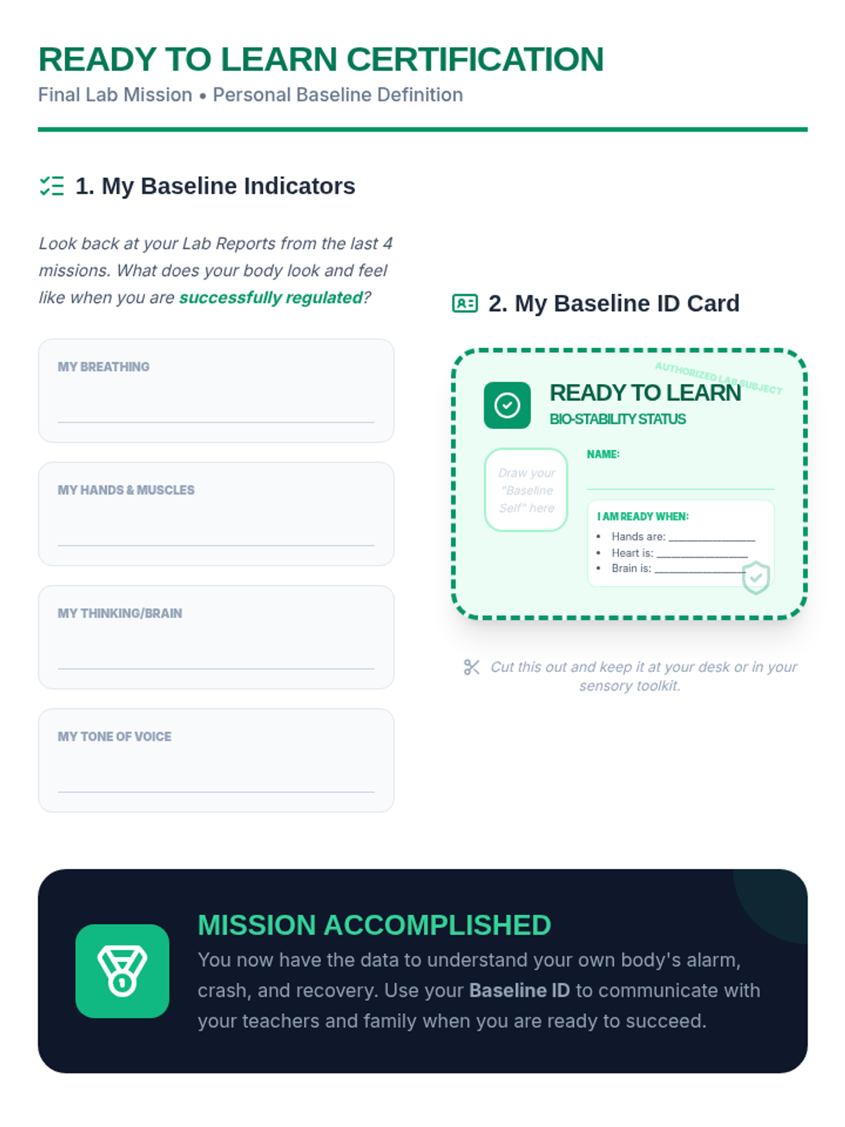 This sequence guides 6th-grade students through the biological mechanisms of stress and recovery. Students explore the autonomic nervous system to identify personal physiological indicators of escalation and de-escalation, culminating in a personalized 'Body Map' and 'Baseline Checklist' to recognize when they are ready to return to learning.