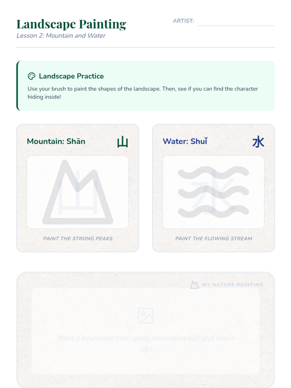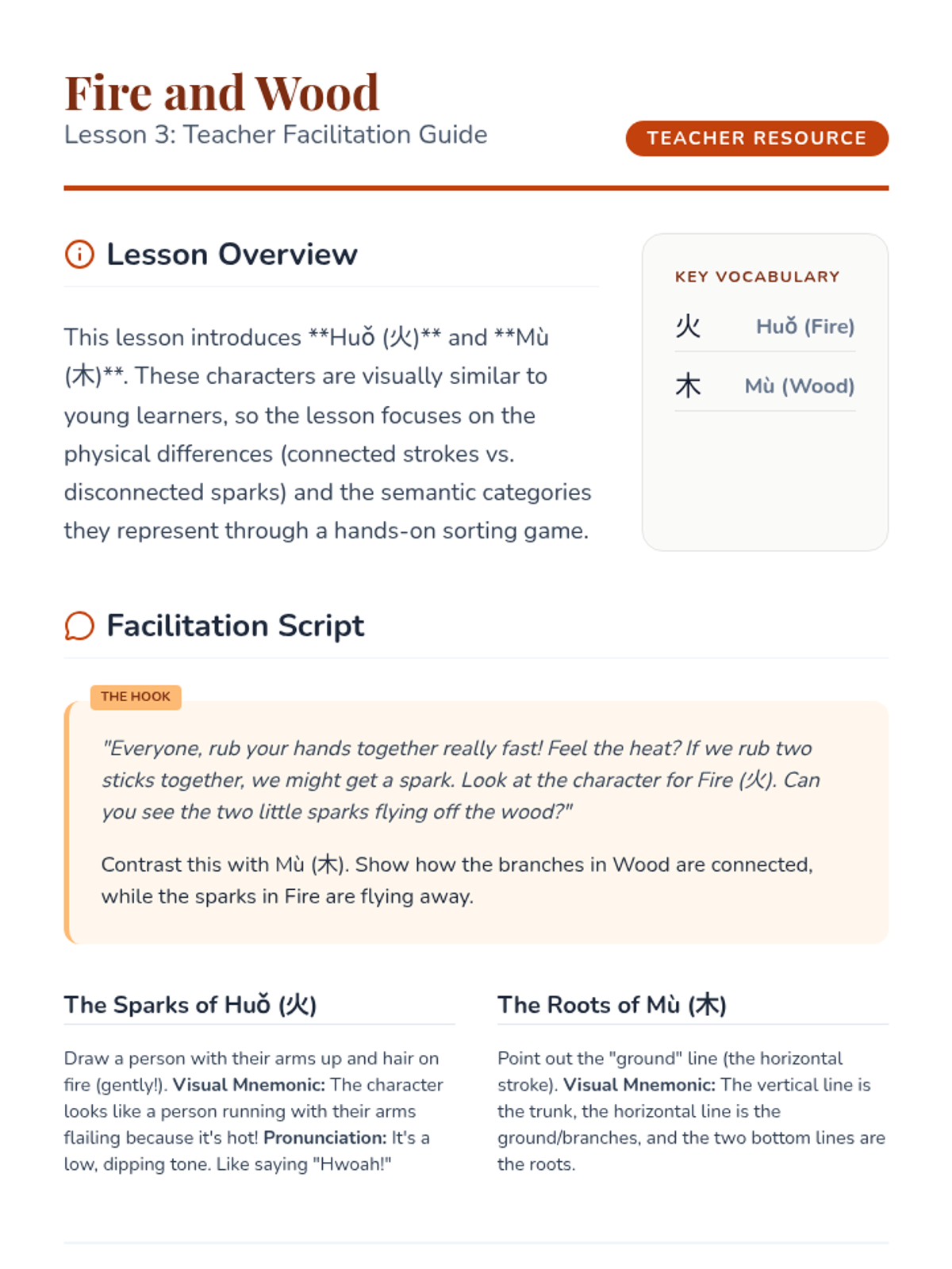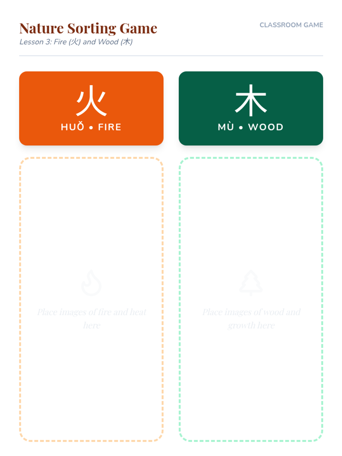 Students explore the origins of Chinese characters by connecting them to illustrations of the natural world. This inquiry-based sequence helps students visualize the evolution from ancient pictographs to modern Hanzi, focusing on high-frequency nature words like sun, moon, water, fire, tree, and mountain.