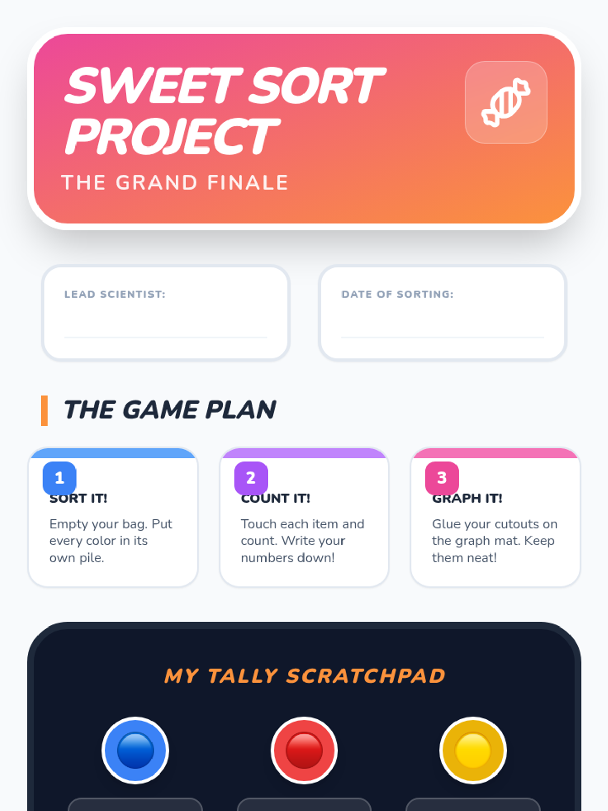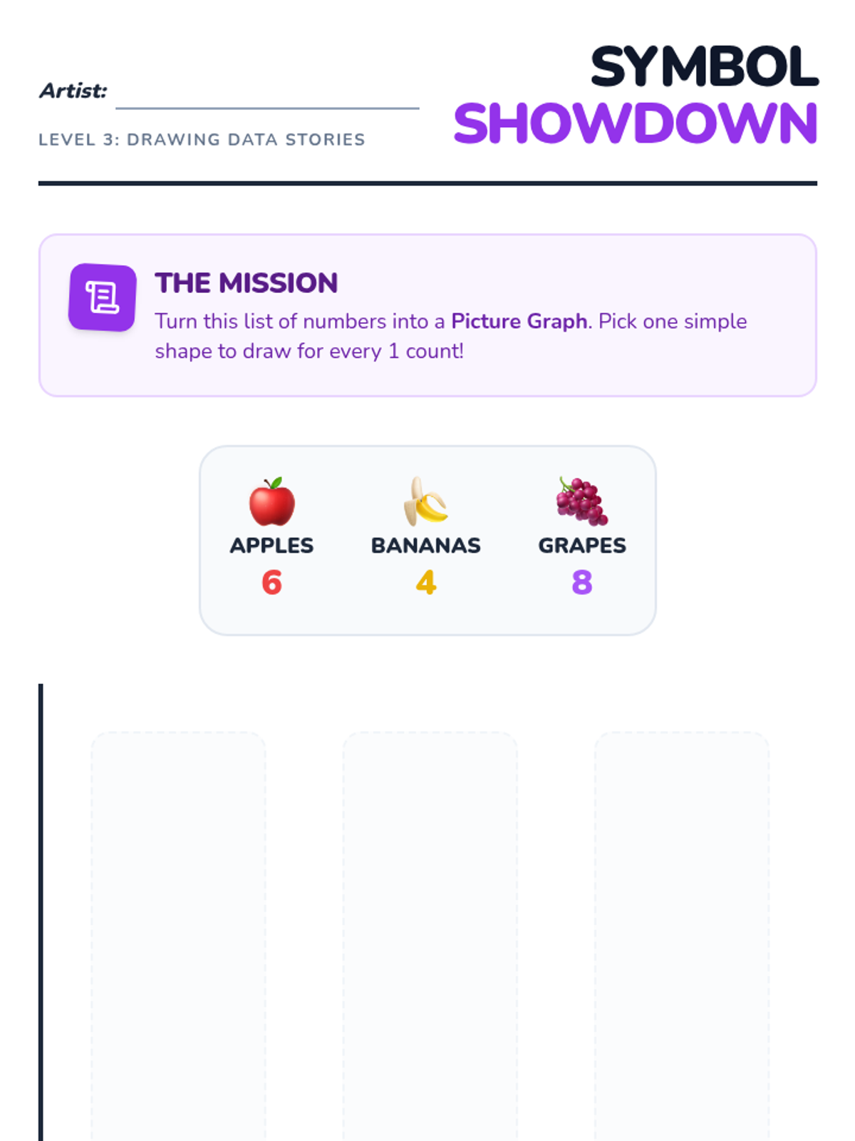 A 1st-grade unit on creating and interpreting picture graphs, moving from concrete 3D objects to abstract 2D representations. Students learn one-to-one correspondence, alignment, and data interpretation through hands-on activities.