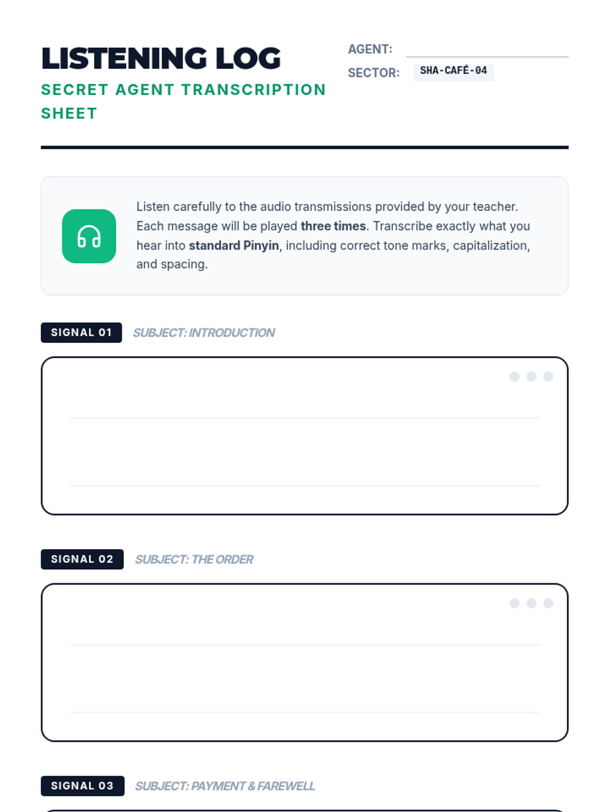 This sequence focuses on the cognitive processing of numerical data in Mandarin Chinese, moving from basic digits to complex phone numbers, calendar dates, clock times, and marketplace currency. Students will develop rapid auditory recognition through gamified scenarios like emergency dispatch, time travel, and transit scheduling.