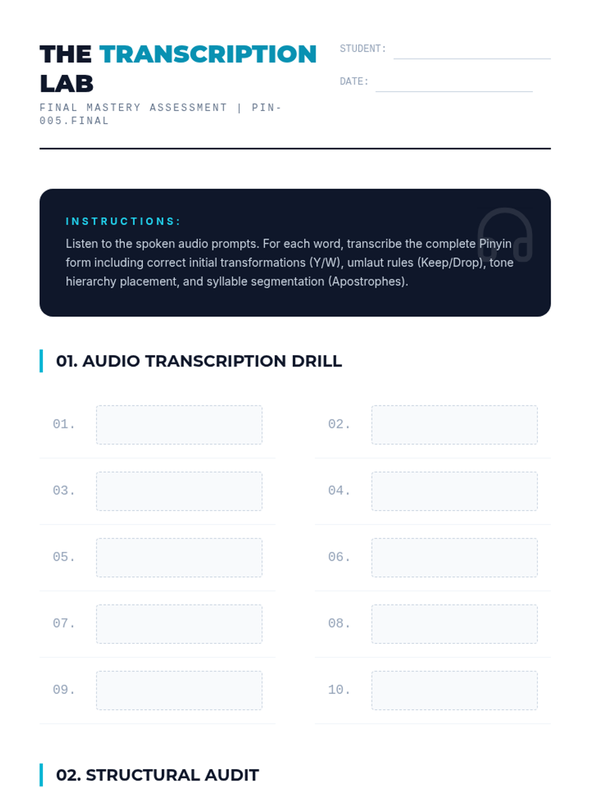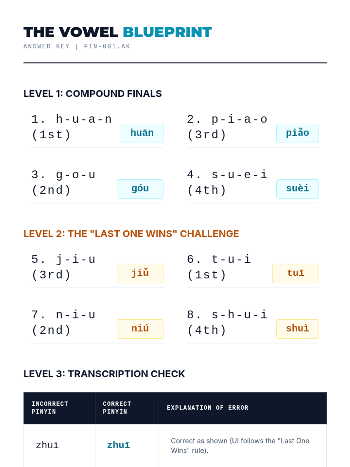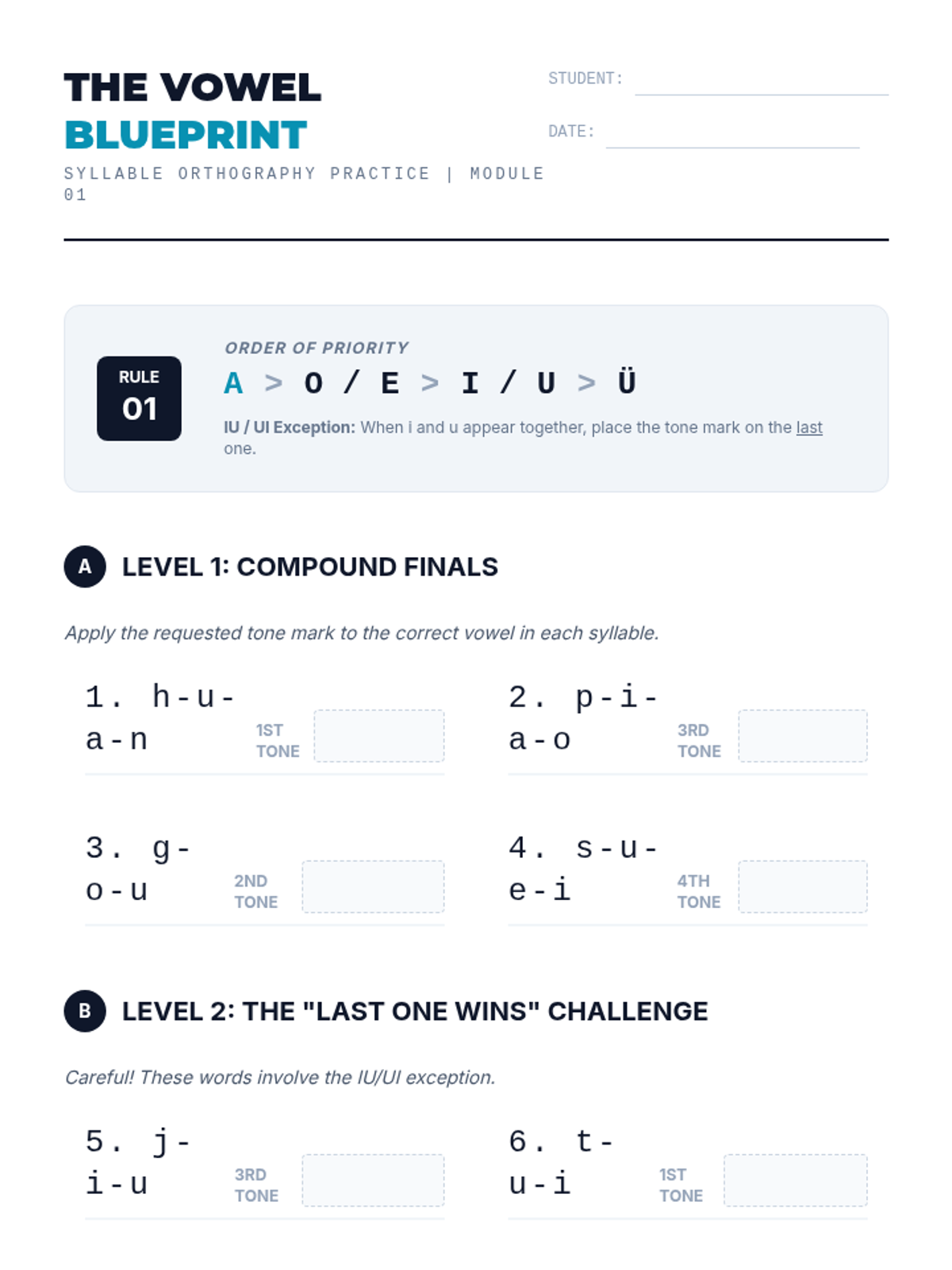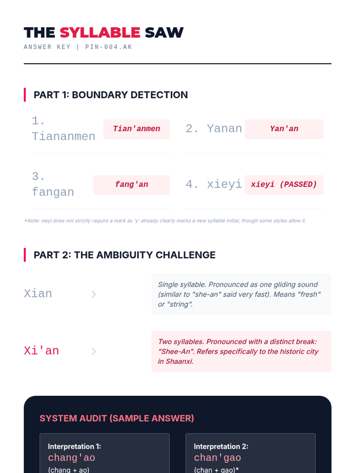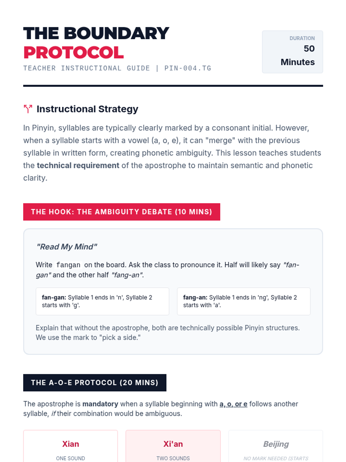 A comprehensive unit for 11th-grade Mandarin learners focusing on the technical orthography of Pinyin. Students master tone mark placement, zero-initial transformations (y/w), the j/q/x/ü umlaut rule, and syllable segmentation using apostrophes.