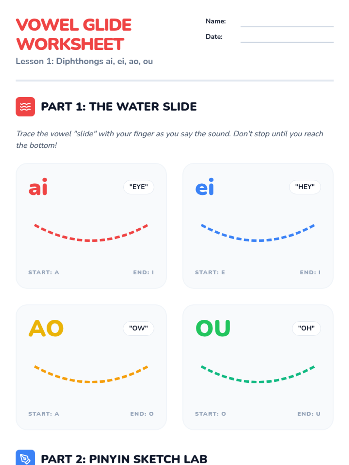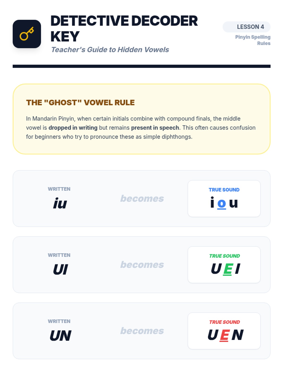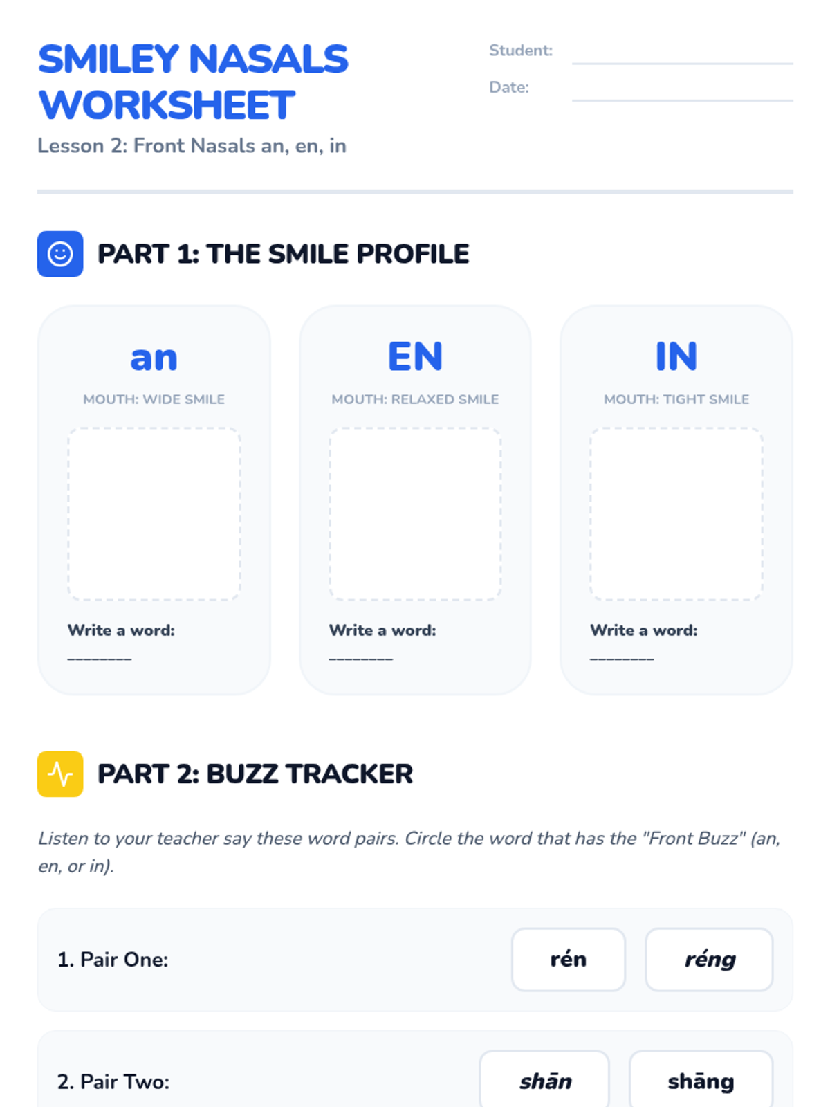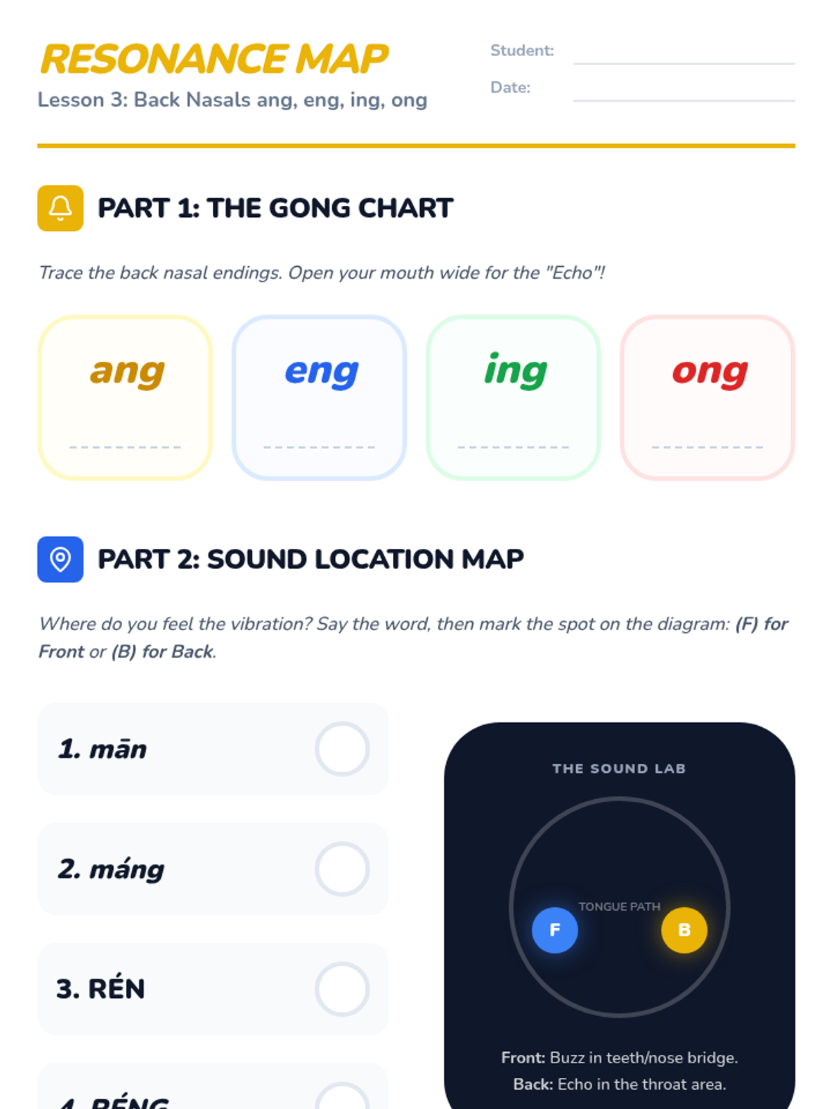 A 5th-grade Mandarin Pinyin sequence focusing on the pronunciation of compound finals and nasal endings through playful, rhythmic practice. Students will master diphthongs, front and back nasals, and the orthographic rules of hidden vowels to improve their articulation and rhyming skills.