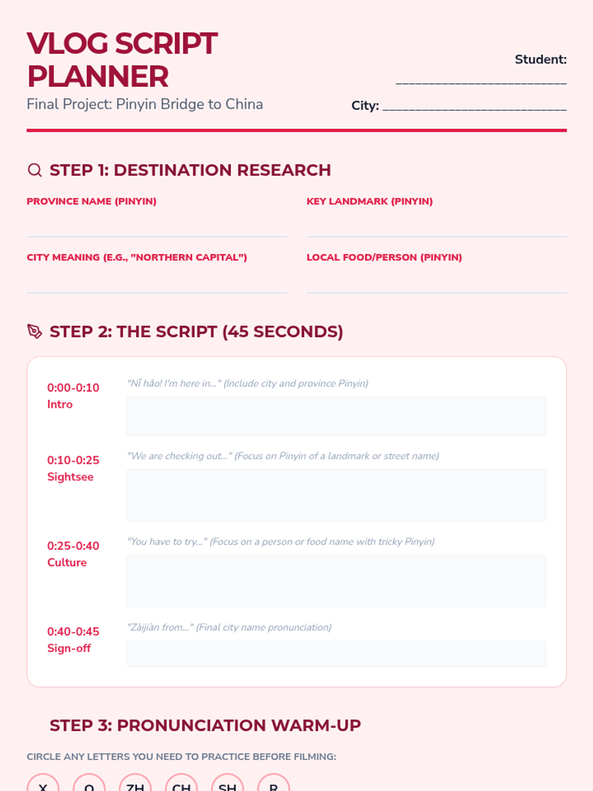 A 10th-grade Mandarin Chinese sequence focusing on the practical application of Pinyin in real-world contexts, including geography, personal names, branding, and navigation.
