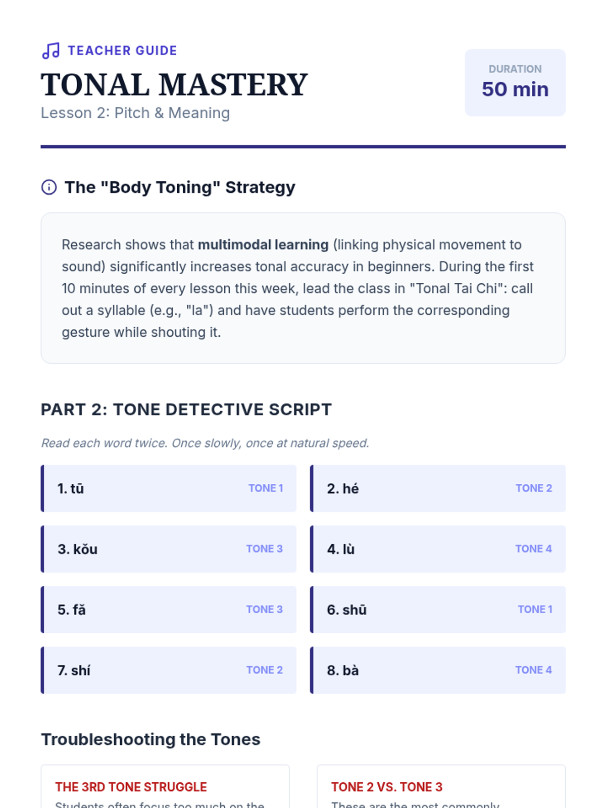 This sequence establishes the foundational mechanics of Mandarin Chinese pronunciation through intensive workshop-style practice, focusing on the Pinyin system, tones, and articulation rules.