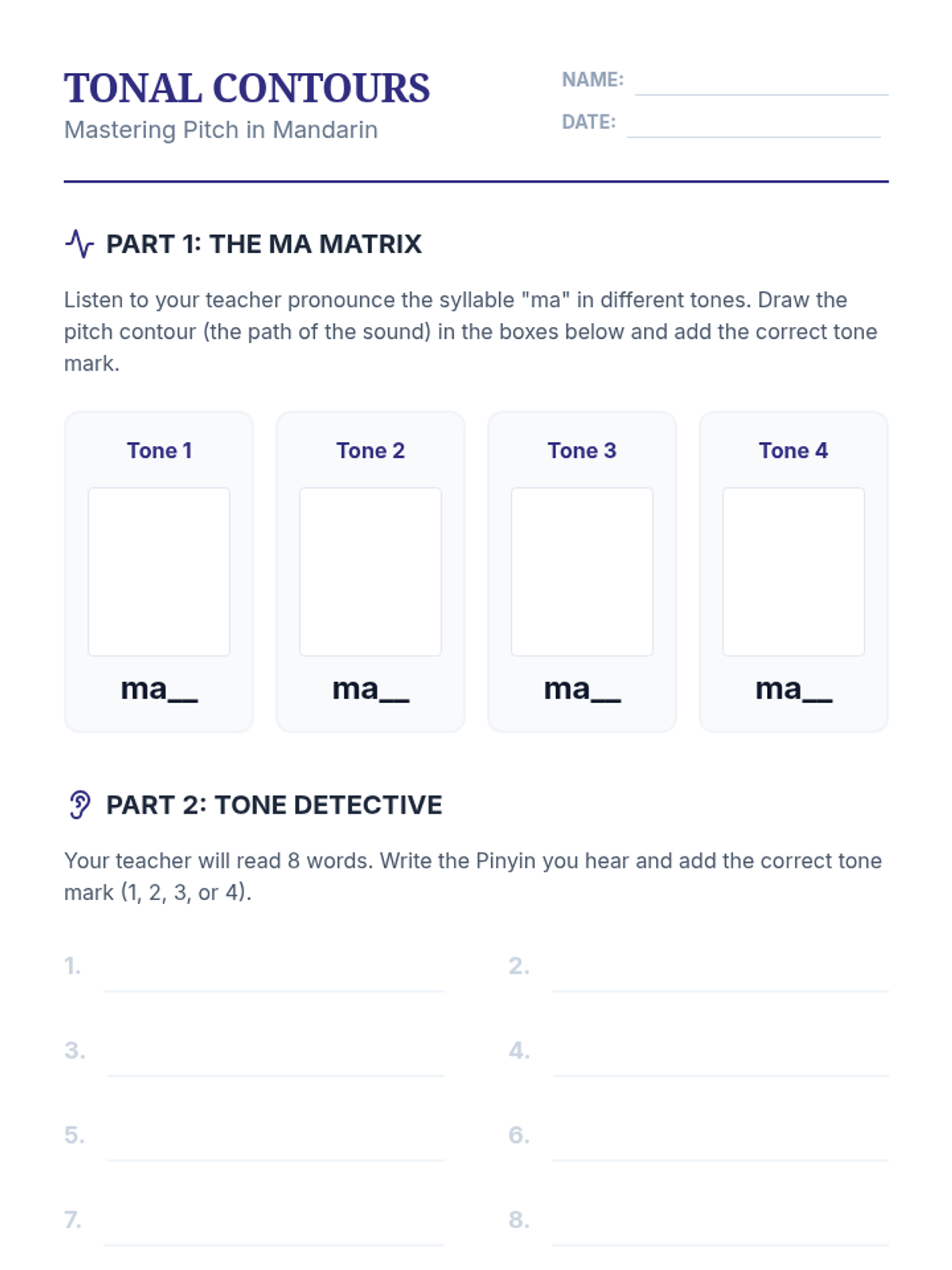 An immersive listening sequence designed for elementary-age beginner ESL students. This unit helps young learners navigate the routines, spaces, and social expectations of a primary school classroom, moving from basic imperative commands to understanding daily schedules and peer introductions.