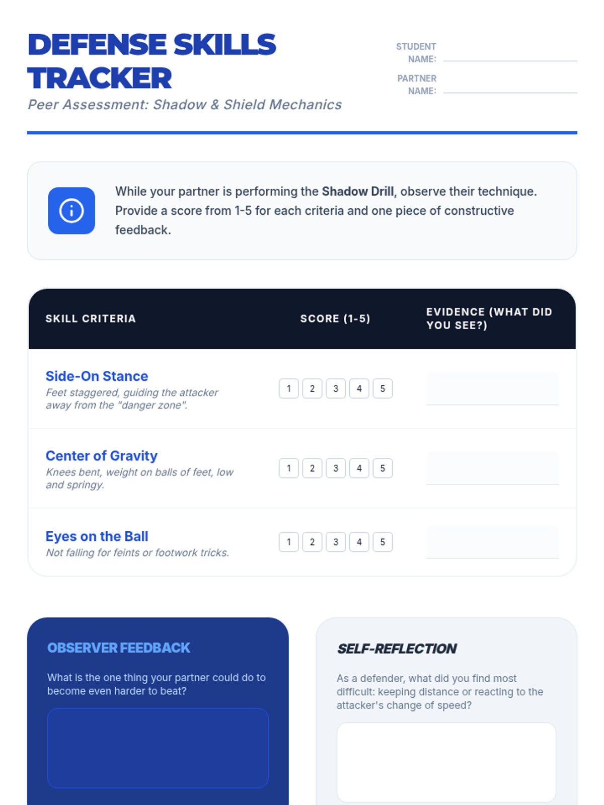 A 5-lesson unit for 7th grade students focusing on the biomechanics of self-defense, specifically blocking, deflecting, and leverage-based wrist releases. Students explore how to use their body efficiently to protect themselves and escape physical confrontation.