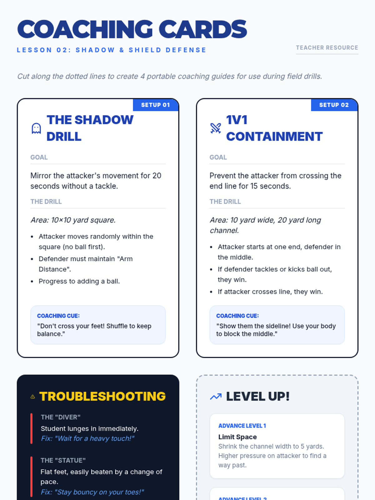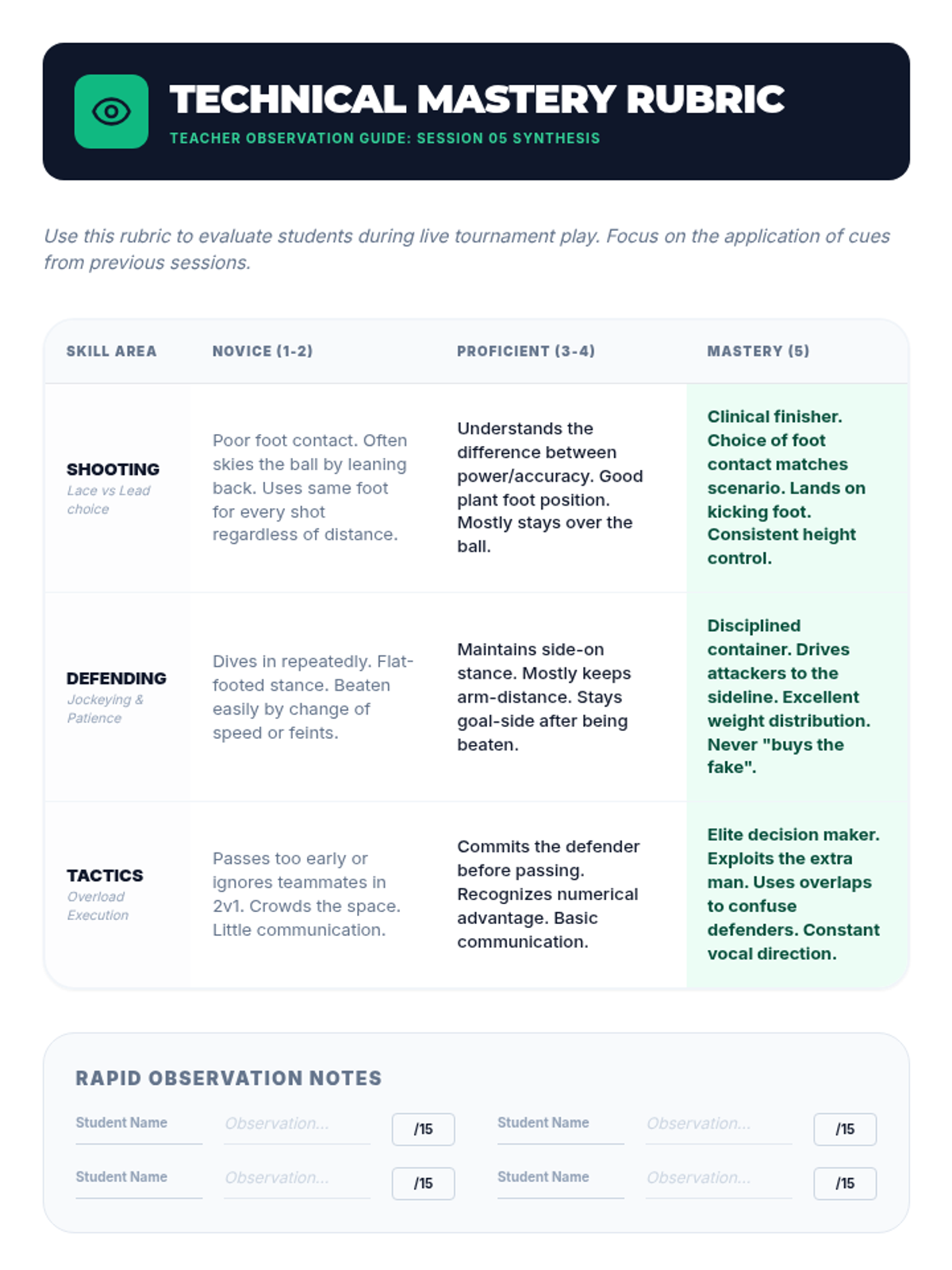 A comprehensive 7th-grade football sequence focusing on the technical mastery of shooting and the tactical discipline of defending, culminating in competitive small-sided games.
