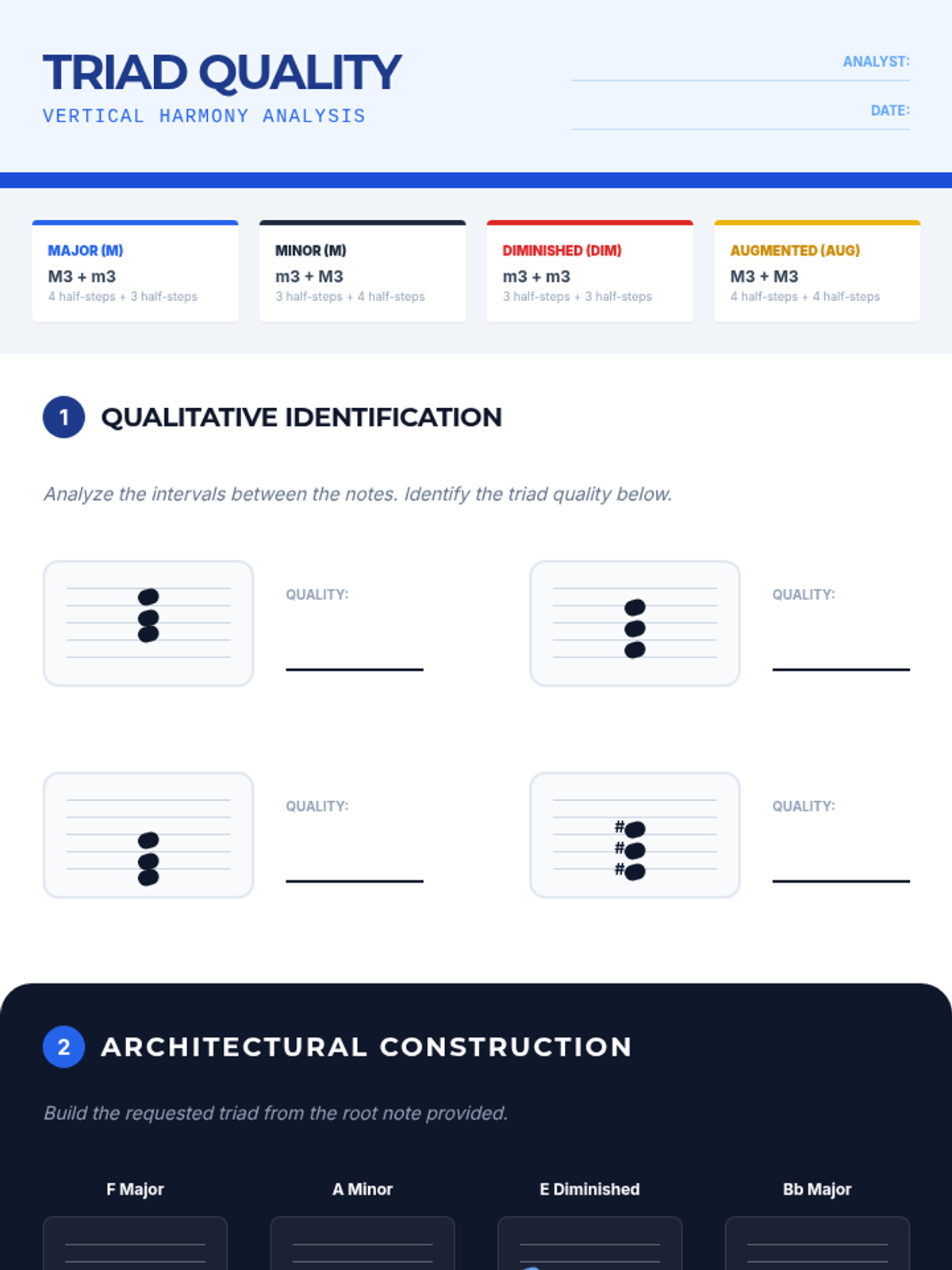 This sequence explores the organization of pitch into scales, intervals, and chords, treating music theory as a logical language. Students will progress from staff navigation to full Roman numeral analysis of diatonic progressions.