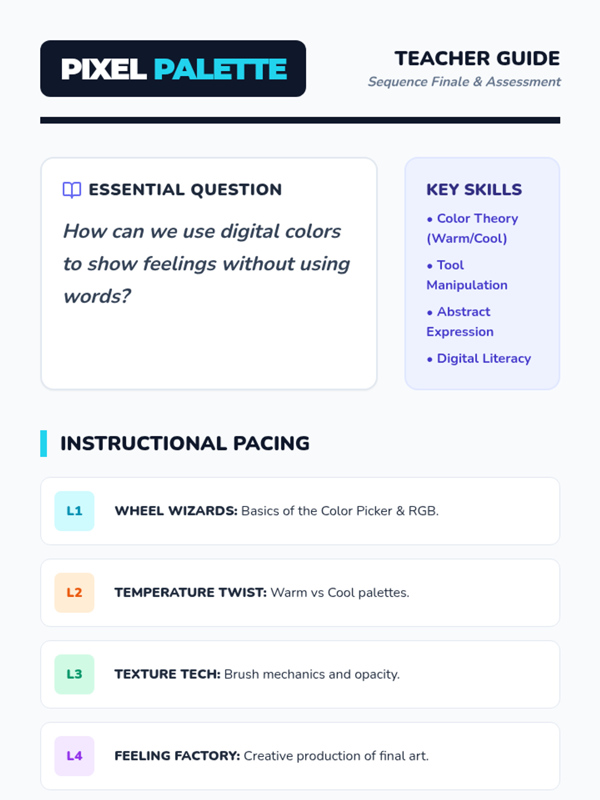 A 2nd-grade introduction to digital color theory, focusing on the emotional impact of warm and cool tones, brush textures, and abstract expression through digital media tools. Students learn to navigate digital interfaces while using color to communicate feelings without words.