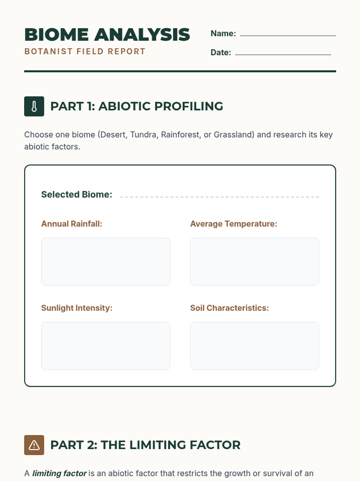 This sequence guides 6th-grade students through the fascinating world of plant adaptations. By exploring extreme biomes, water conservation strategies, competition for sunlight, and defense mechanisms, students develop a deep understanding of how environmental factors drive evolution and survival in the plant kingdom.
