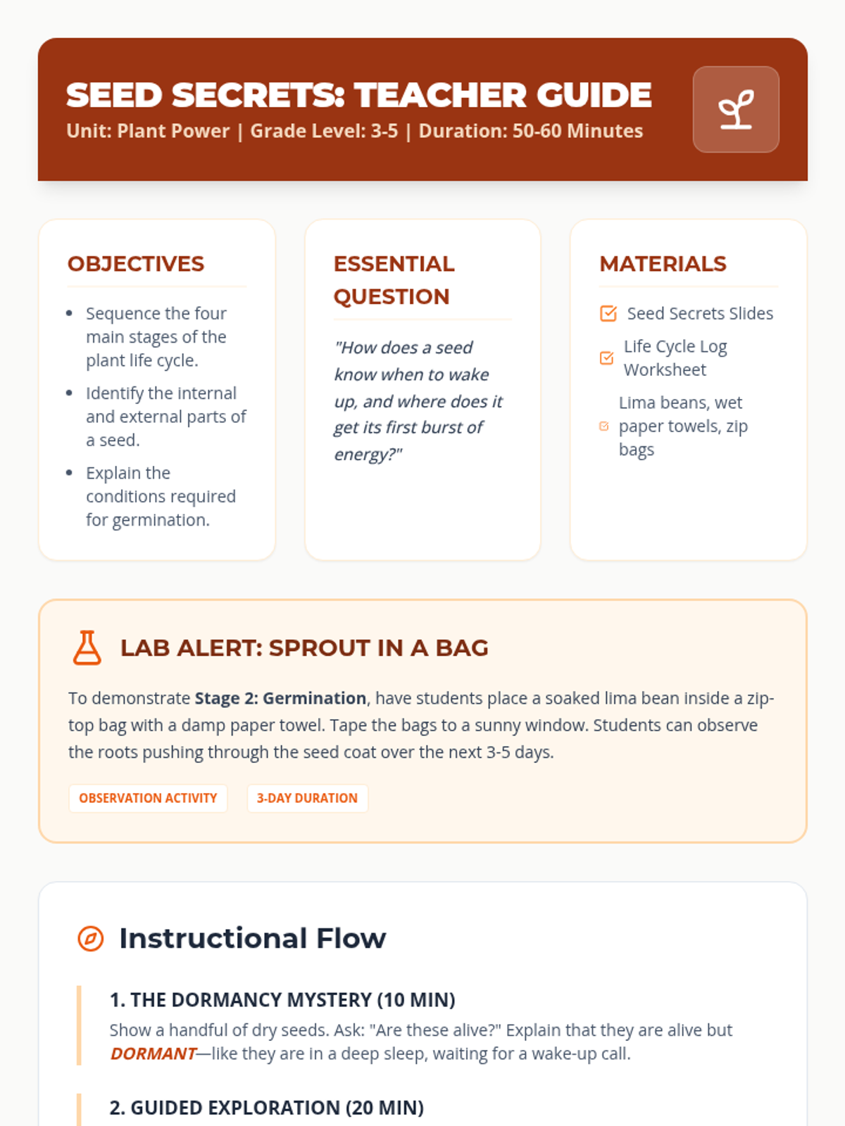 A 10-day project-based learning unit integrating 4th grade Math (multiplication/division) and Science (photosynthesis/life cycles). Students choose between designing a community garden or creating a garden business plan, applying their knowledge of plant systems to real-world calculations.