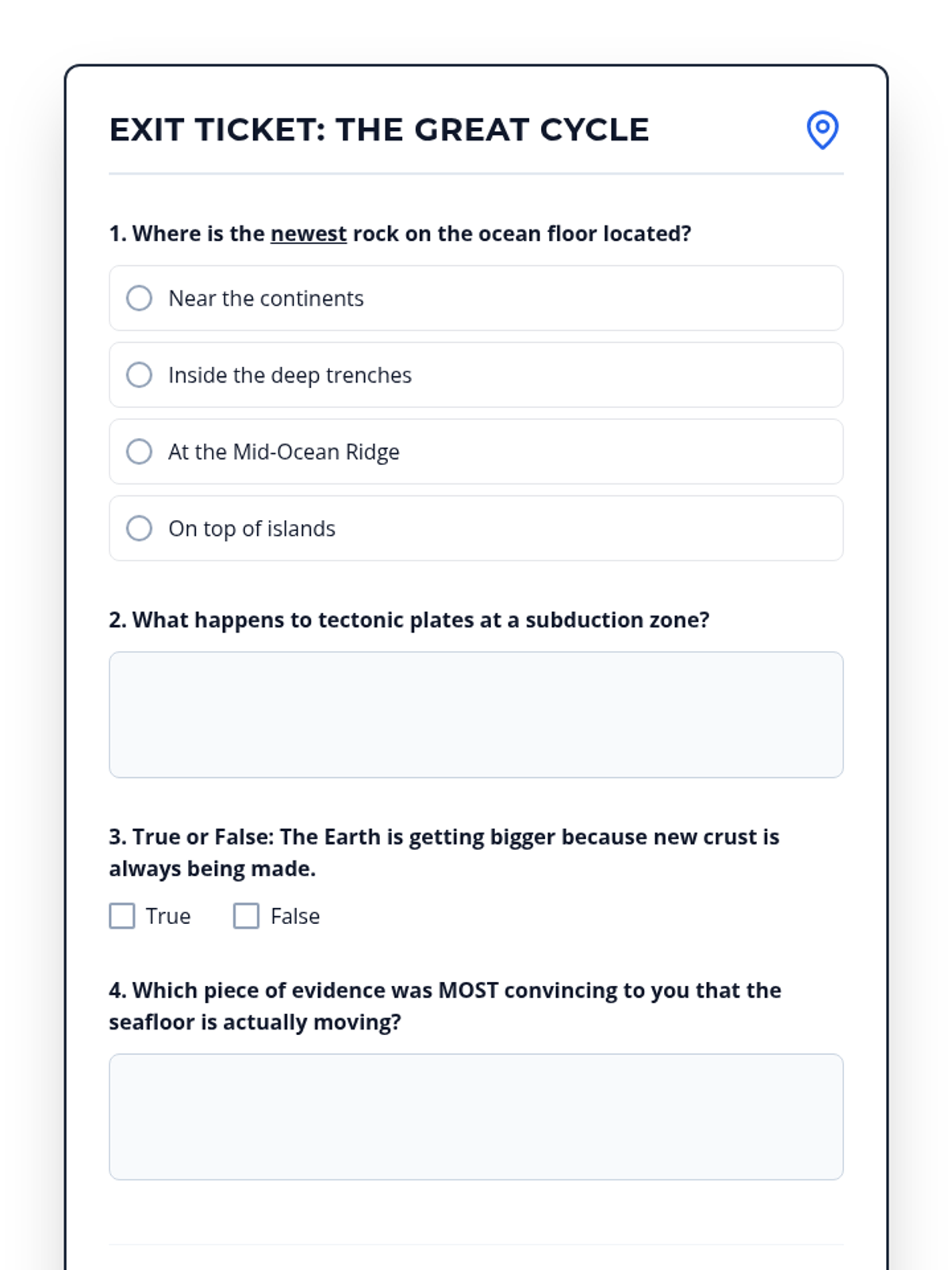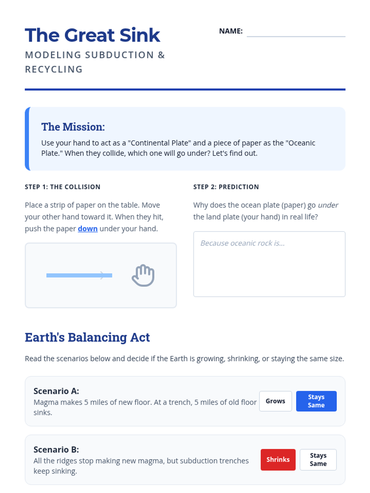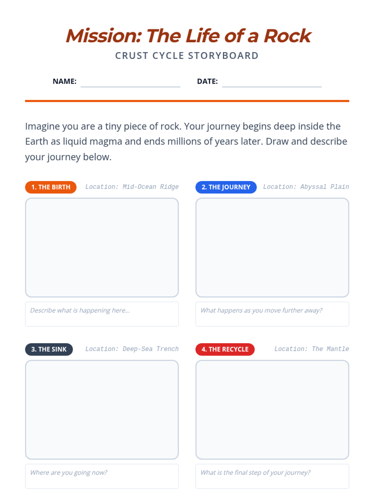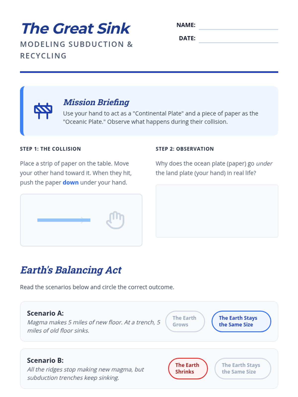 This sequence explores the hidden landscape of the ocean floor, the creation of new crust at mid-ocean ridges, and the recycling of old crust at subduction zones. Students will investigate the 'conveyor belt' mechanism of the Earth to answer why the planet isn't expanding despite constant crust generation.