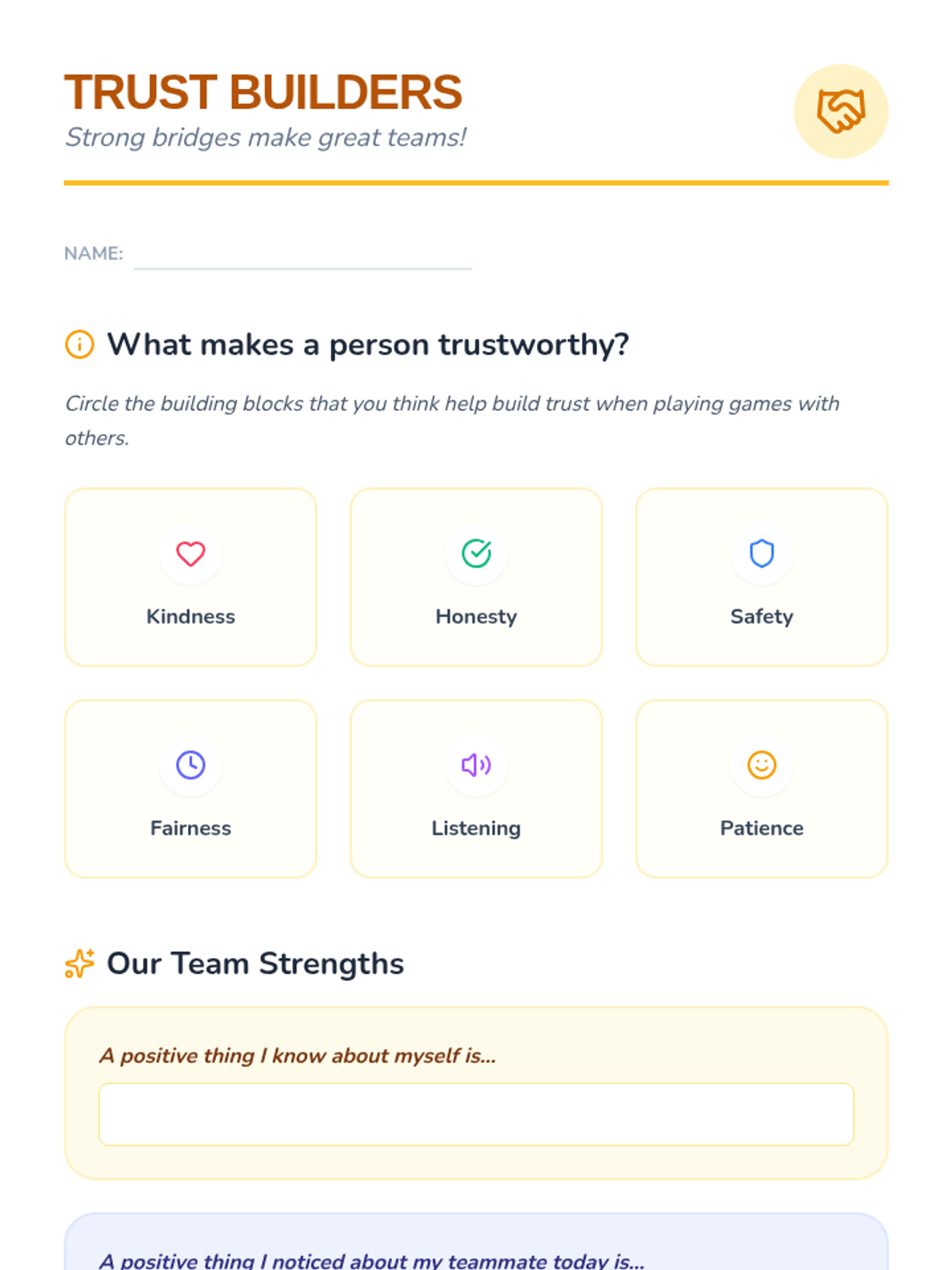 A six-session social skills series for 3rd graders focused on positive play, trust-building, communication, and conflict resolution using game-based learning and trauma-informed strategies.