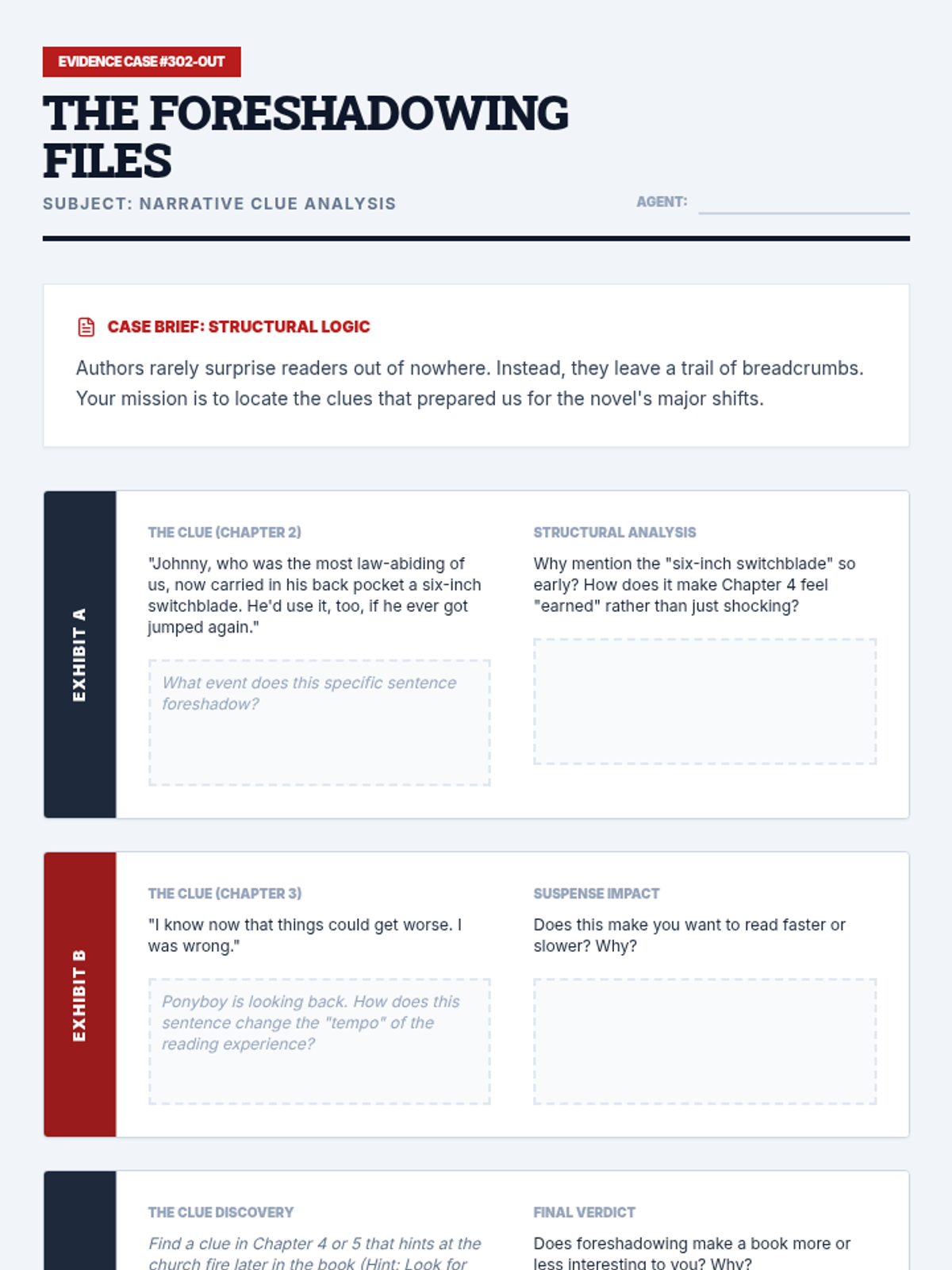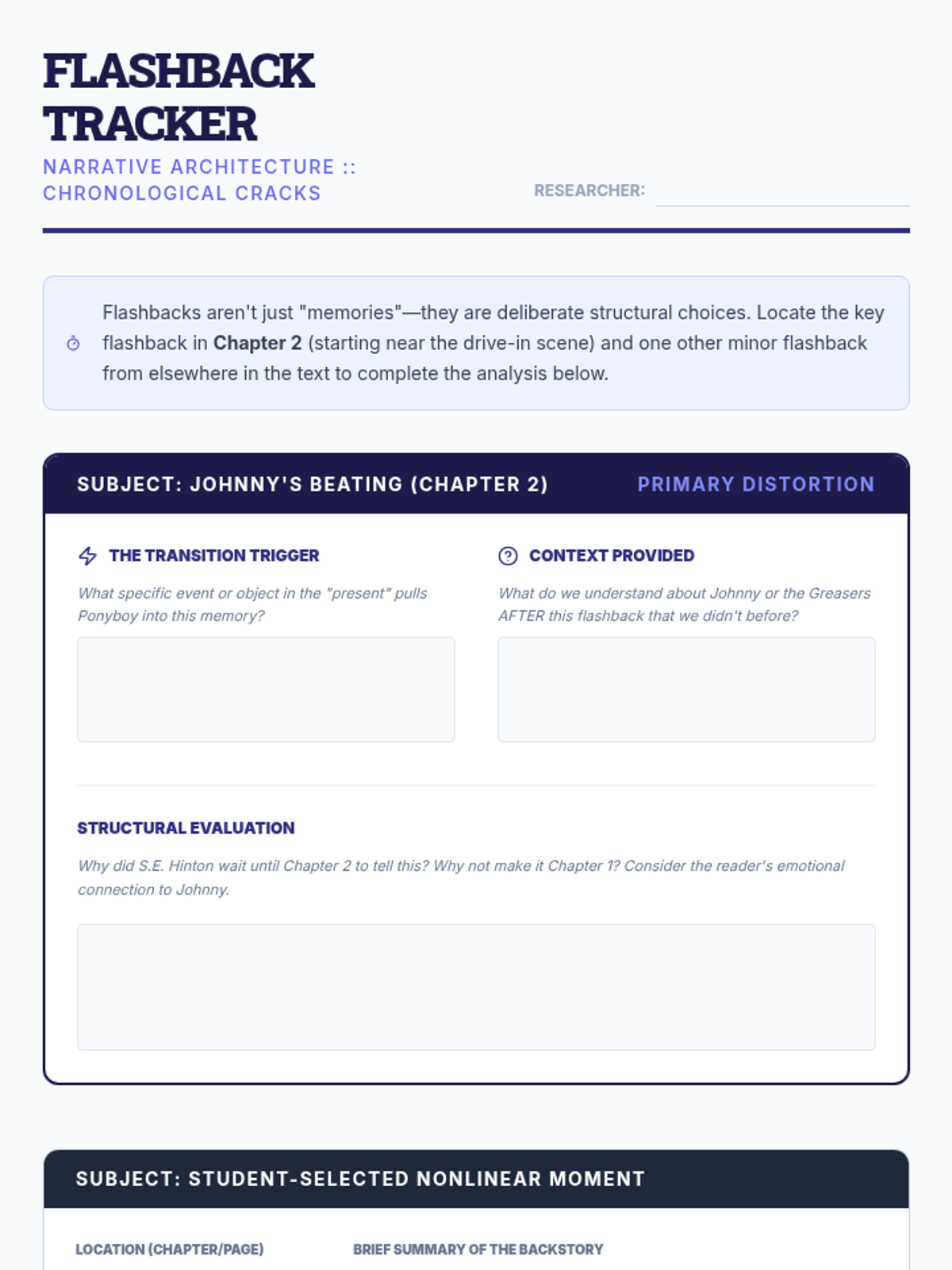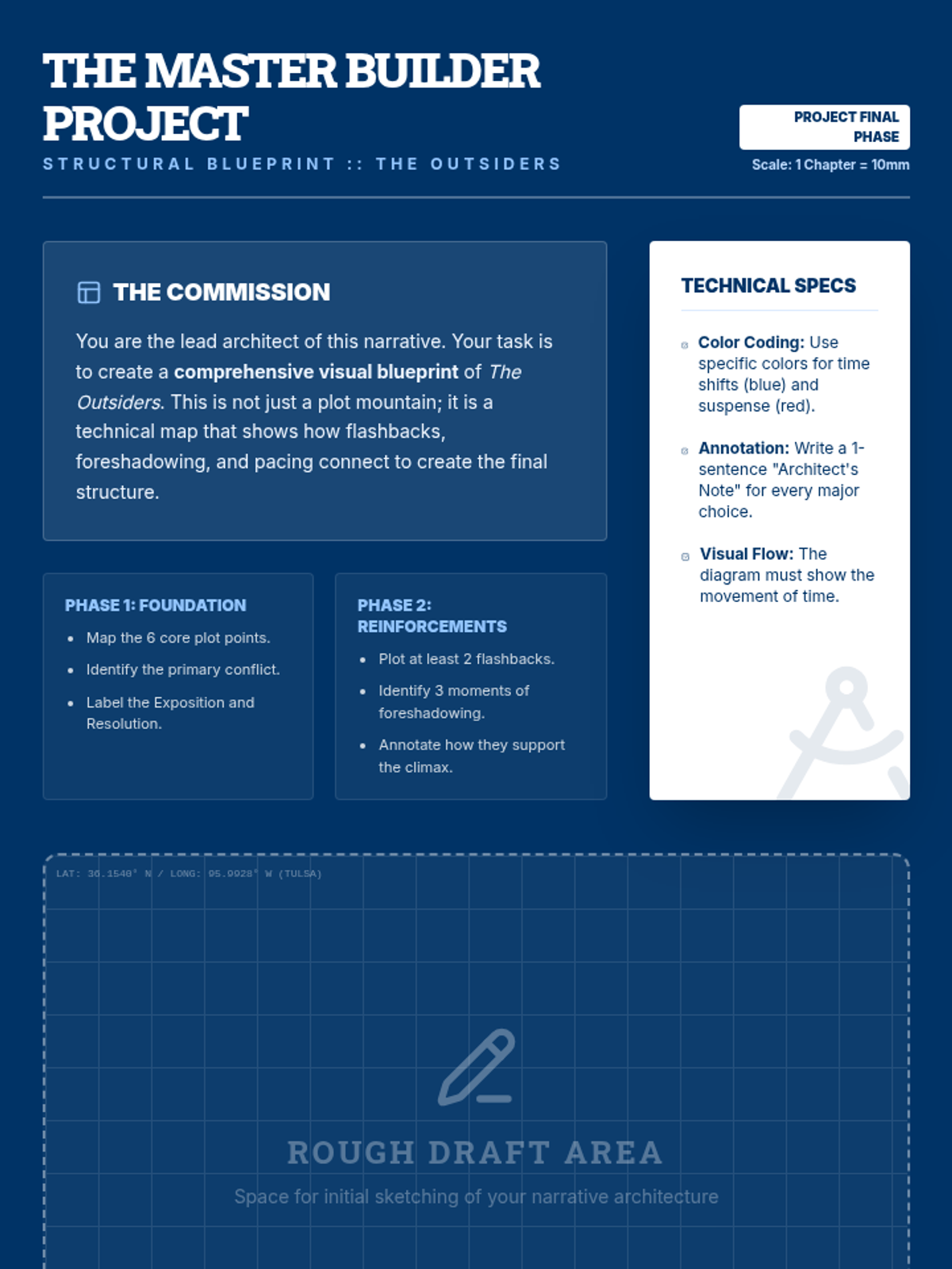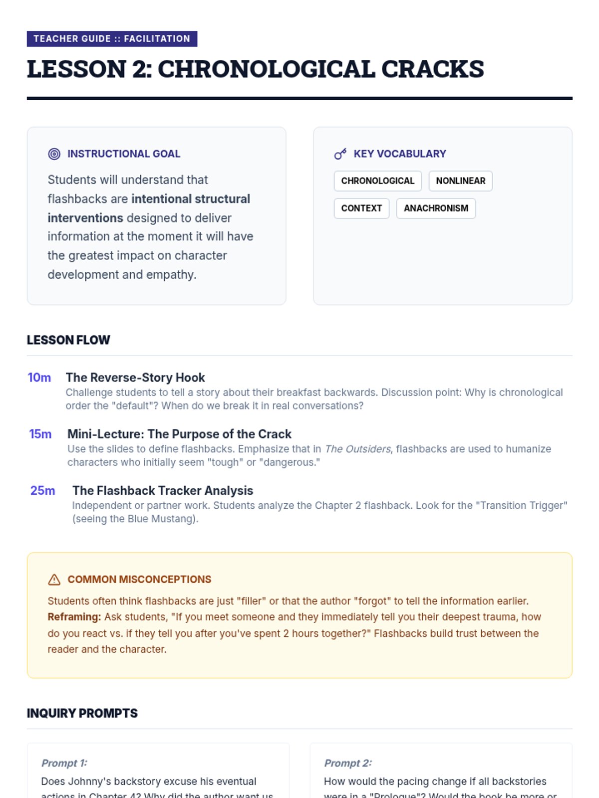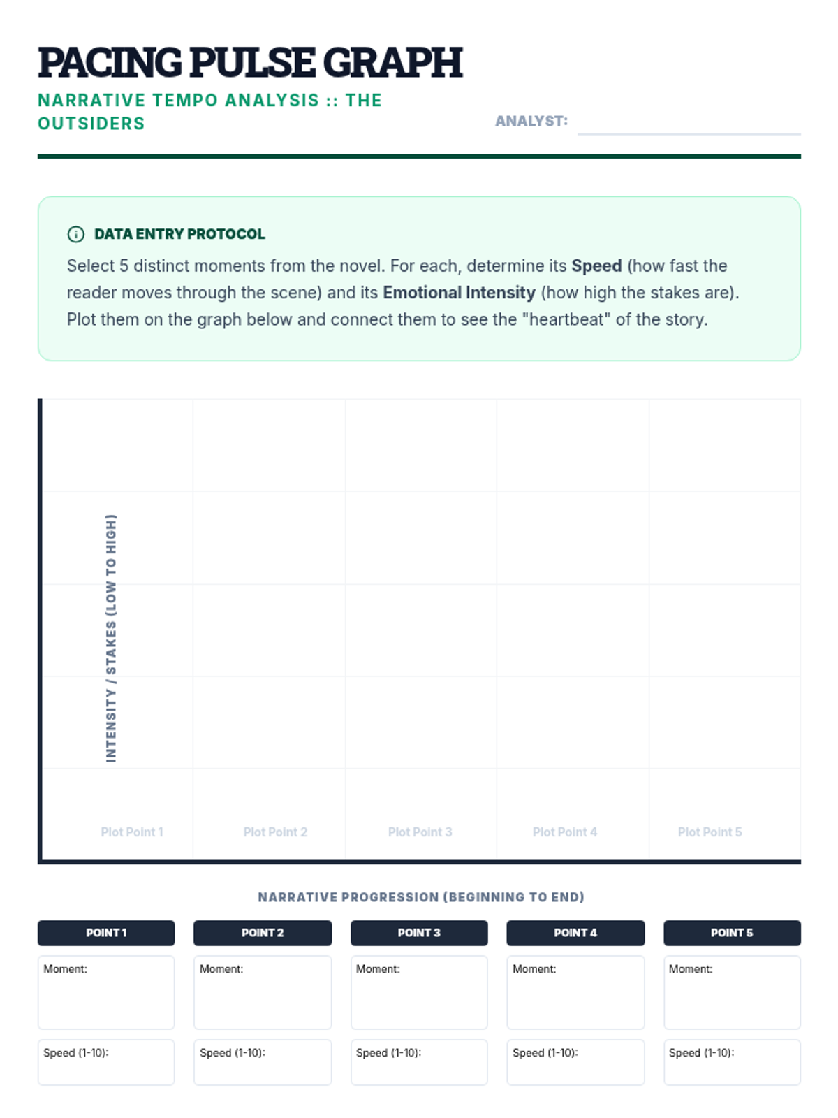 Students explore the architecture of storytelling by dissecting plot structure and narrative pacing. The sequence moves beyond the basic plot mountain to analyze how authors manipulate time and pacing to create suspense and meaning, using 'The Outsiders' as a core text.