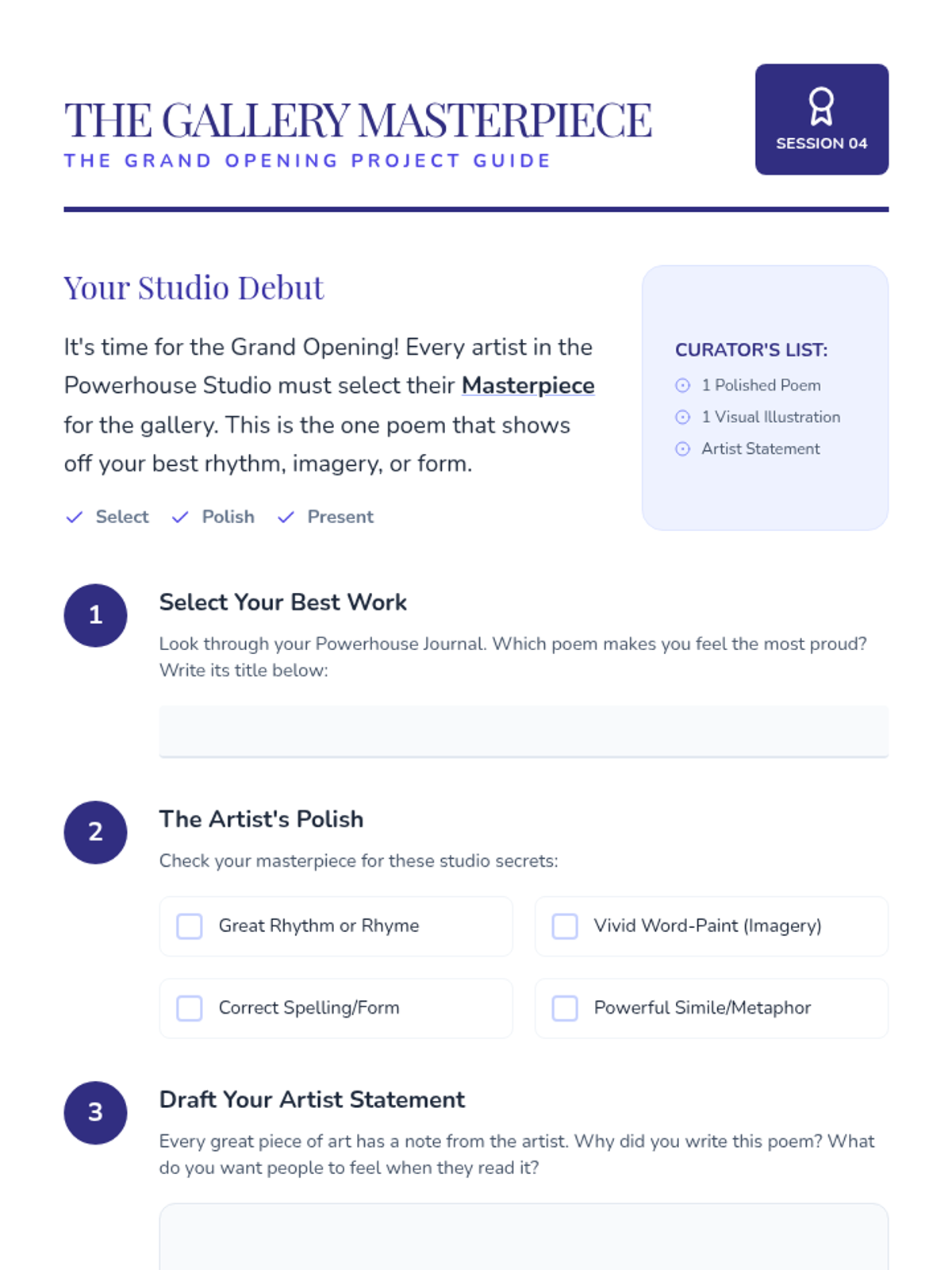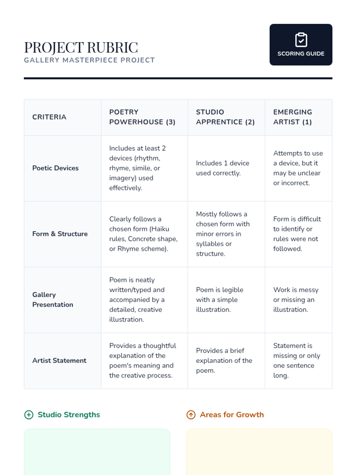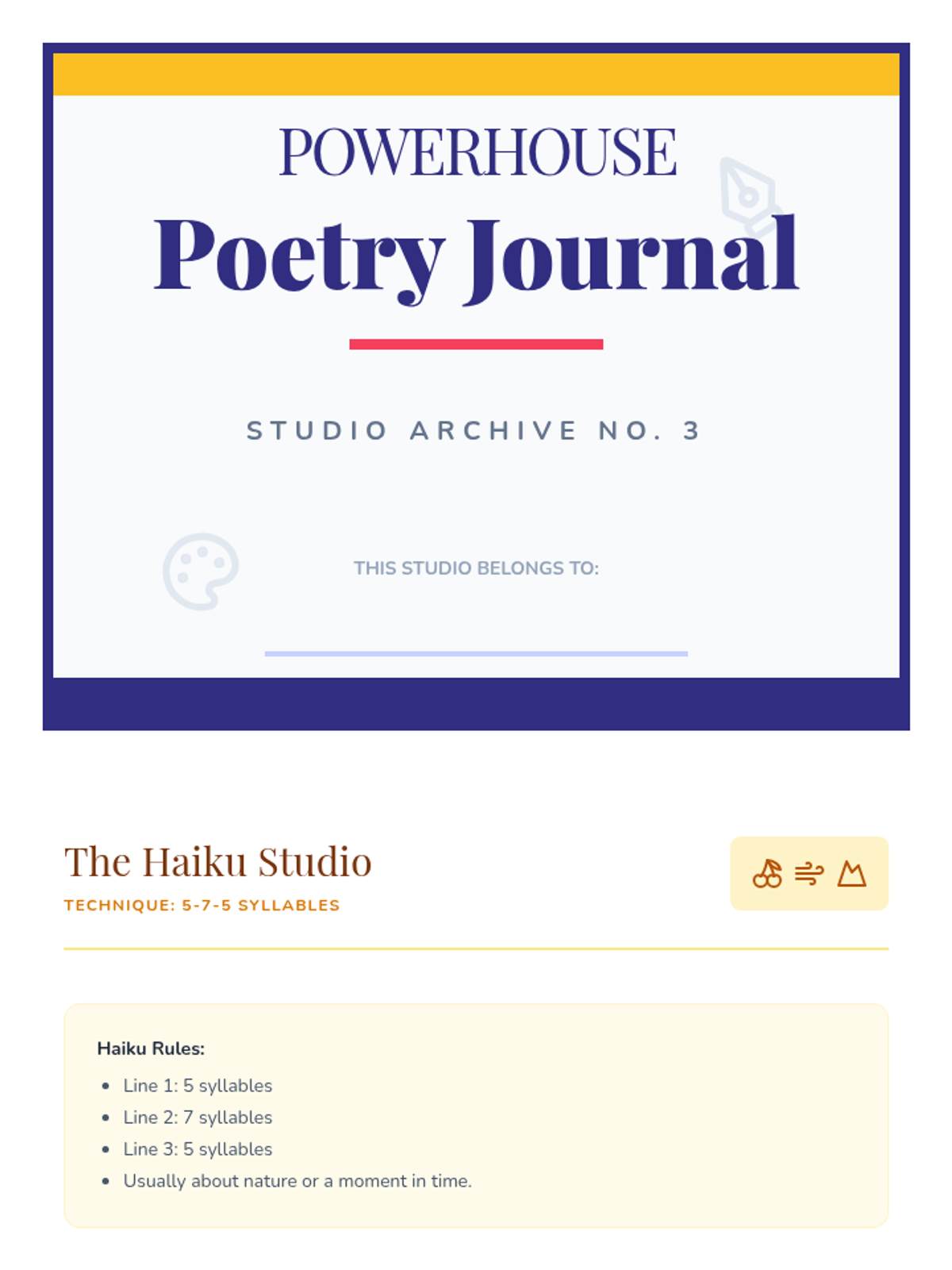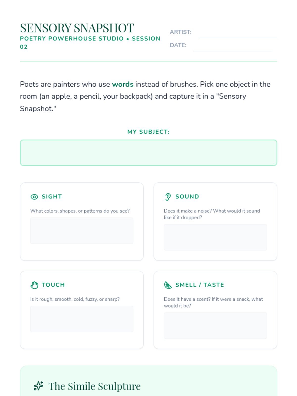 A dynamic 3rd-grade poetry unit that transforms the classroom into an art studio where students explore rhythm, rhyme, imagery, and form. Through hands-on experimentation, students build confidence in their creative voice and language skills.