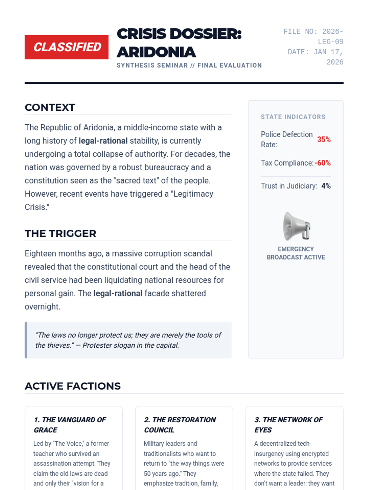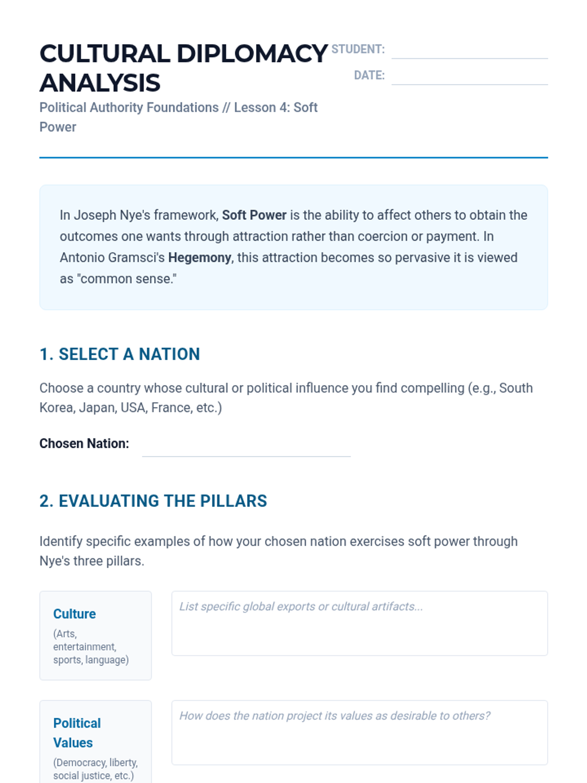 An advanced undergraduate exploration of political theory, moving from classical social contract theories to modern sociological interpretations of power, legitimacy, and authority. Students analyze primary texts from Weber, Hobbes, Locke, Foucault, and Gramsci to deconstruct how power is exercised and justified in contemporary governance.