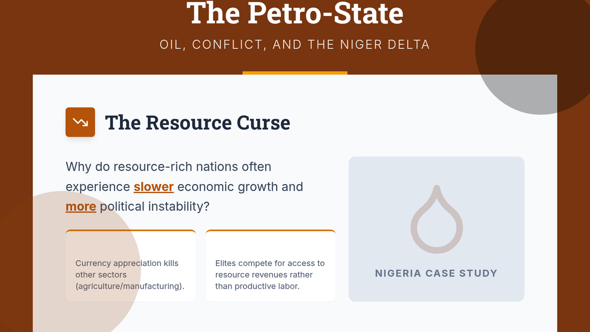 An undergraduate-level analysis of the political ecology surrounding natural resource extraction in Africa, focusing on governance, conflict, and environmental justice.