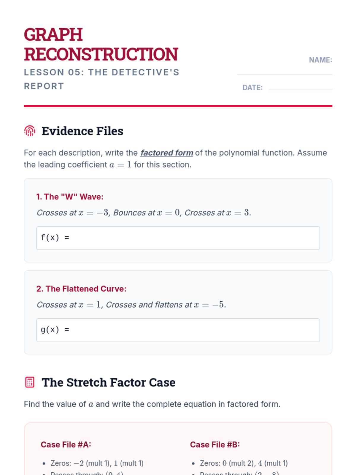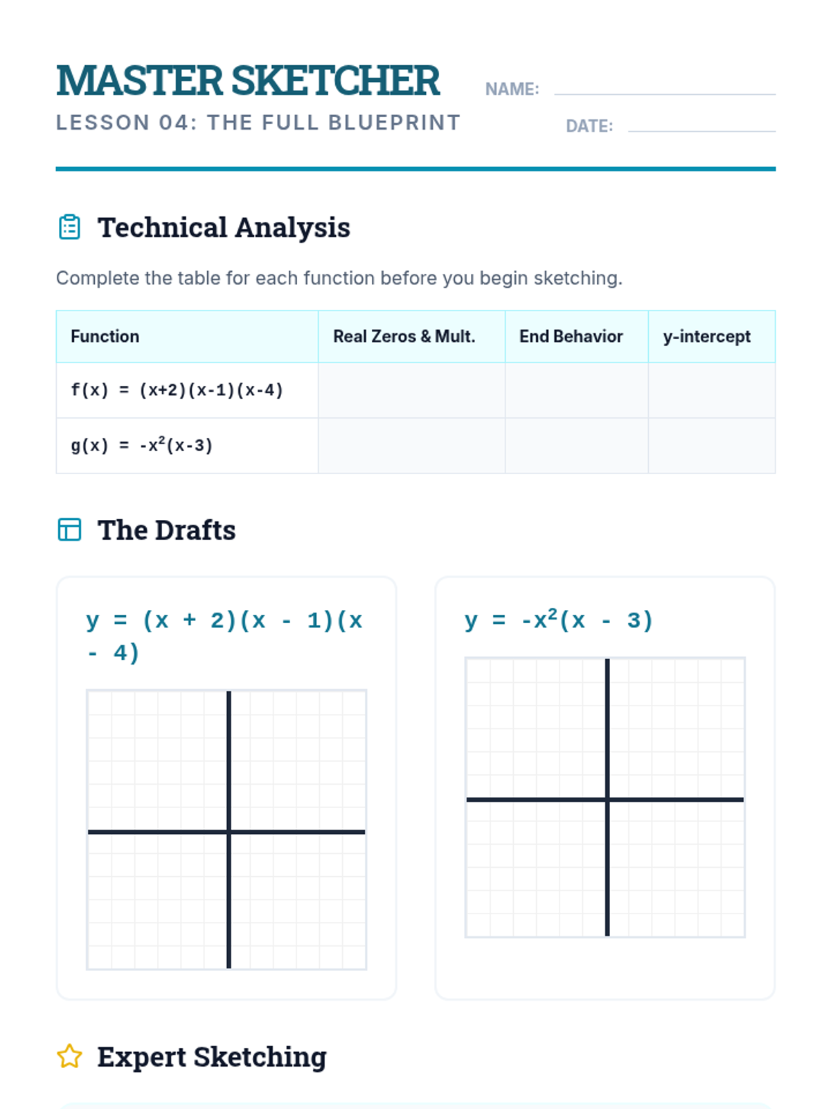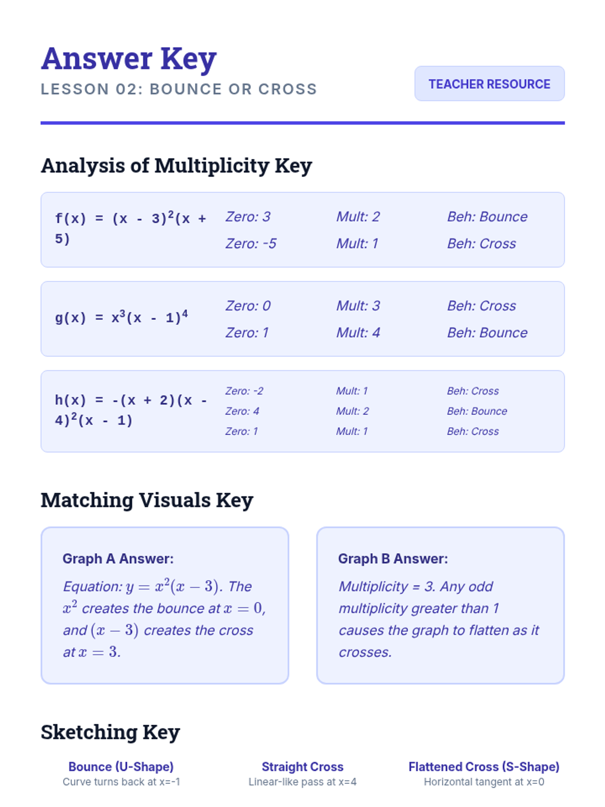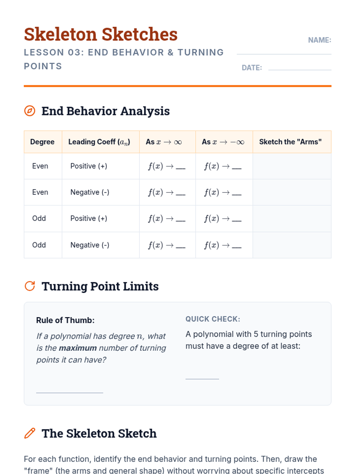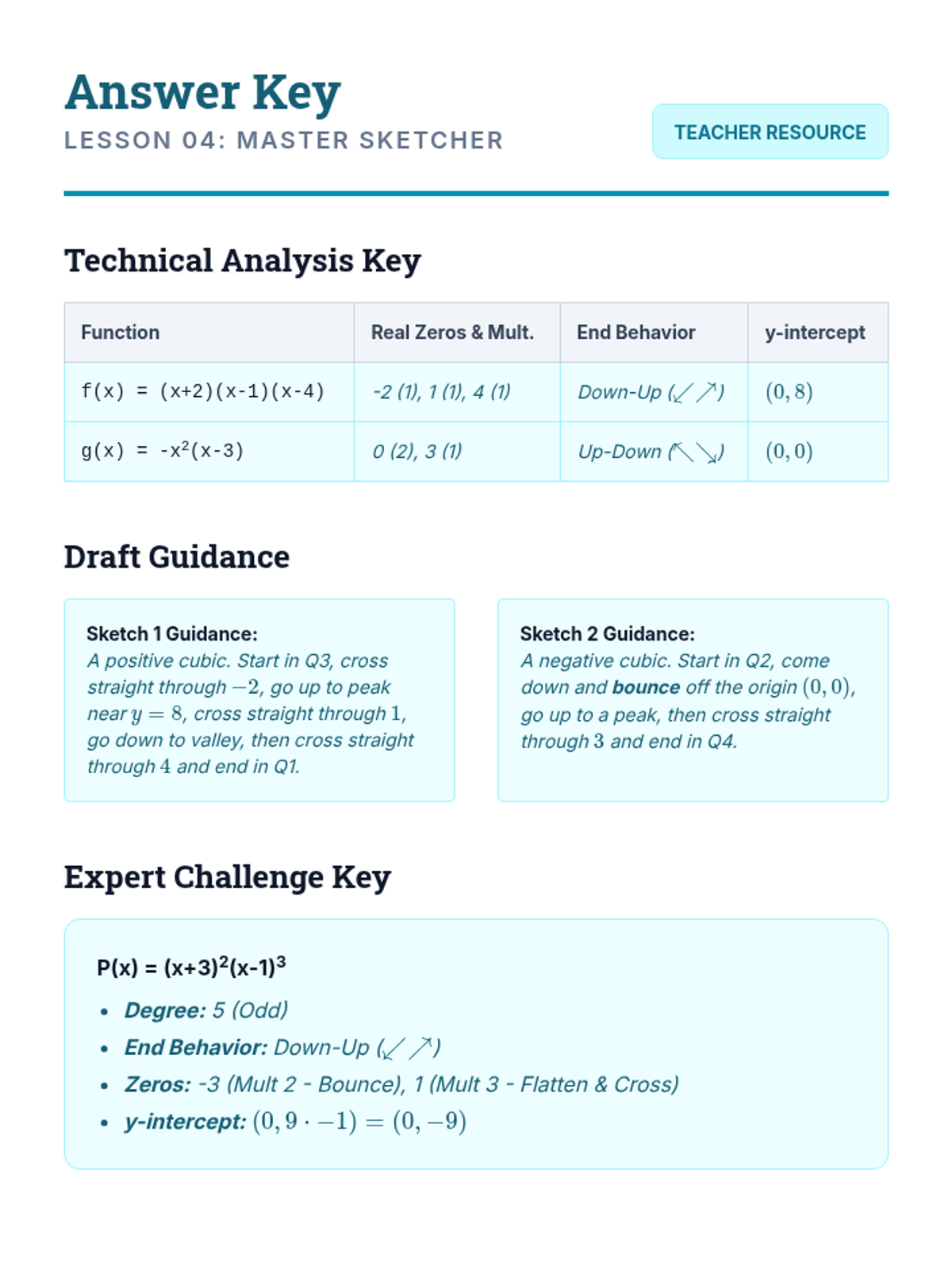 This sequence explores the relationship between the algebraic structure of polynomial functions and their graphical representations, focusing on zeros, multiplicity, end behavior, and sketching.