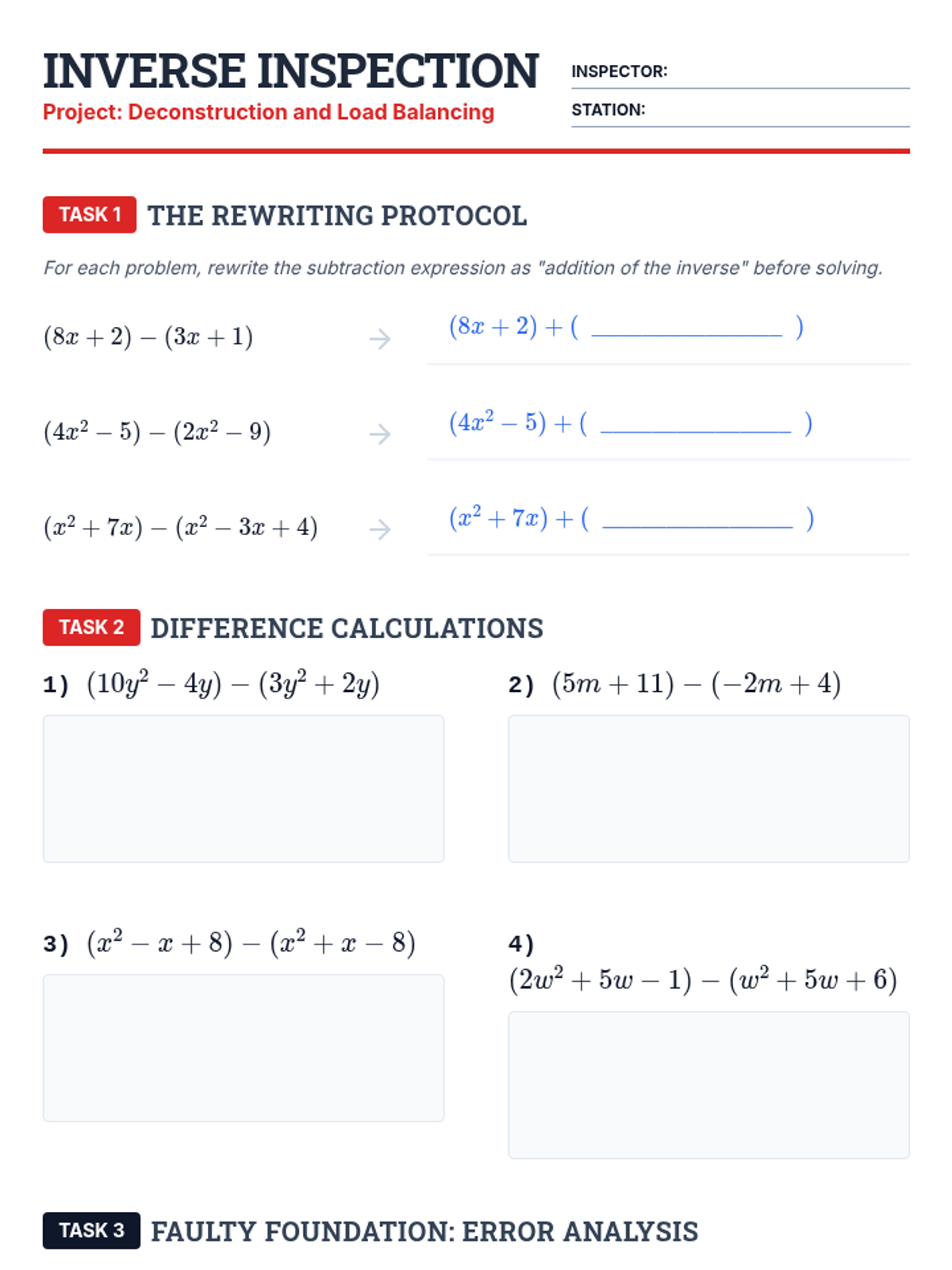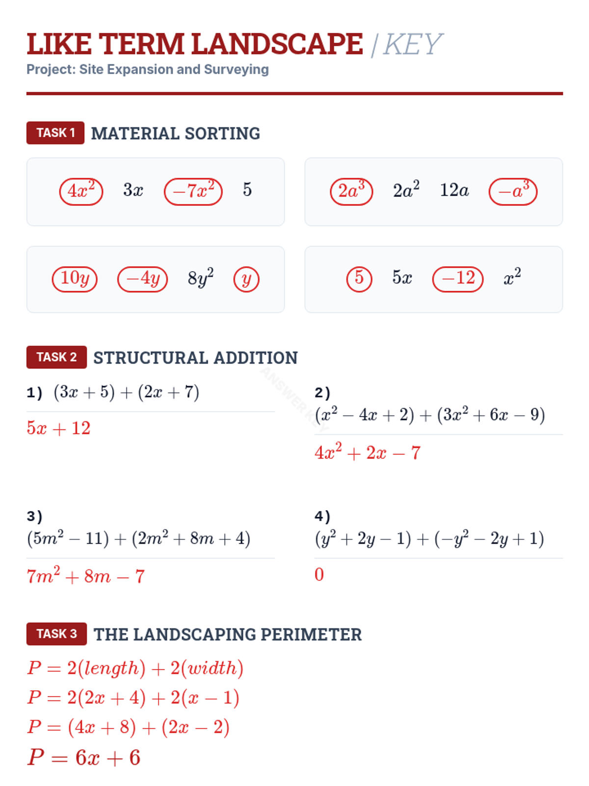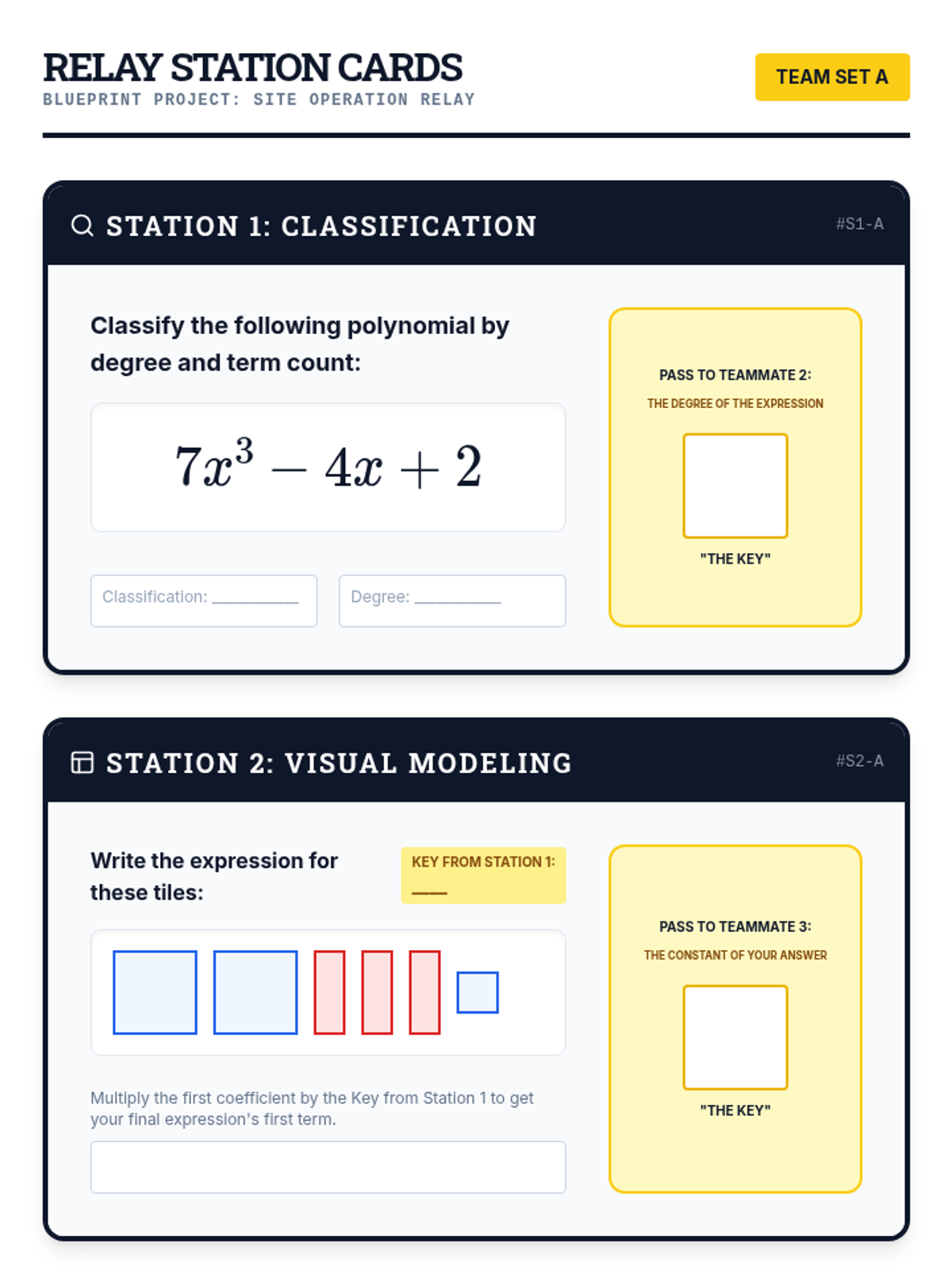 A comprehensive introduction to polynomials for 8th-grade students, covering classification, modeling with algebra tiles, addition, and subtraction using a blueprint/architectural theme.