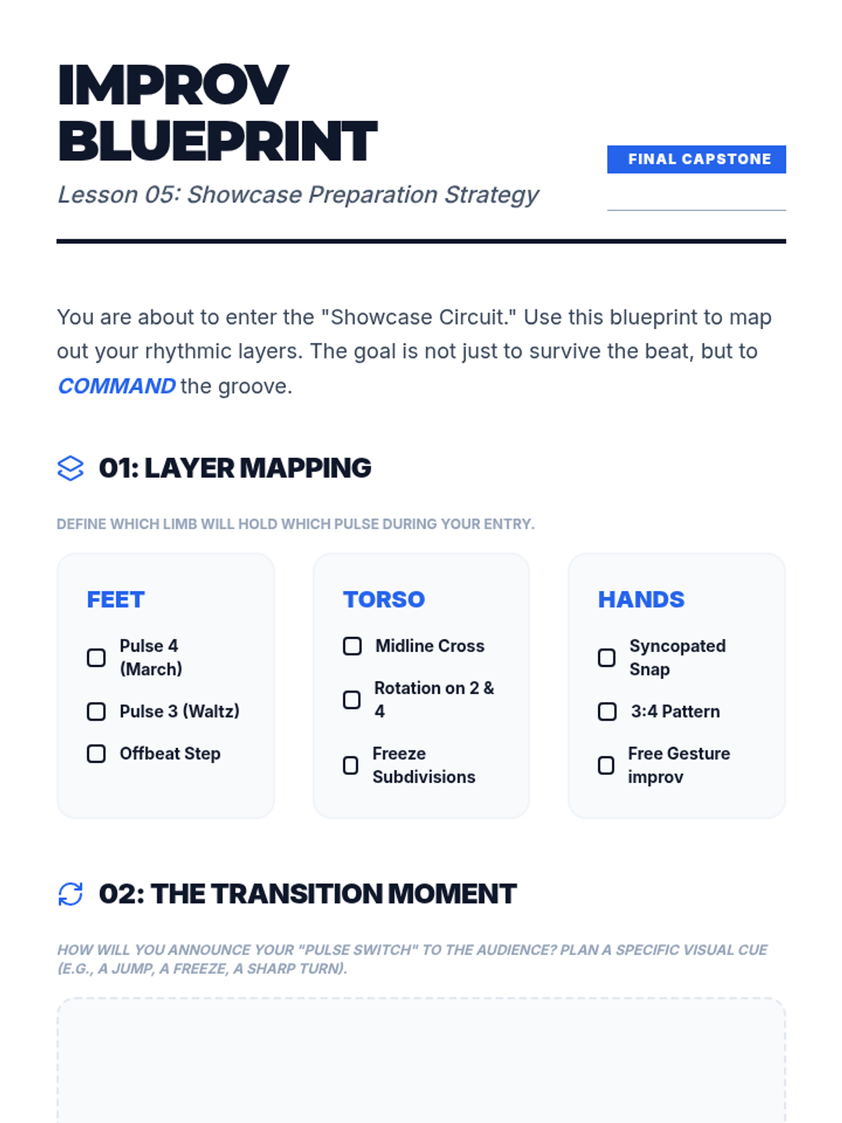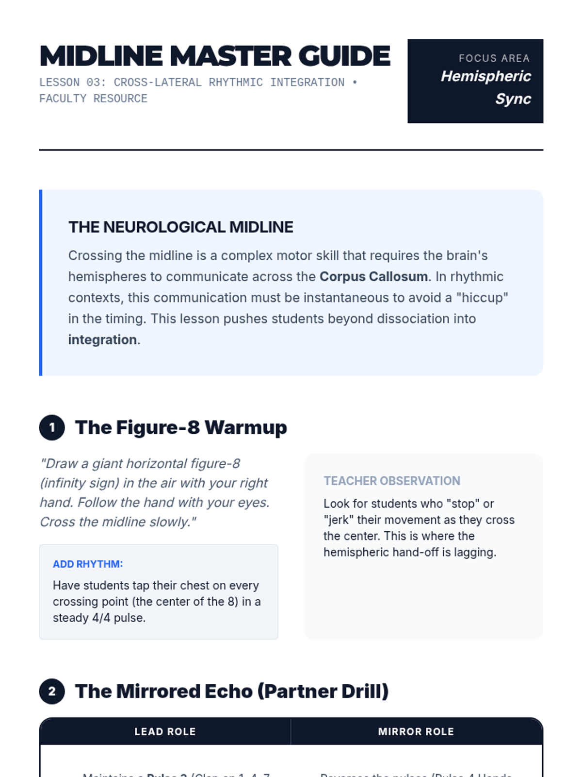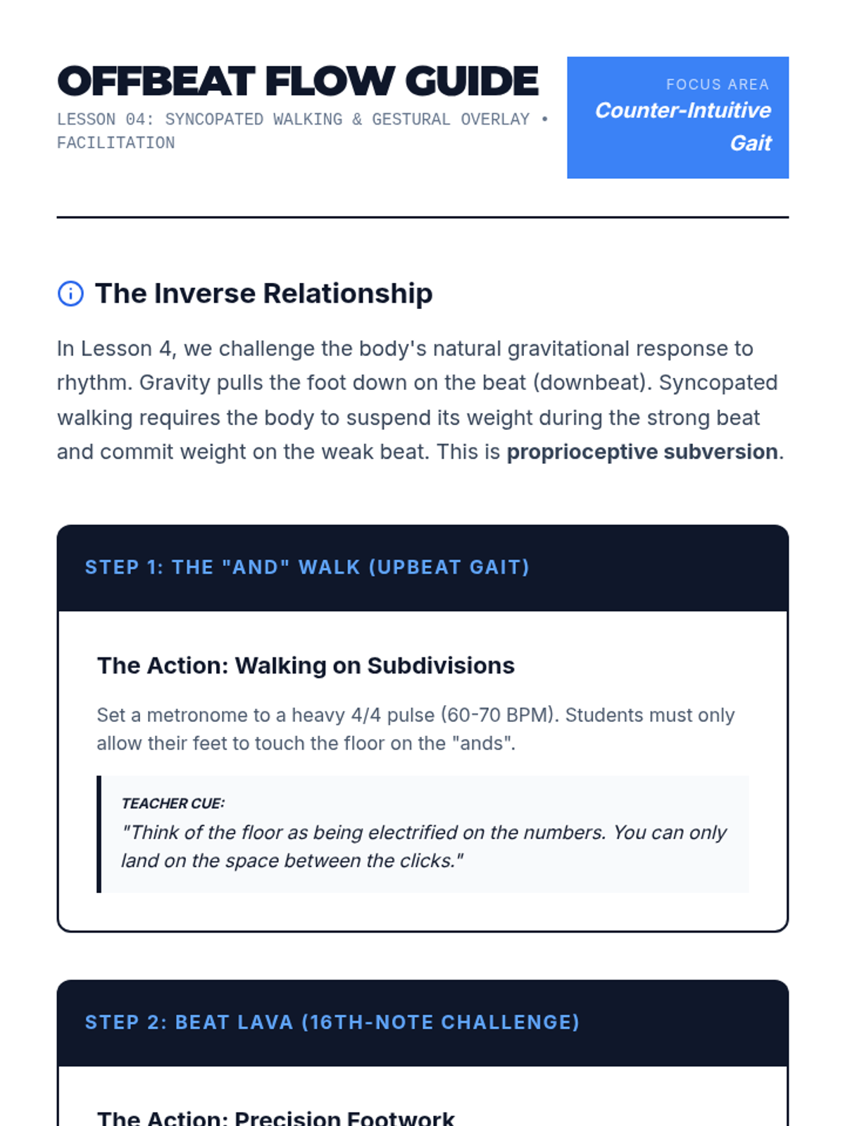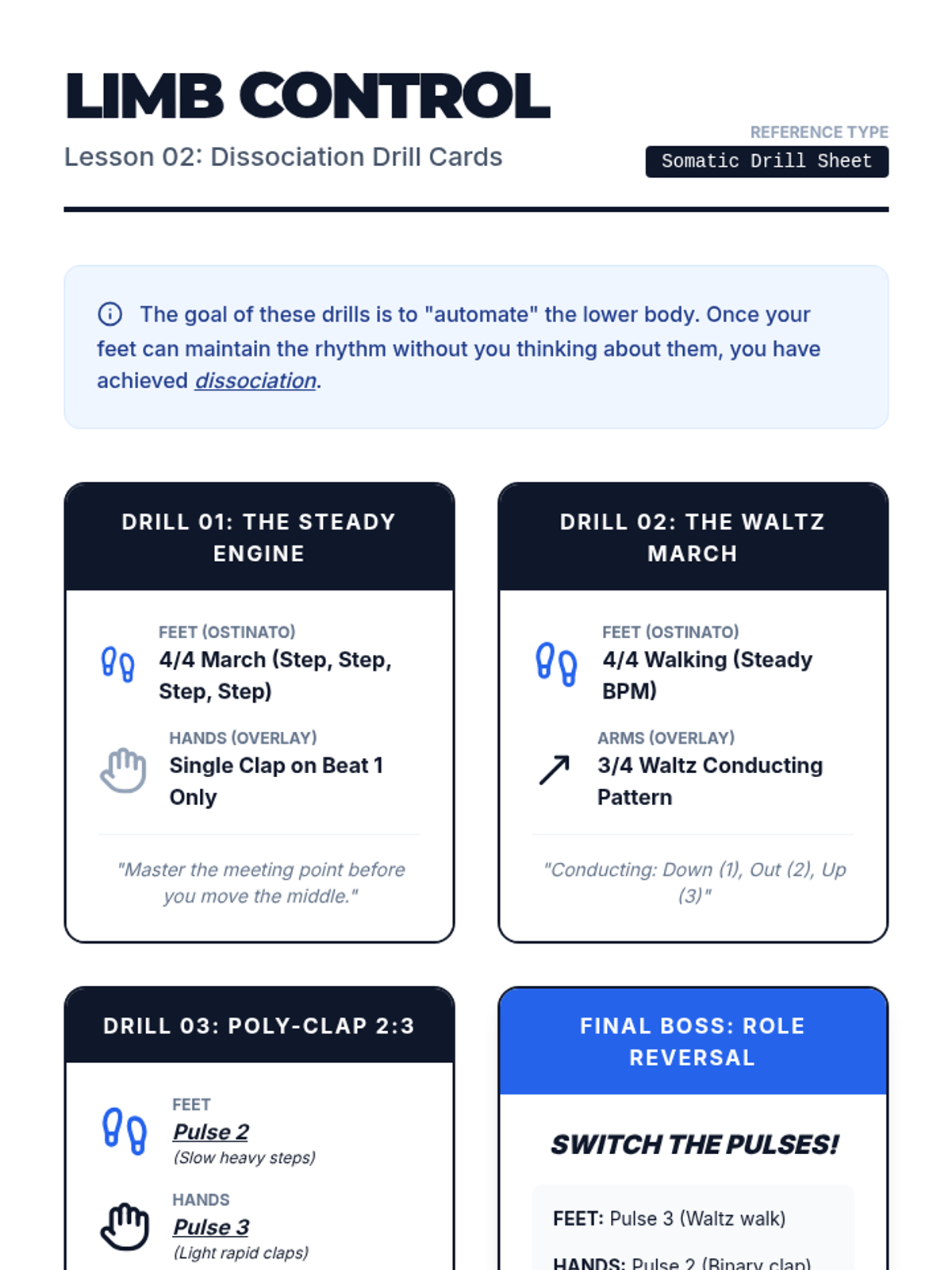 An advanced course for undergraduate students focusing on the neurological and somatic challenges of polyrhythmic movement and limb dissociation. Students progress from cognitive theory to complex physical improvisation.