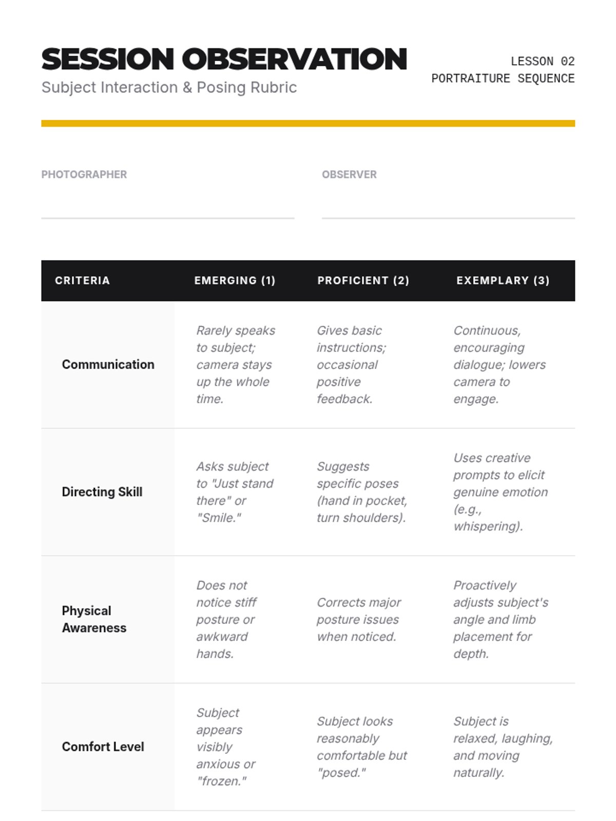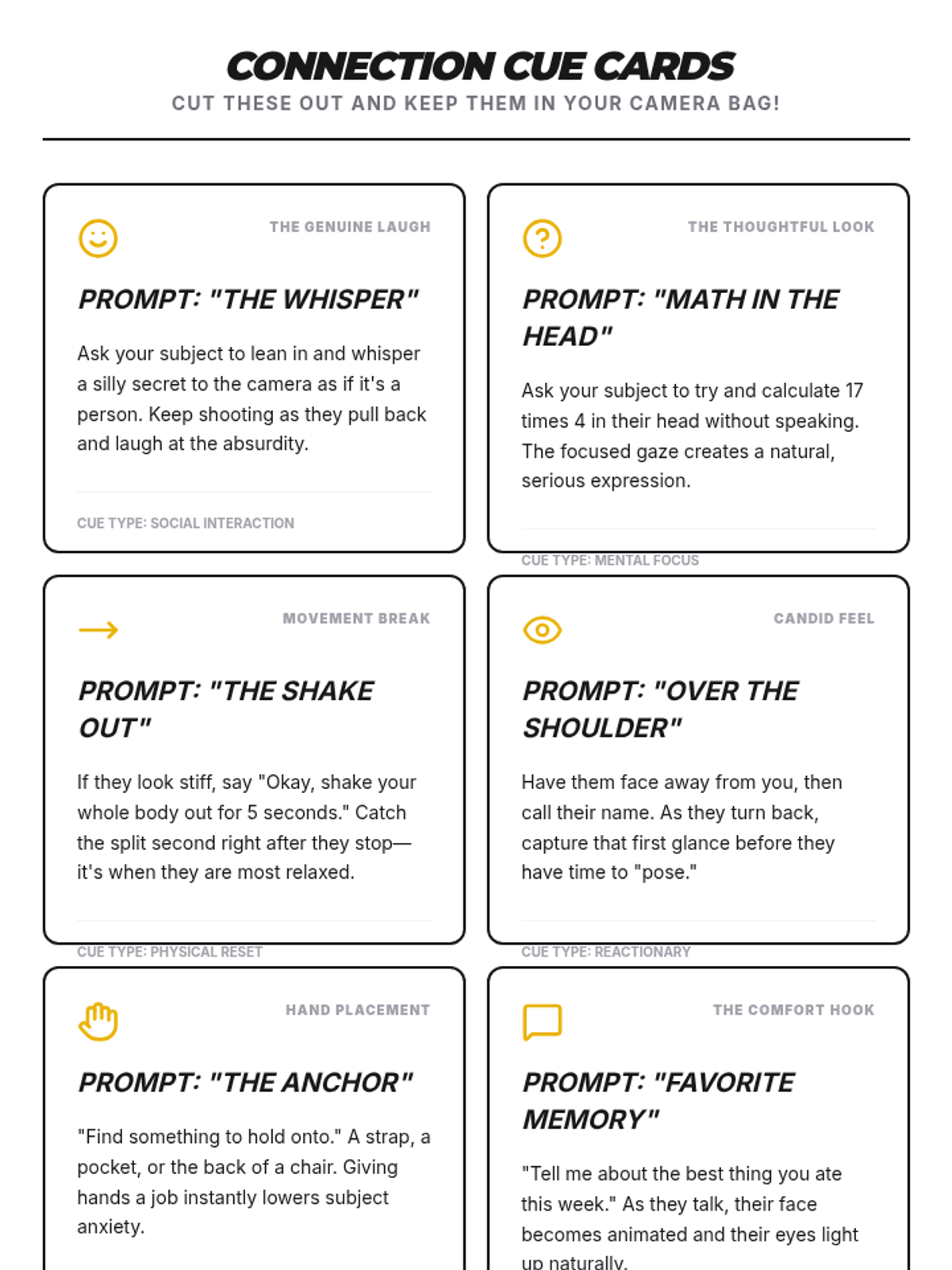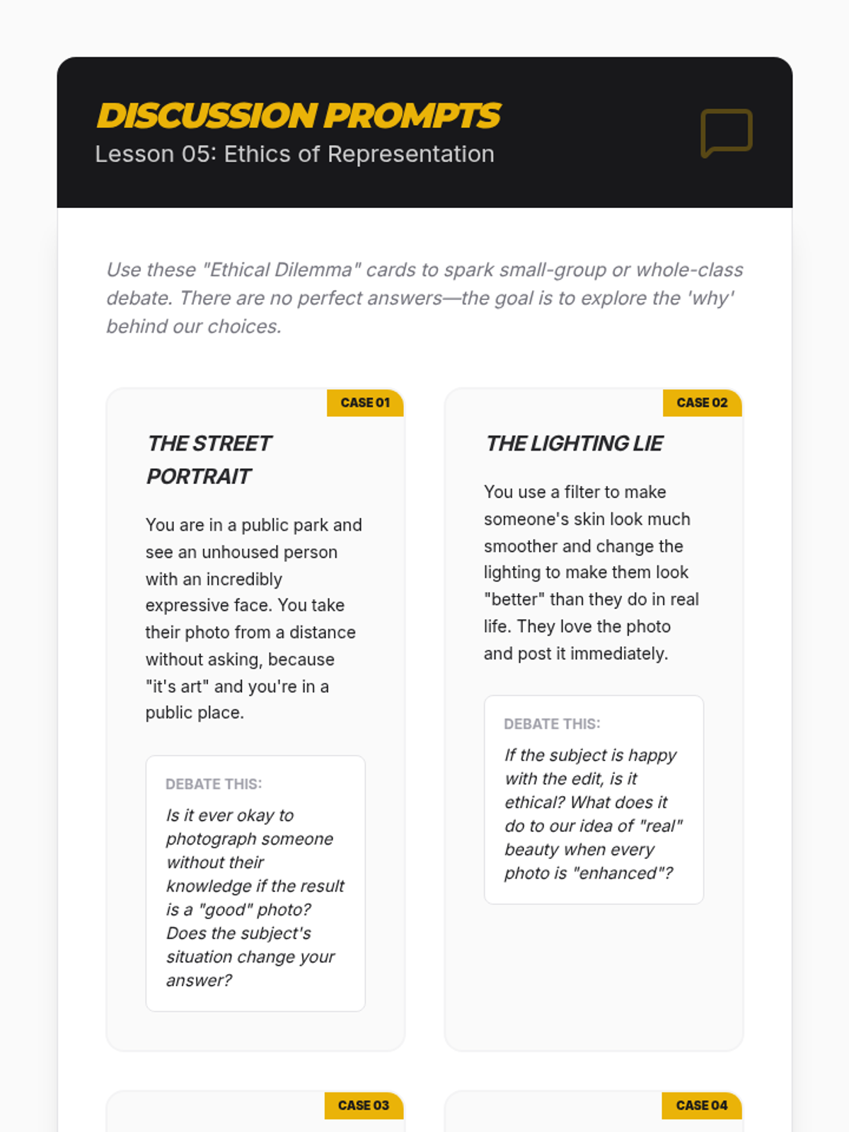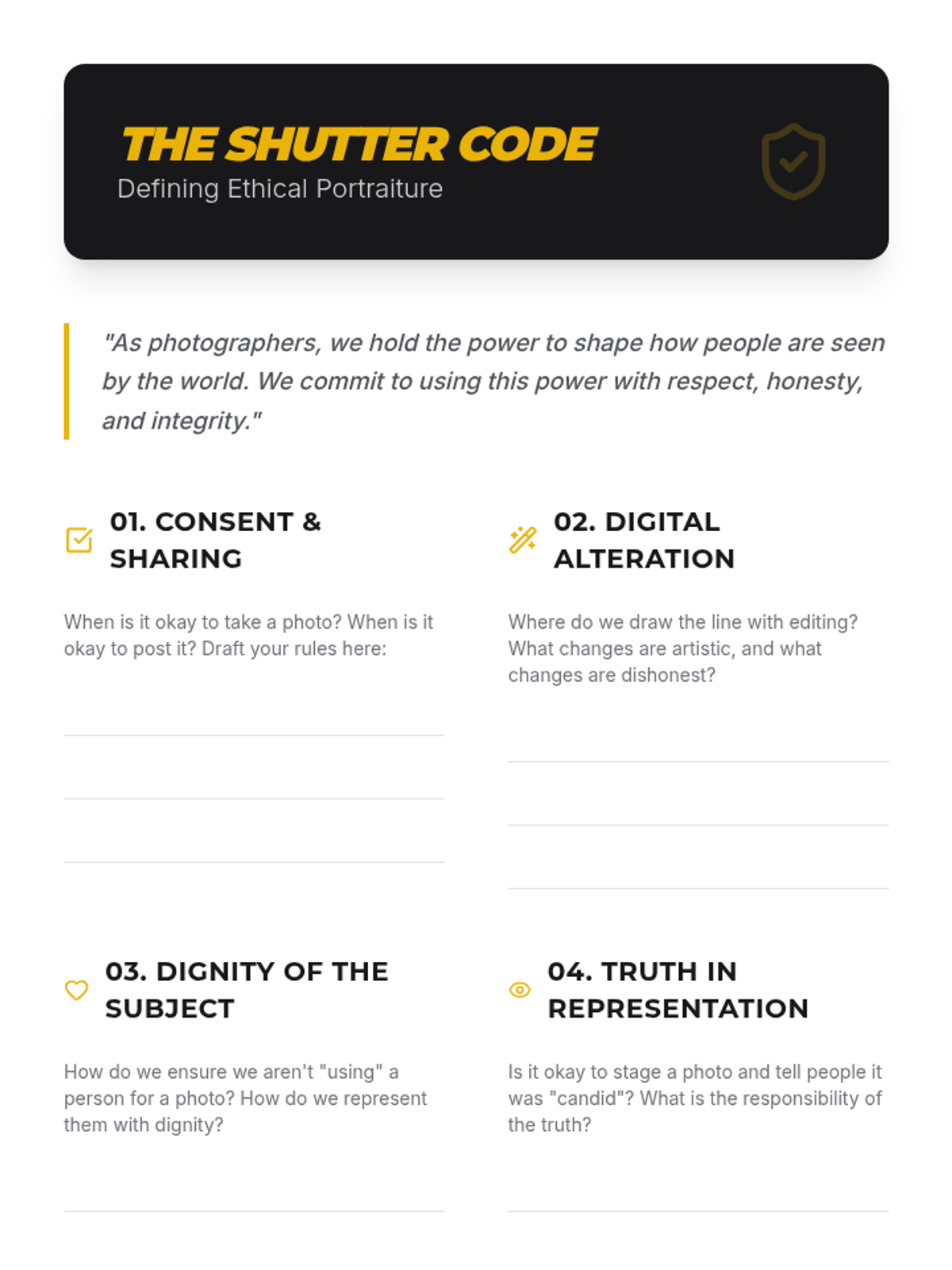 This sequence explores the technical and social challenges of photographing people, focusing on environmental portraiture, posing, abstract representation, and the ethics of digital identity.