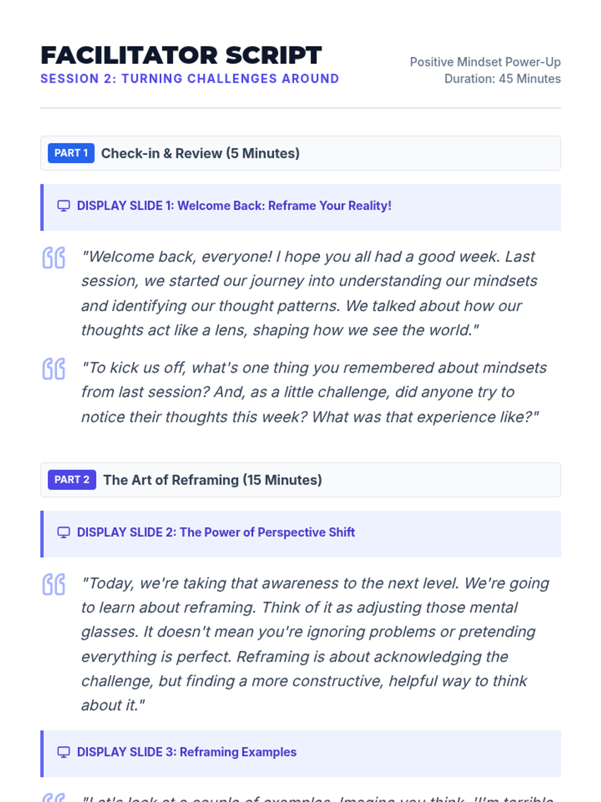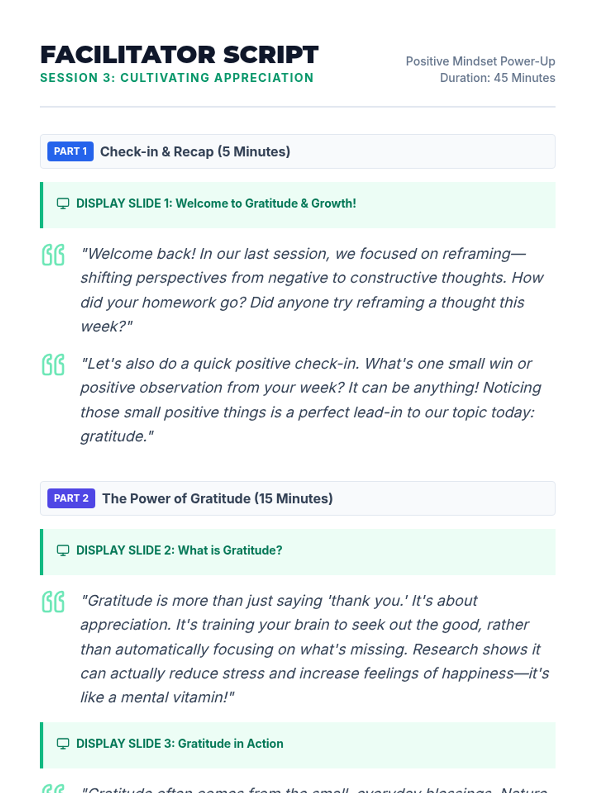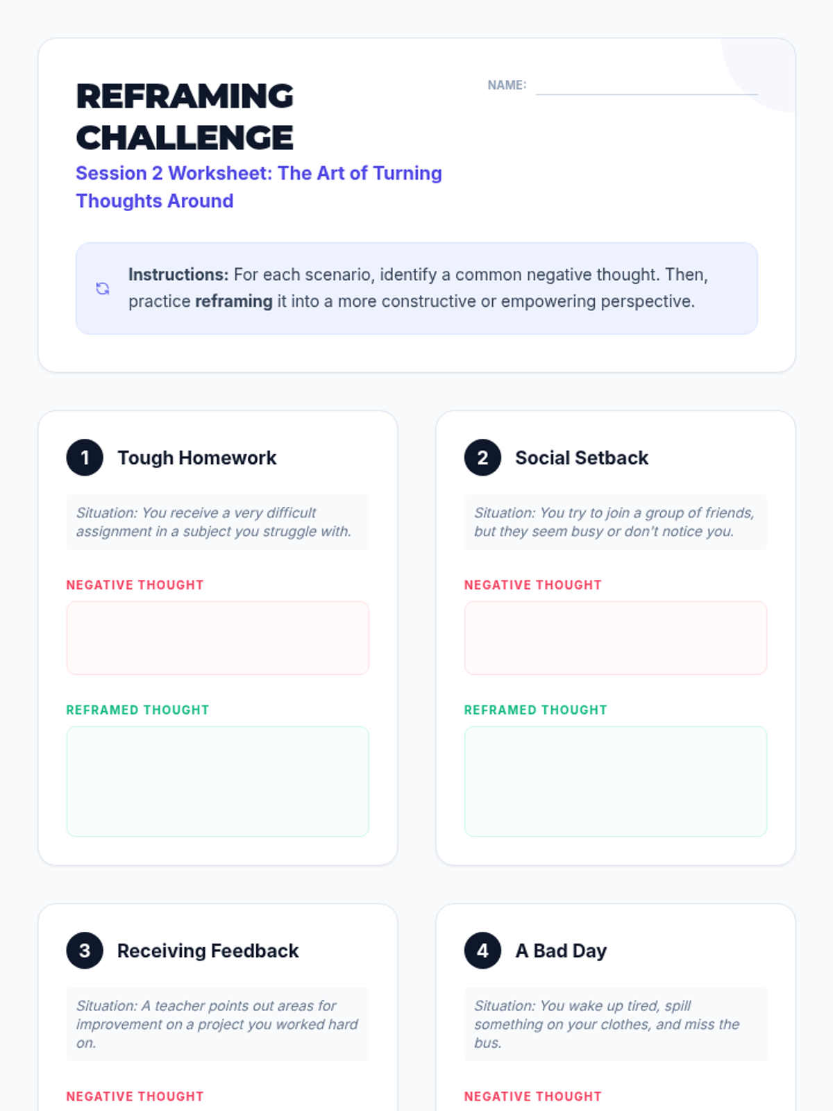 A four-session small group intervention for 9th graders to develop a positive mindset through awareness, reframing, and gratitude. Students build a toolkit of strategies to enhance resilience and optimism.