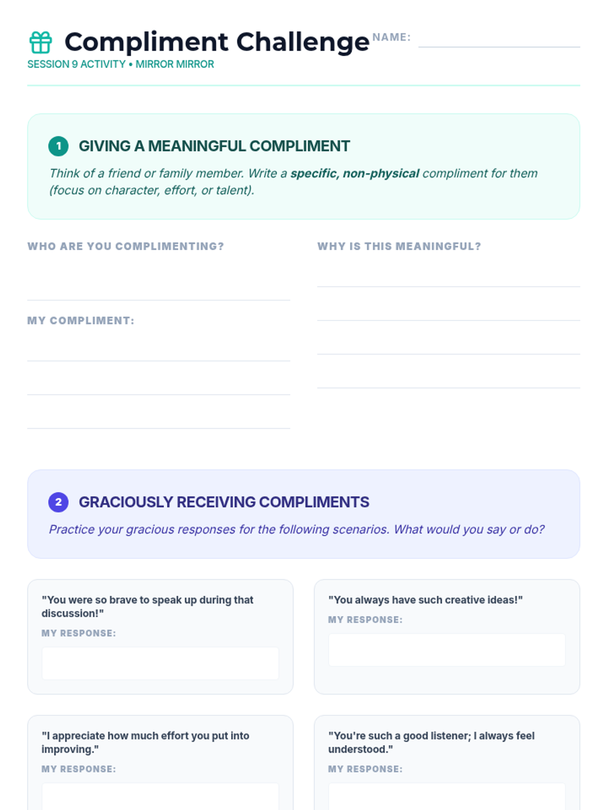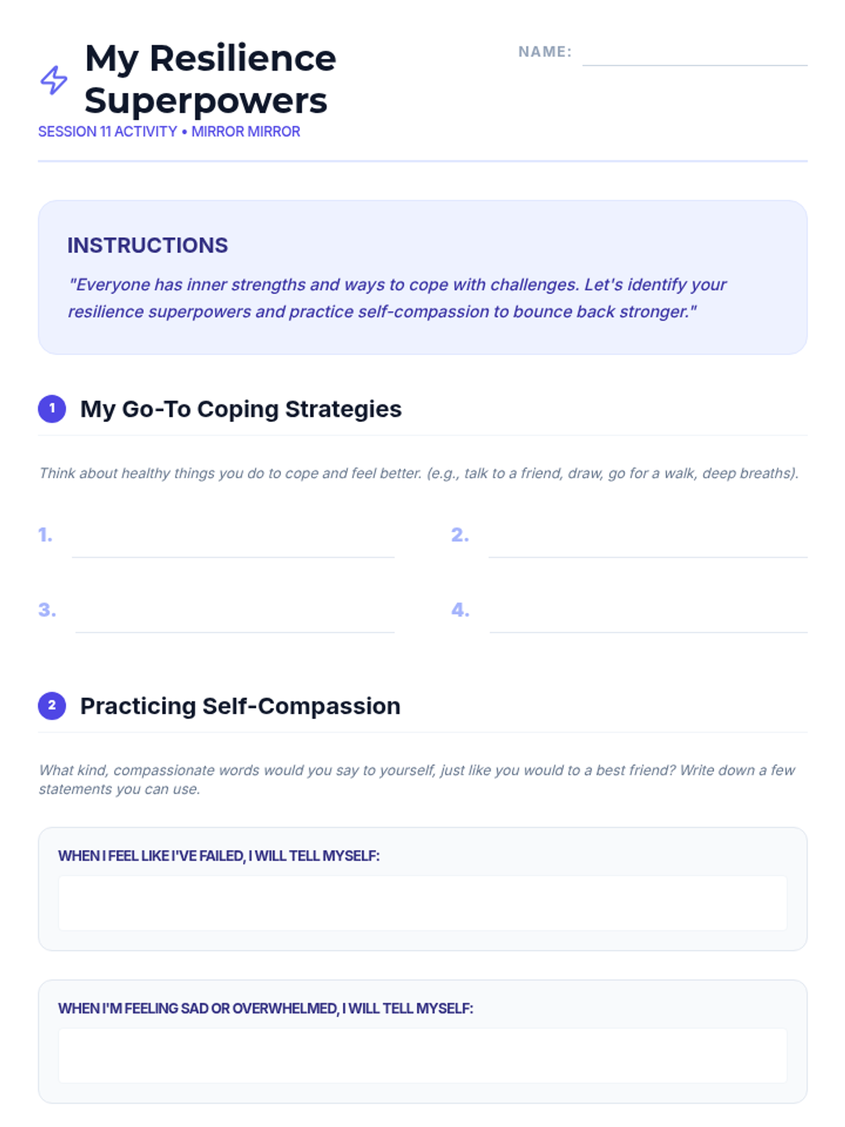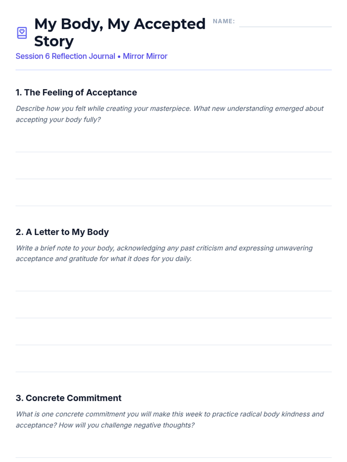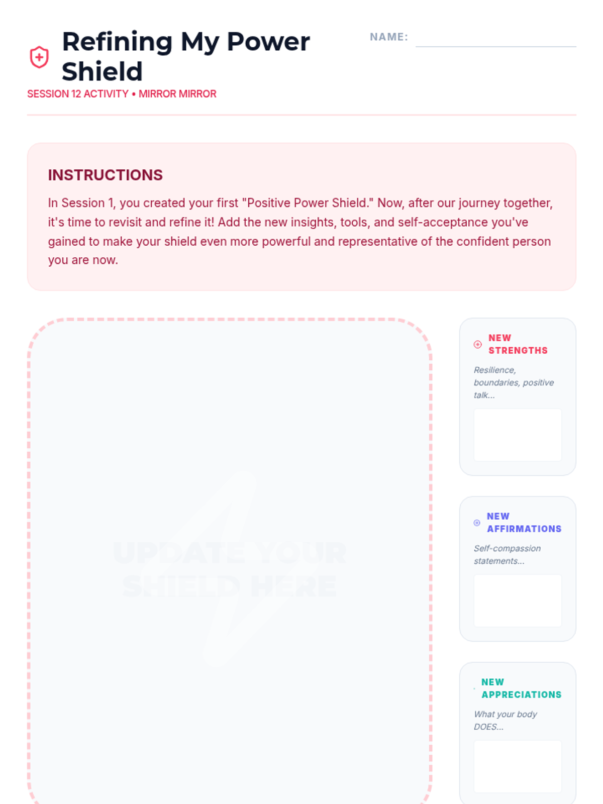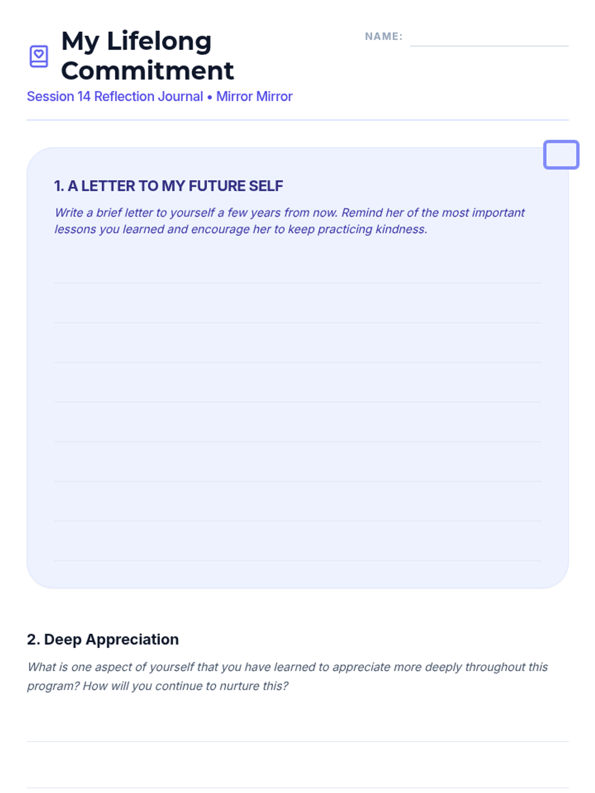 A 15-session empowerment program for 7th-grade girls focused on body image, self-esteem, and positive self-talk. Through creative activities and group discussions, students build resilience and a strong sense of inner worth.