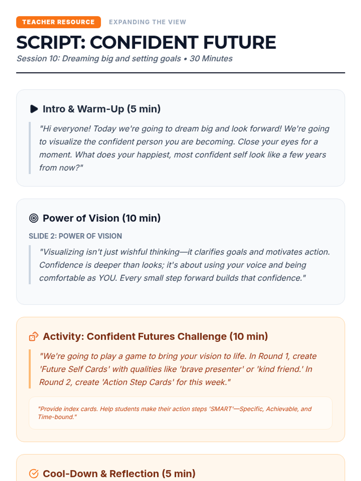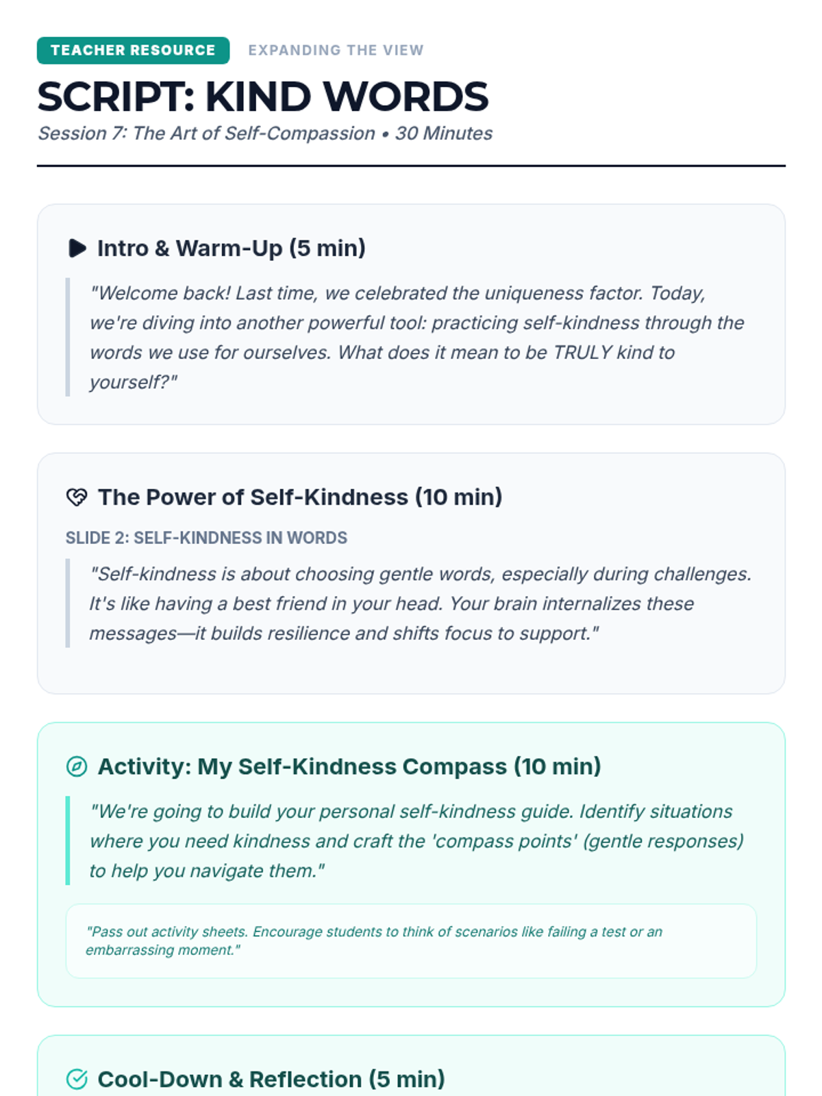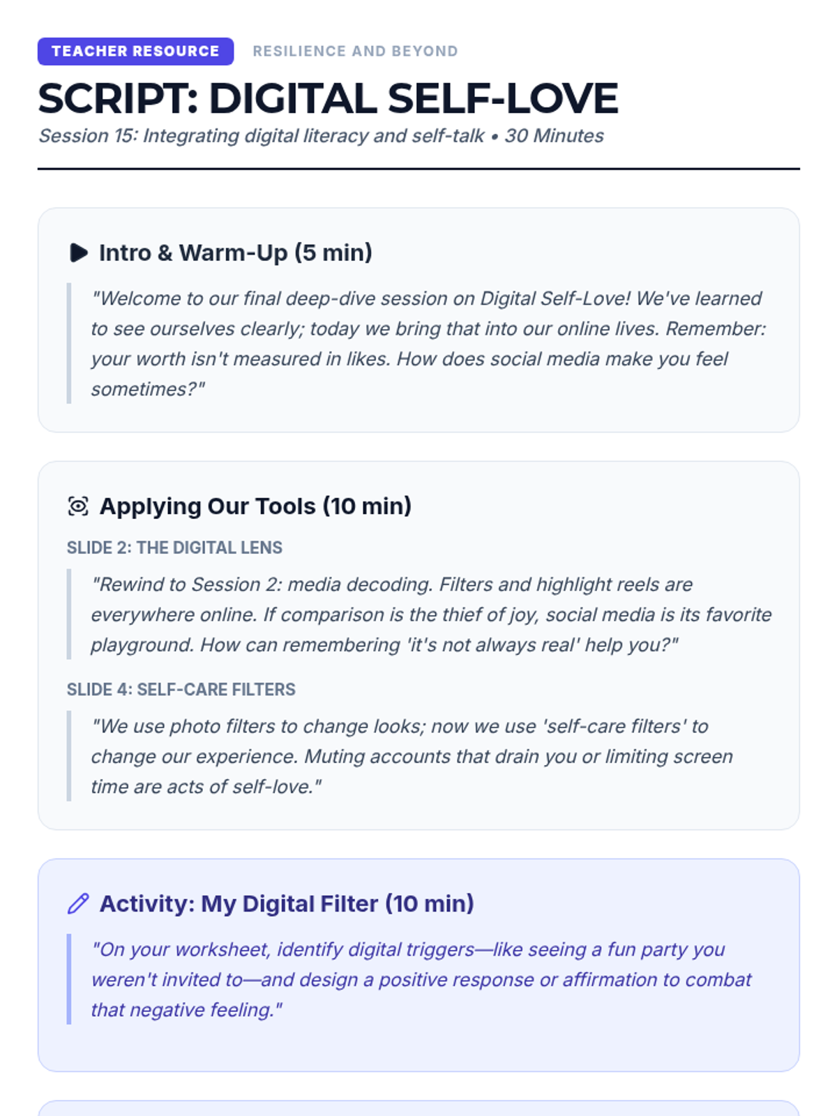 A comprehensive 8-lesson sequence for middle school students to master focus by distinguishing between and managing internal and external distractions. Each 20-minute session provides interactive instruction and practical activities.
