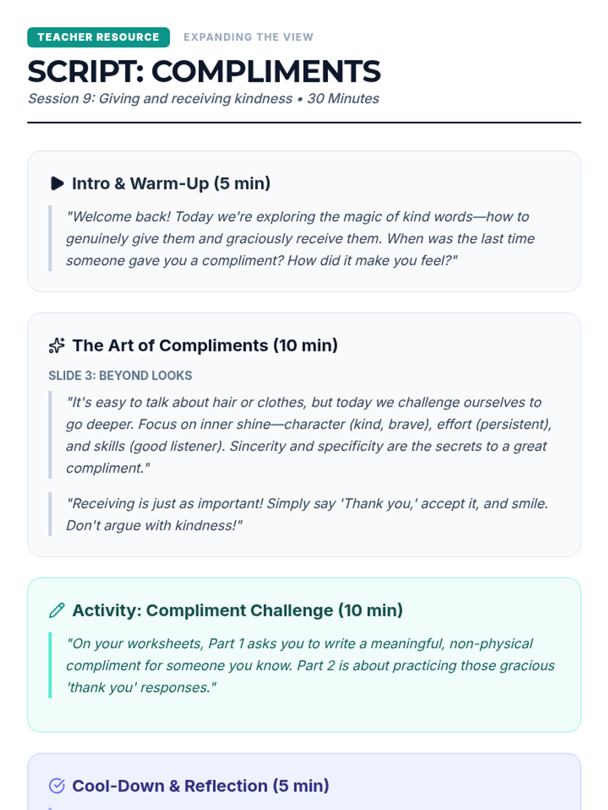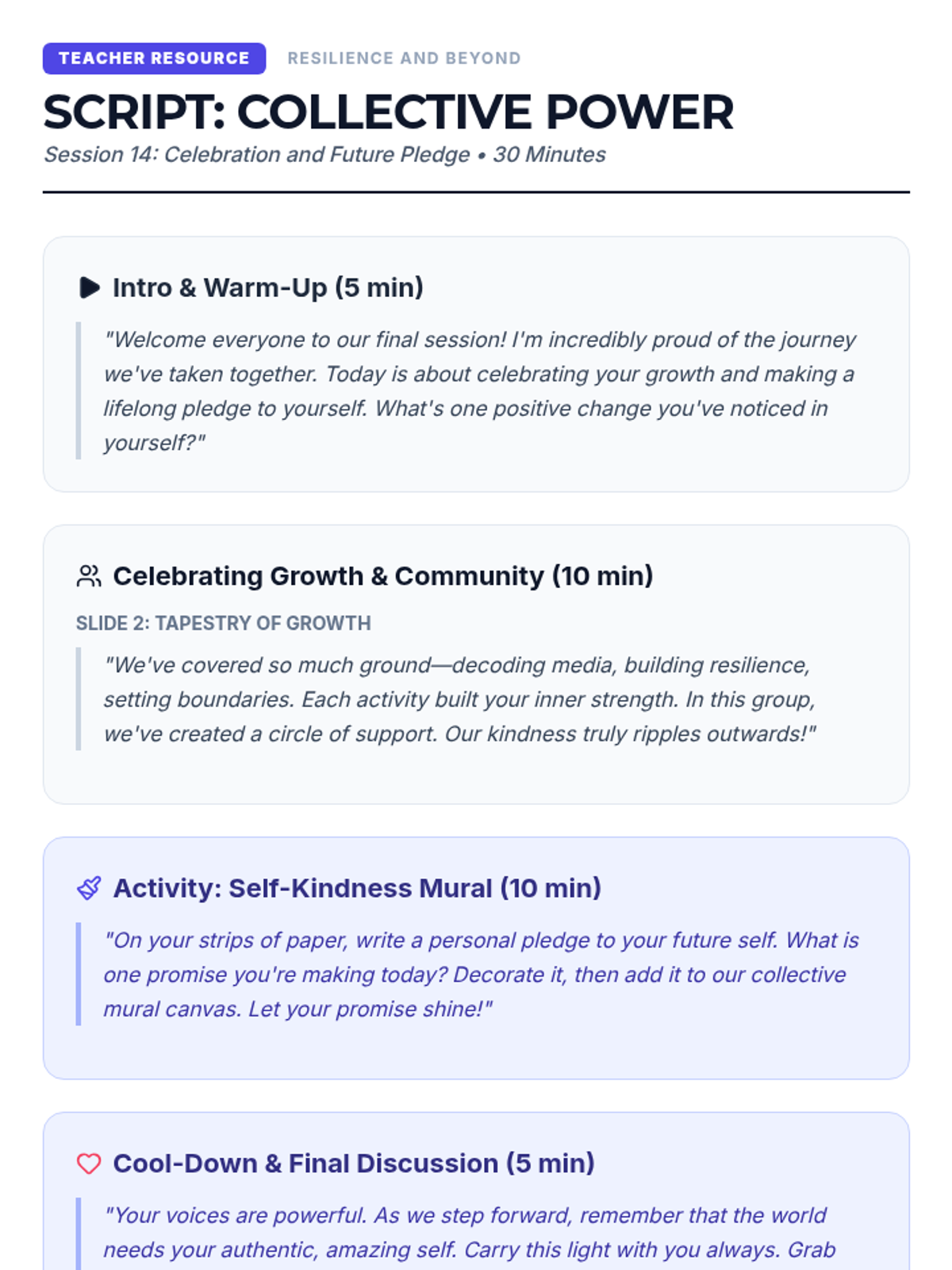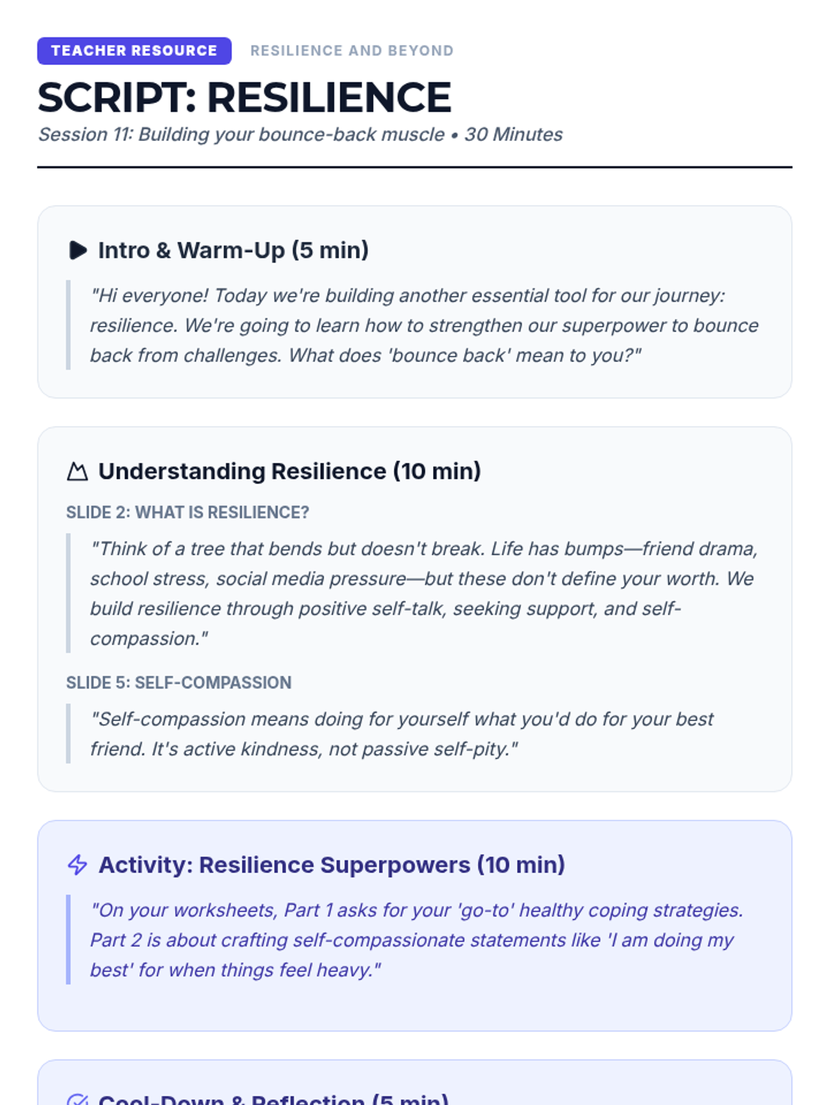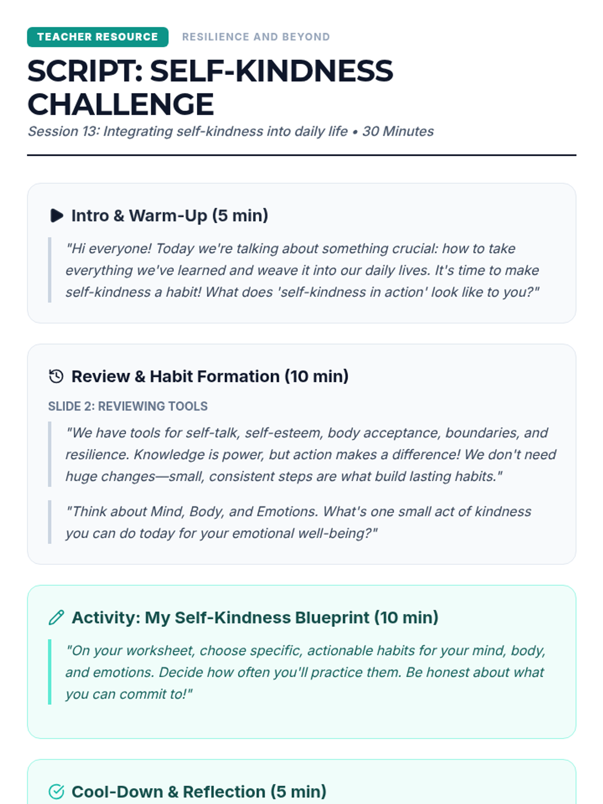 A comprehensive 8-lesson sequence for middle school students to master focus by distinguishing between and managing internal and external distractions. Each 20-minute session provides interactive instruction and practical activities.