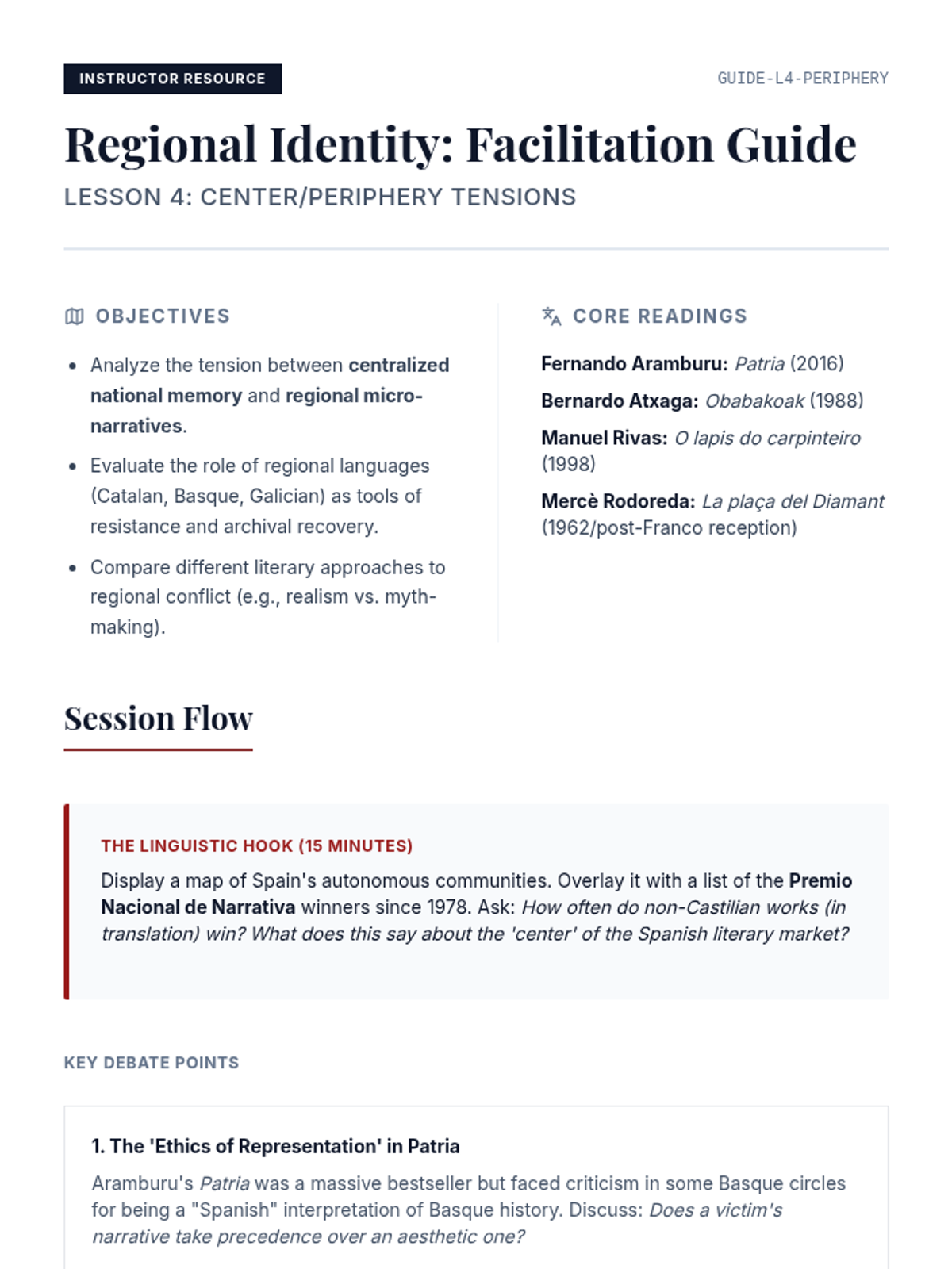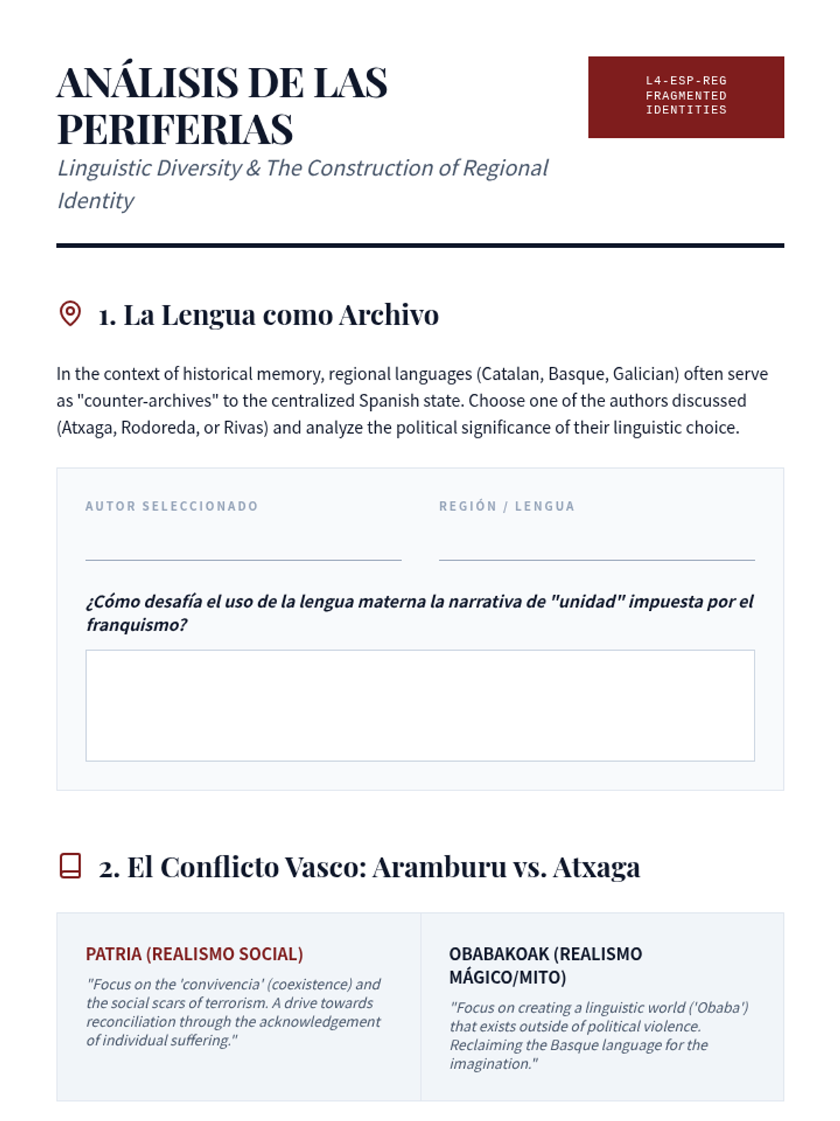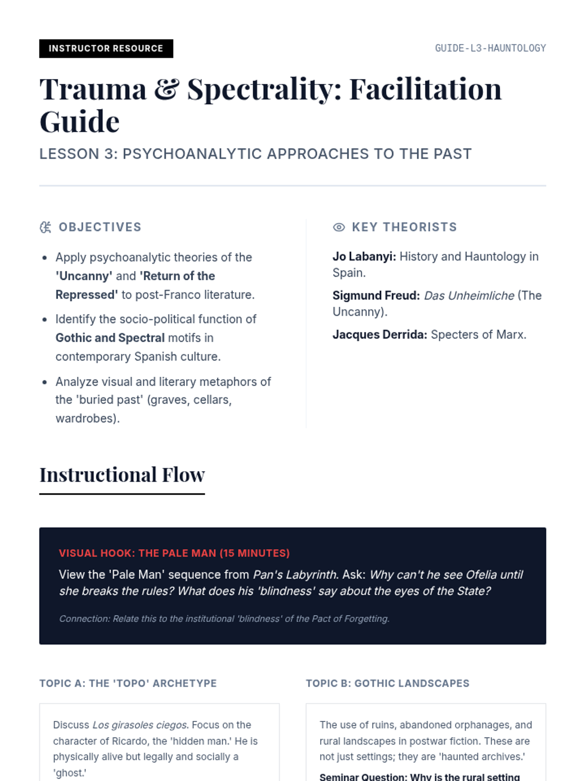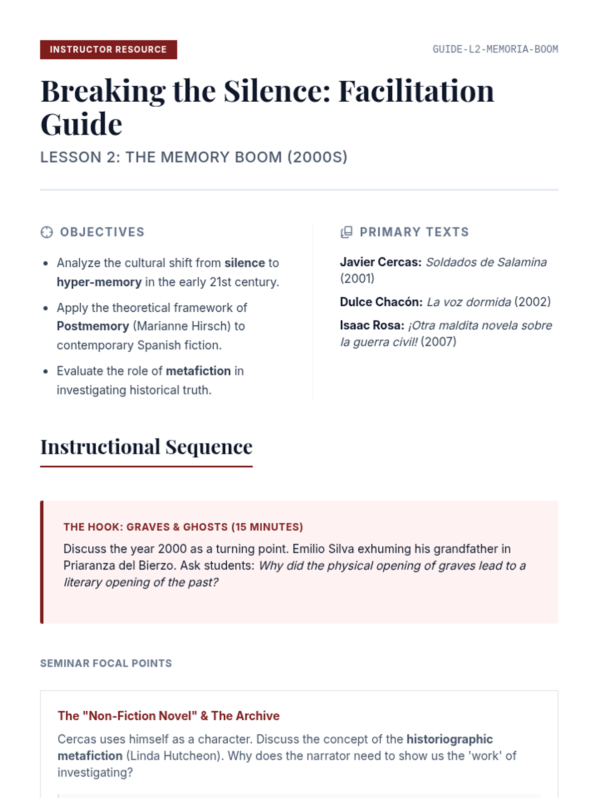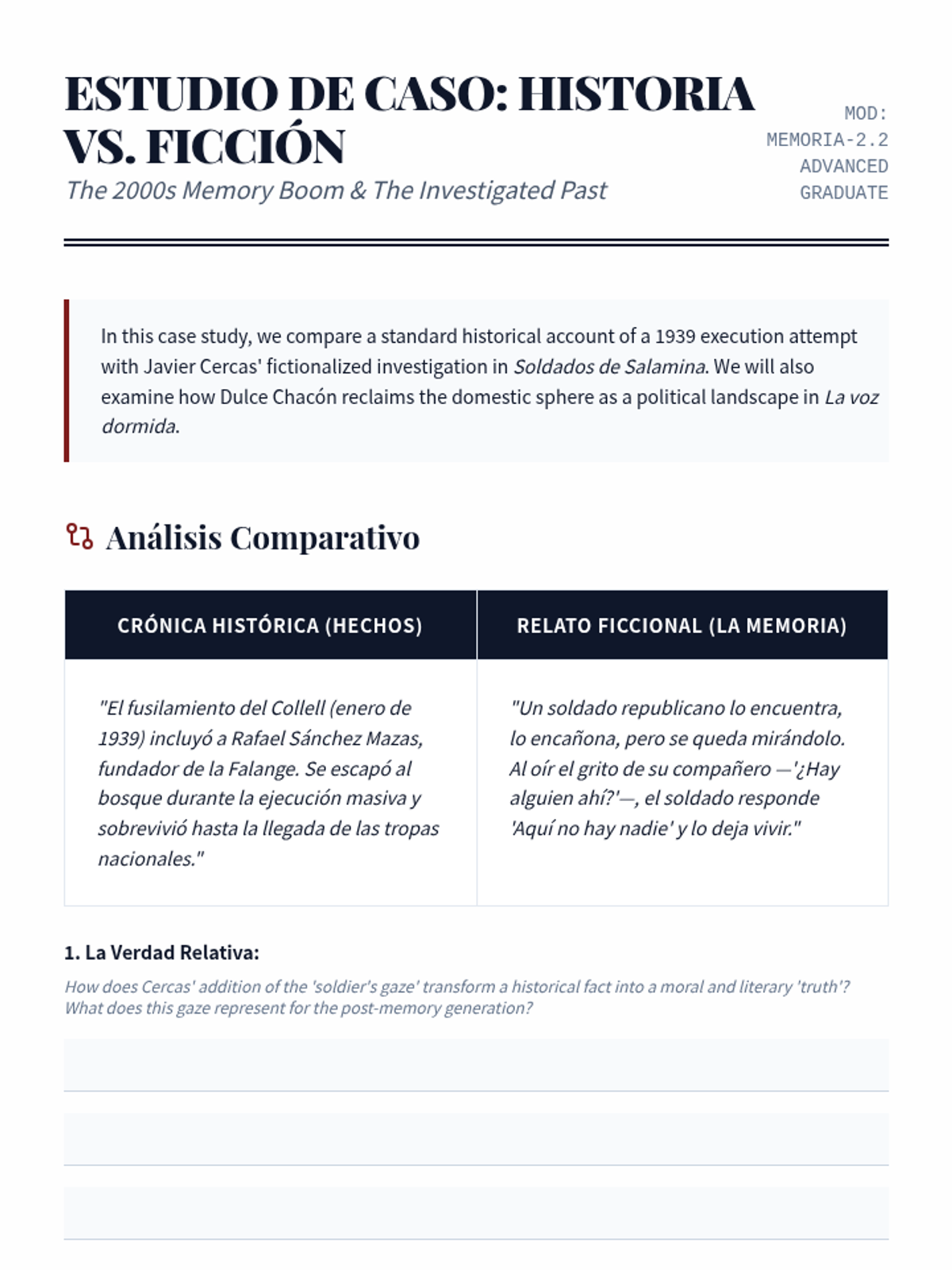 A graduate-level sequence exploring the intersection of literature and historical memory in post-Franco Spain, focusing on the Transition, the Pact of Forgetting, and the contemporary 'memory boom'.
