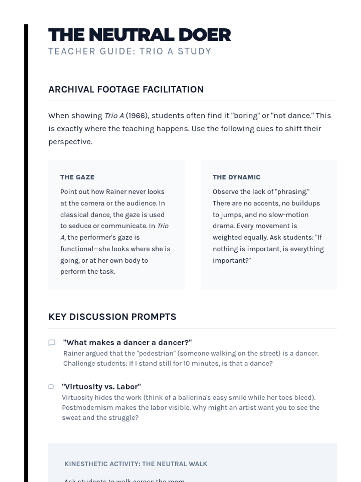 A deep dive into the 1960s-70s avant-garde dance movement, exploring how Merce Cunningham, the Judson Dance Theater, and Steve Paxton dismantled traditional virtuosity to redefine dance through chance, pedestrian movement, and physics.