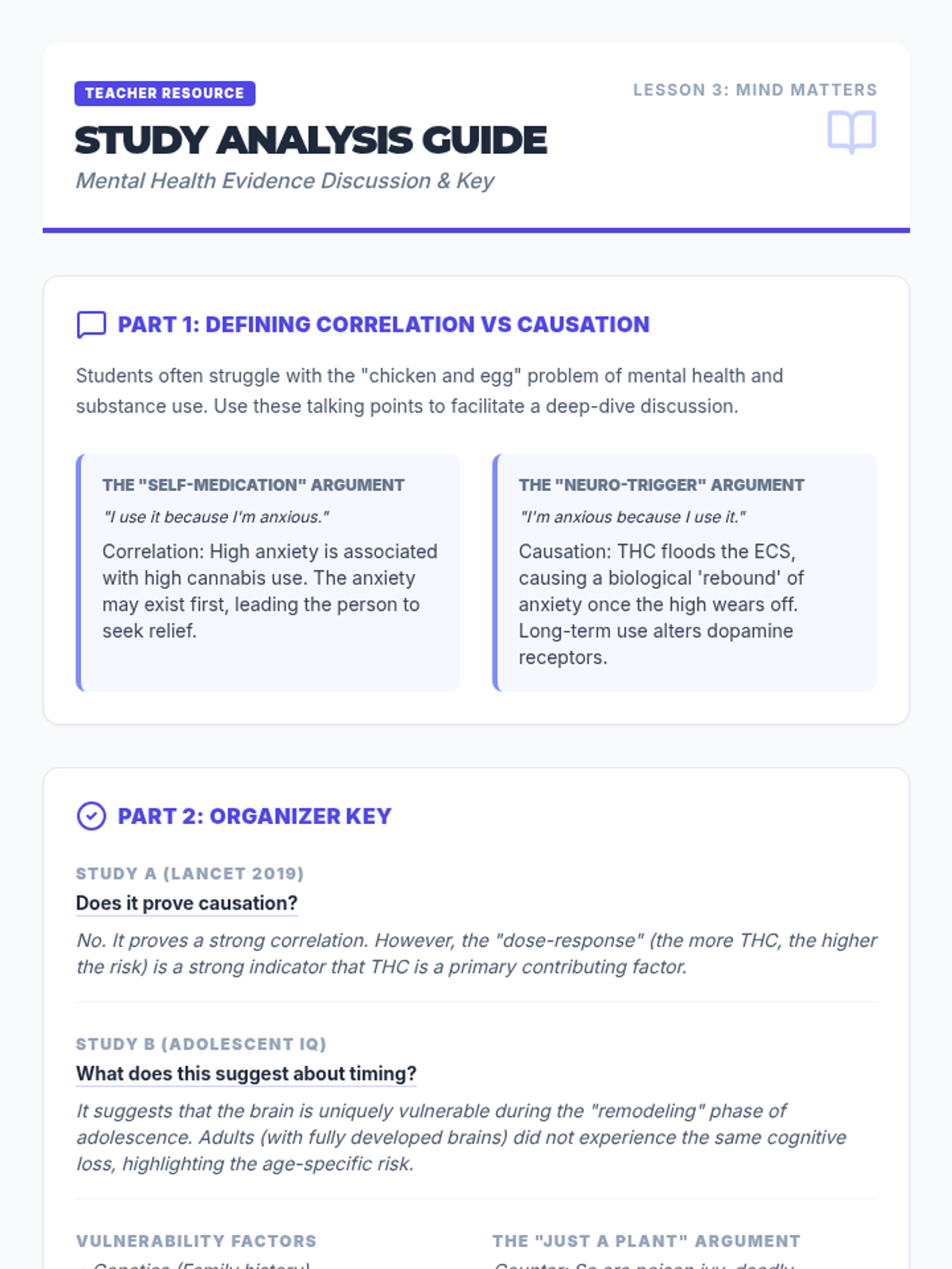 This sequence explores the evolving landscape of cannabis, focusing on the significant shift in THC potency and its impact on adolescent health. Students analyze data, medical evidence, and psychological studies to understand the risks associated with modern cannabis products.