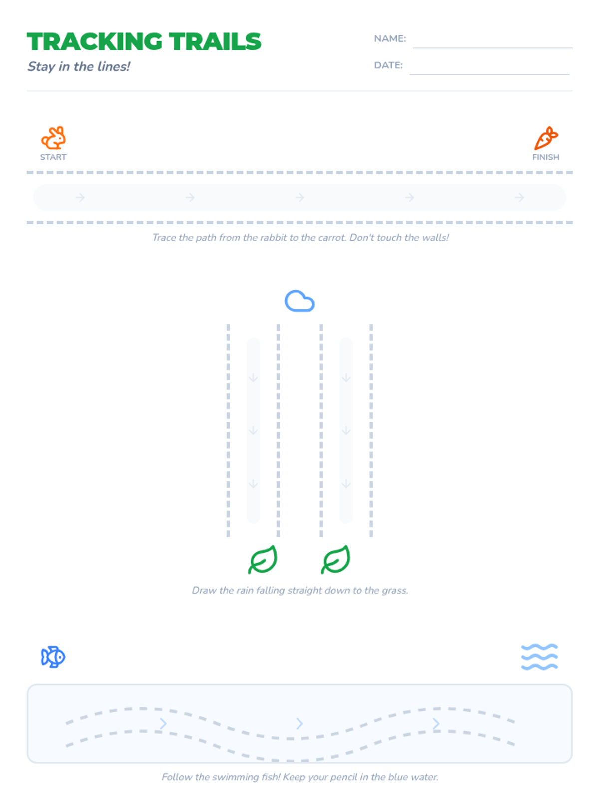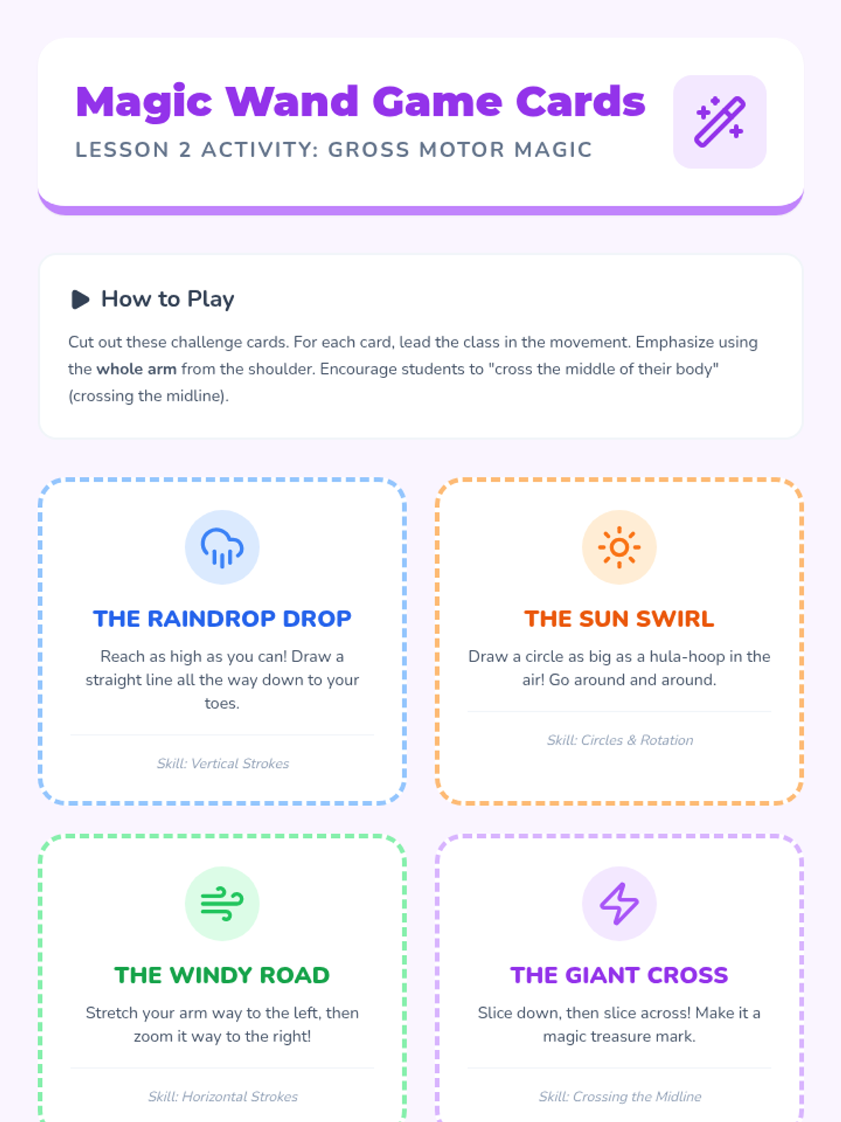 A Kindergarten sequence focused on developing fine motor skills through a multi-sensory approach, moving from tactile play to precision pencil-and-paper tasks. Students progress through sensory writing, gross motor air-tracing, path navigation, and dot-connecting to master the fundamental strokes of handwriting.