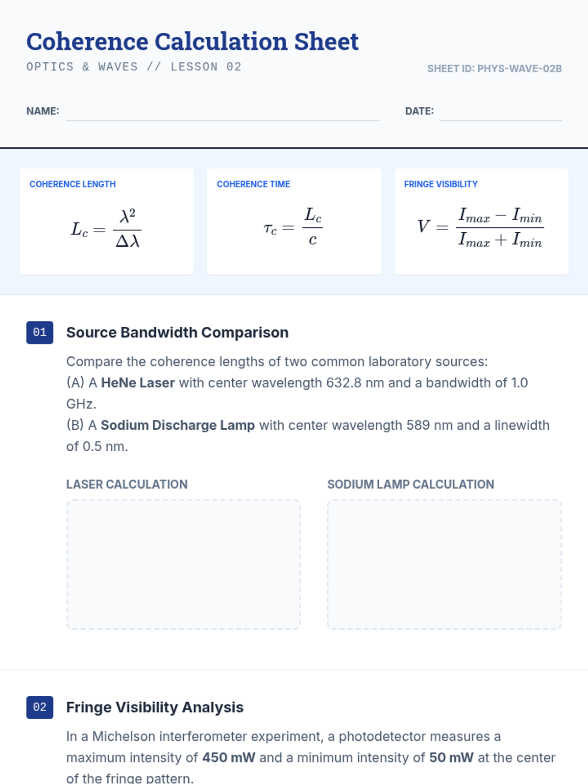 An advanced undergraduate physics sequence exploring the principles of wave interference, optical interferometry (Michelson and Fabry-Perot), coherence theory, and modern applications like holography and gravitational wave detection (LIGO).