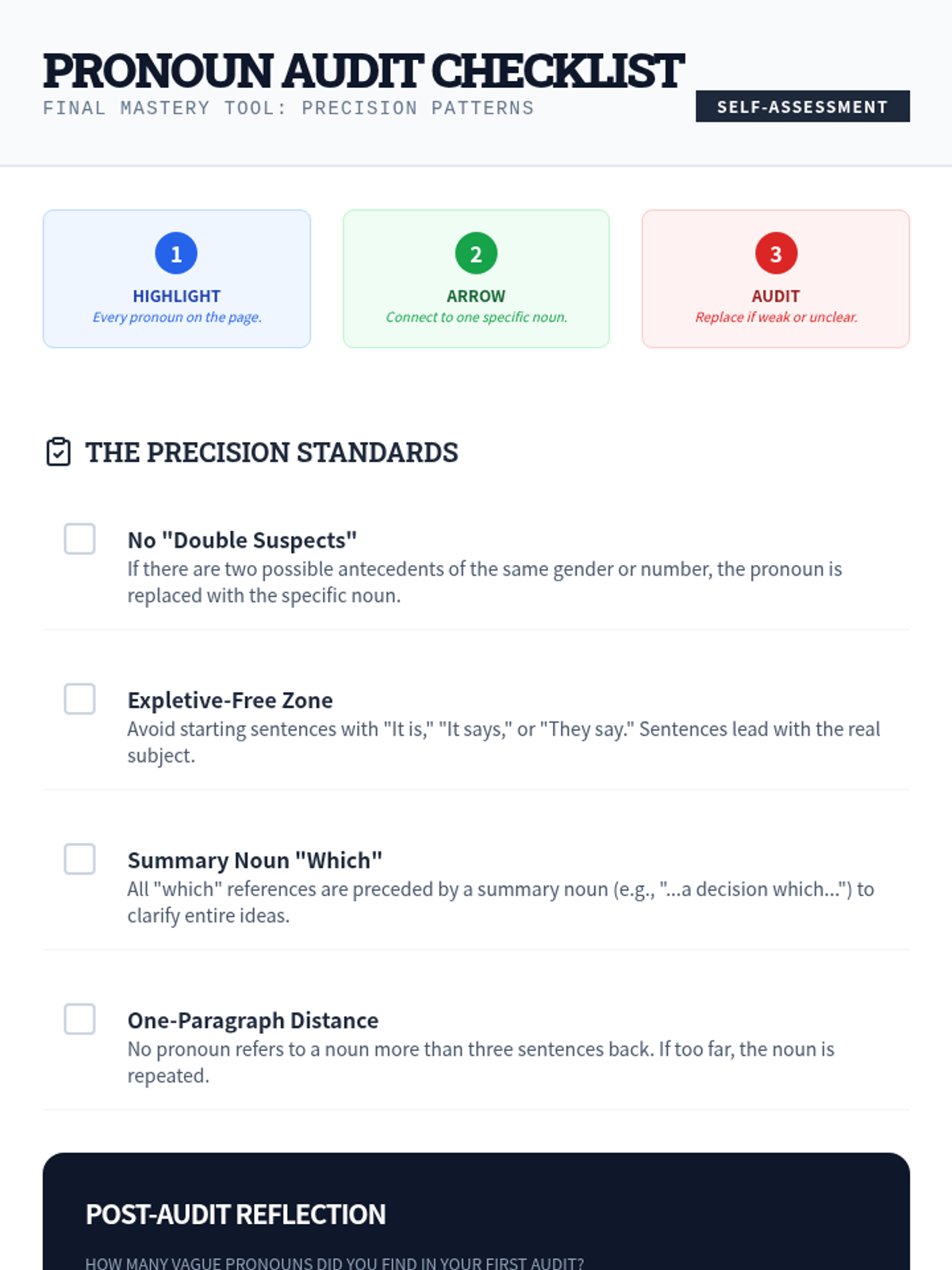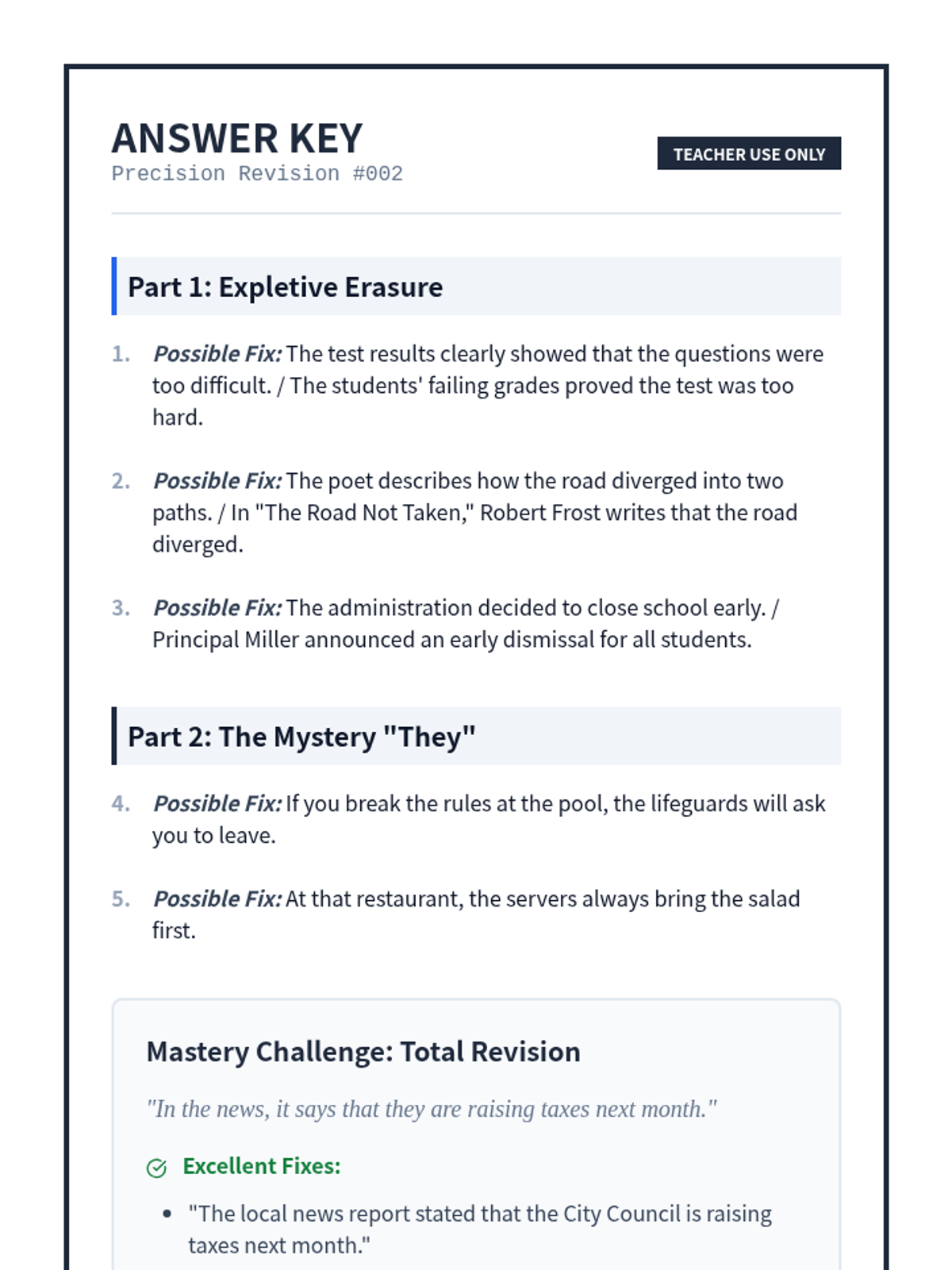 This sequence targets vague pronoun references, helping students move beyond basic agreement to achieve high-level clarity in their writing. Students analyze ambiguity in complex texts, restructure sentences for precision, and apply these skills to real-world scenarios like legal contracts and technical manuals.