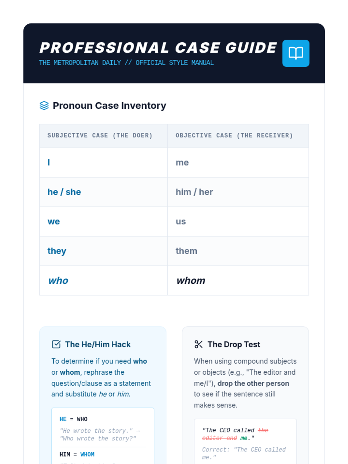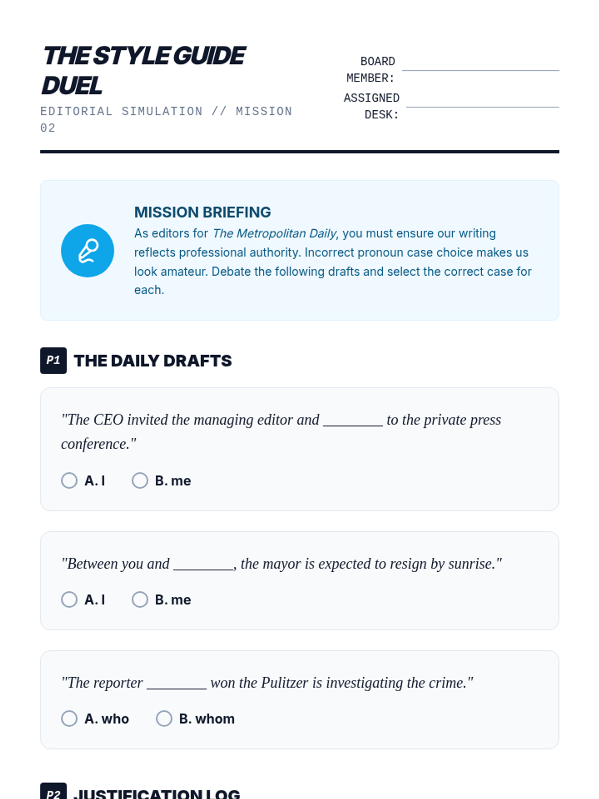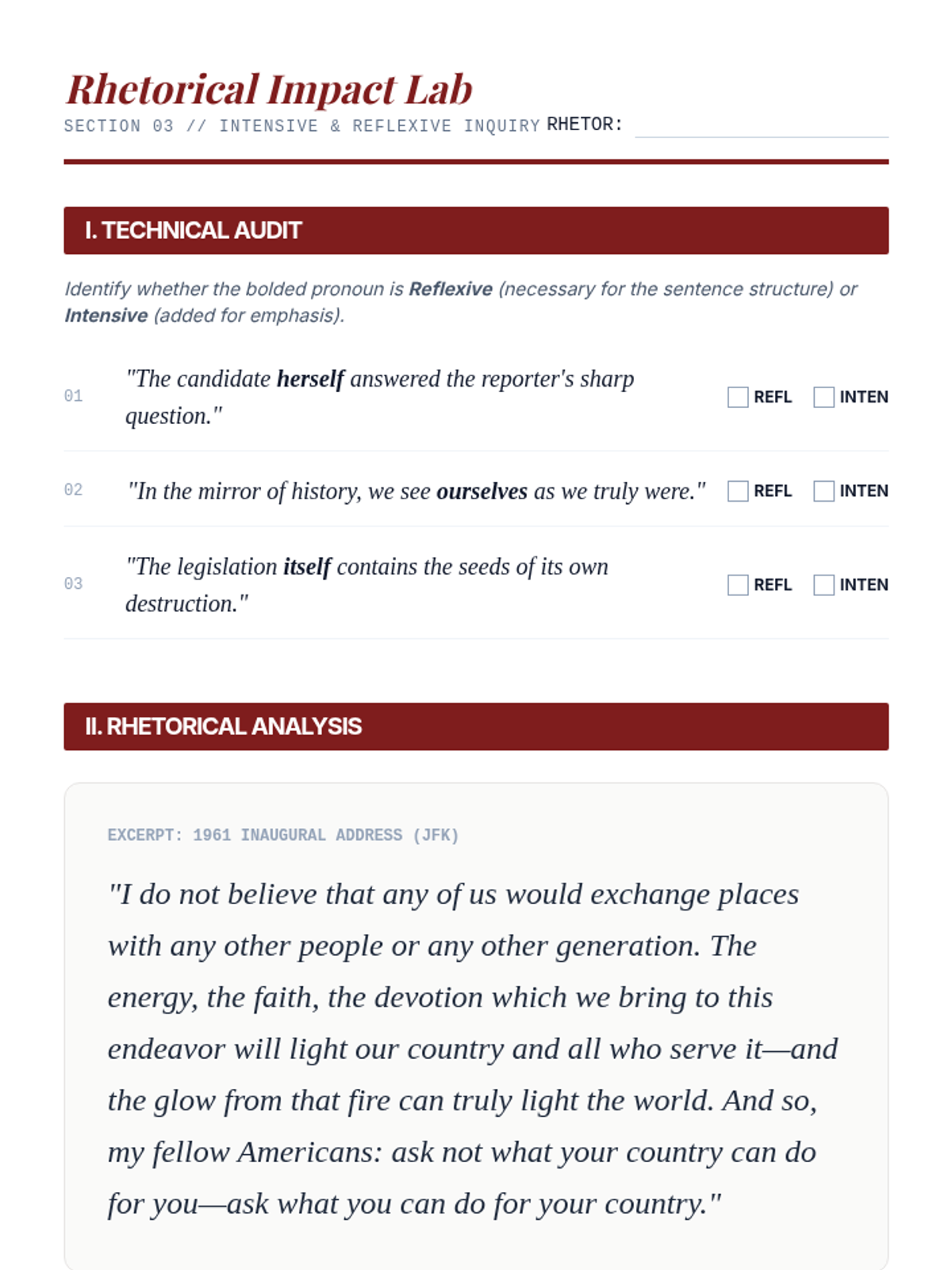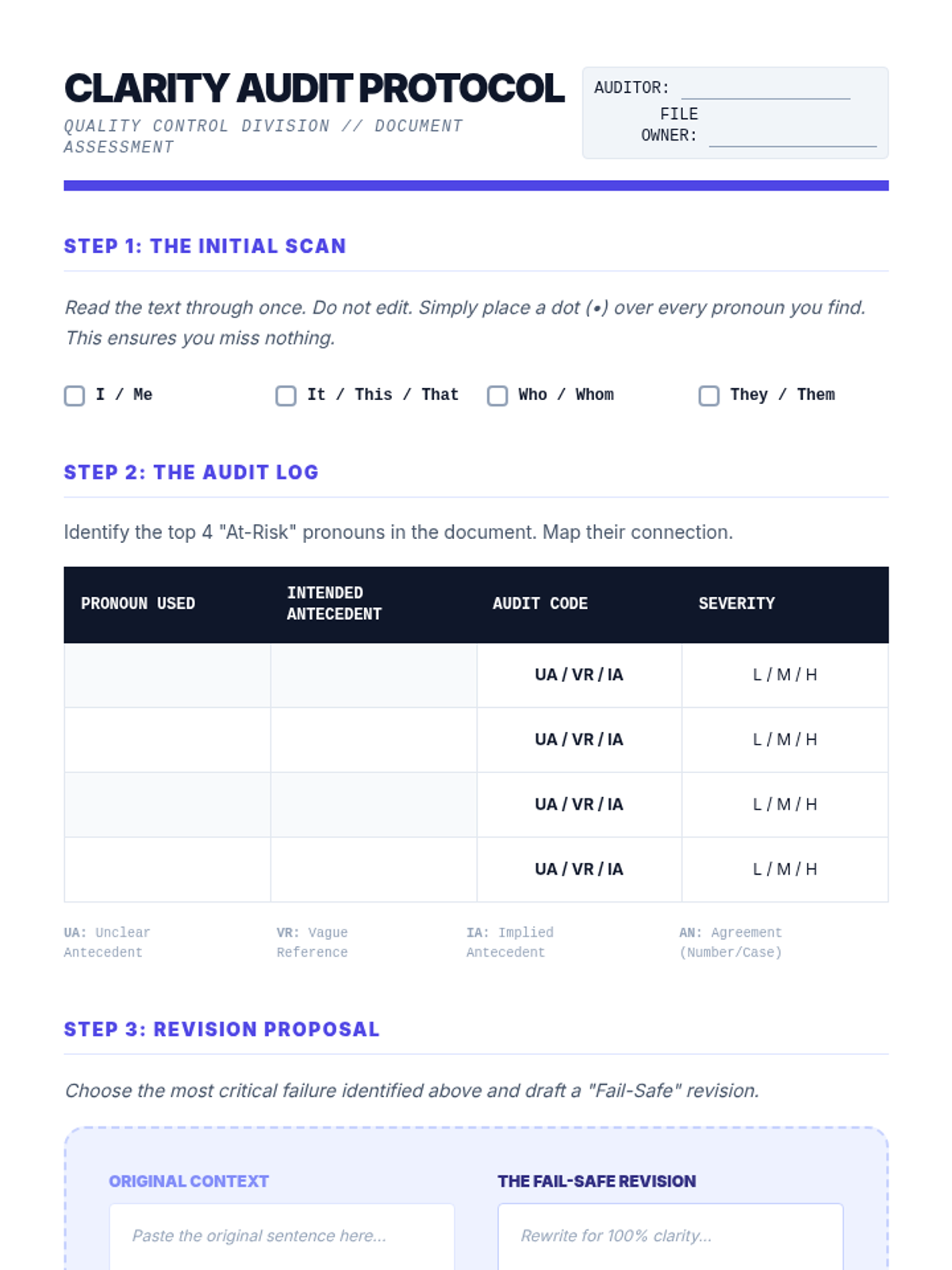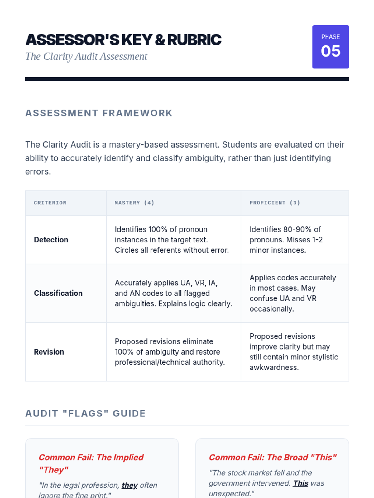 An inquiry-based exploration of pronoun precision in legal, professional, and rhetorical contexts. Students analyze how pronoun ambiguity can lead to significant real-world consequences, from legal disputes to loss of rhetorical power.