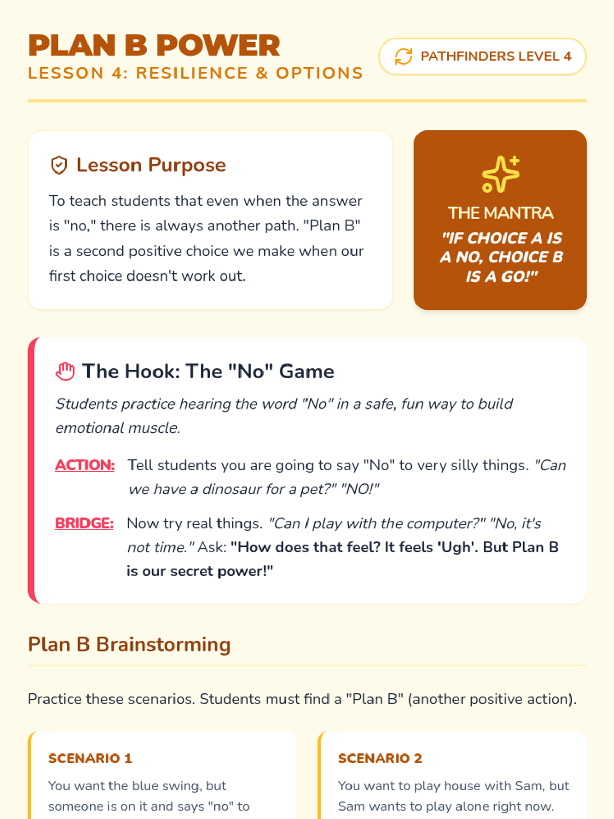 A comprehensive life skills curriculum for grades K-6 that builds critical thinking, conflict resolution, and civic responsibility through the Young Pathfinders adventure framework, powered by Skill Plus methodology.