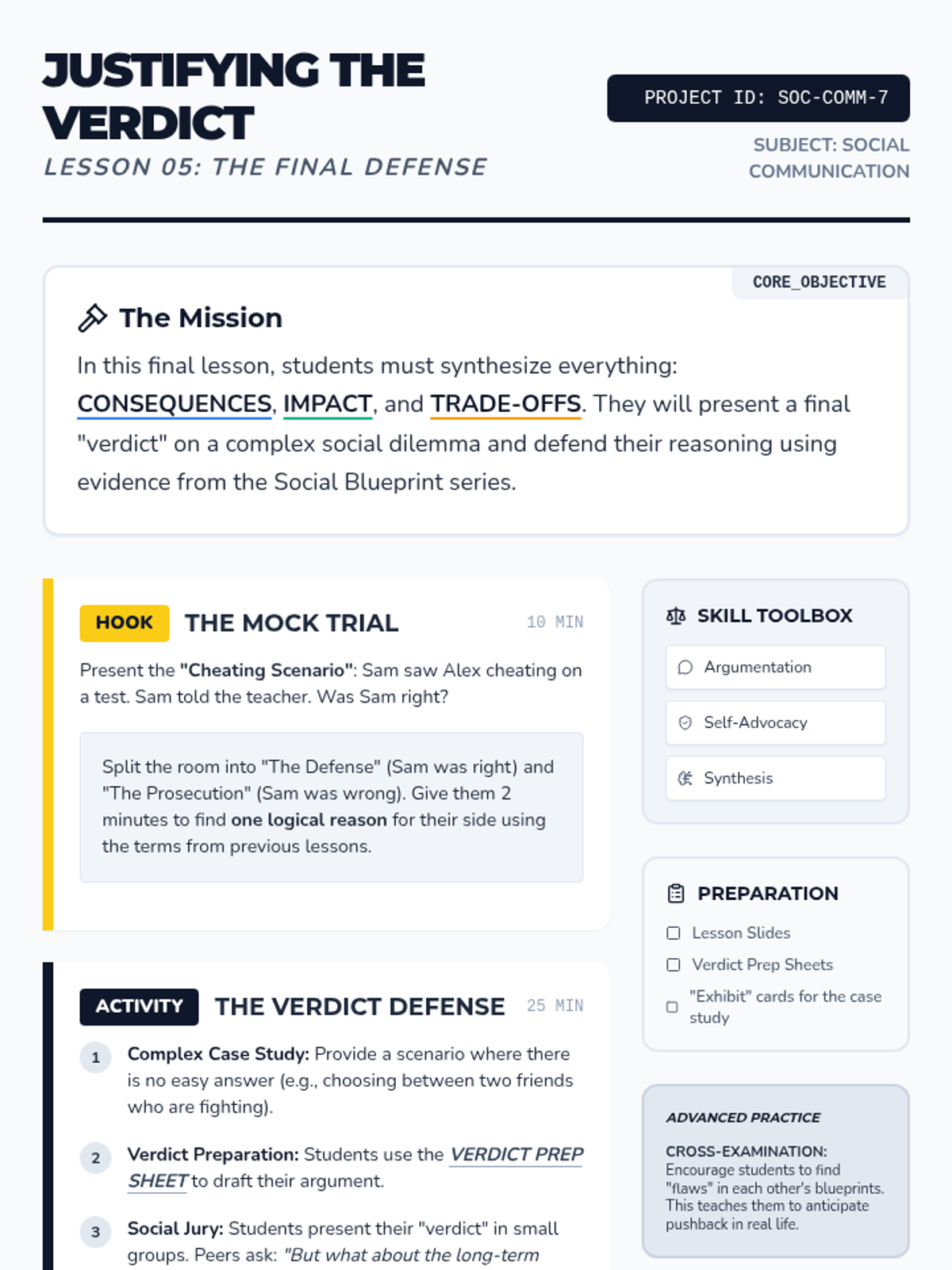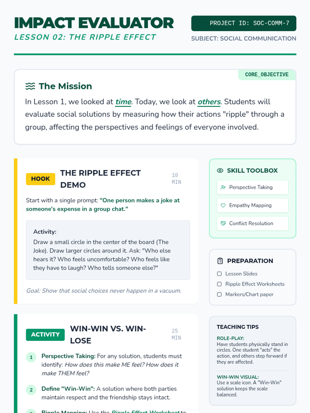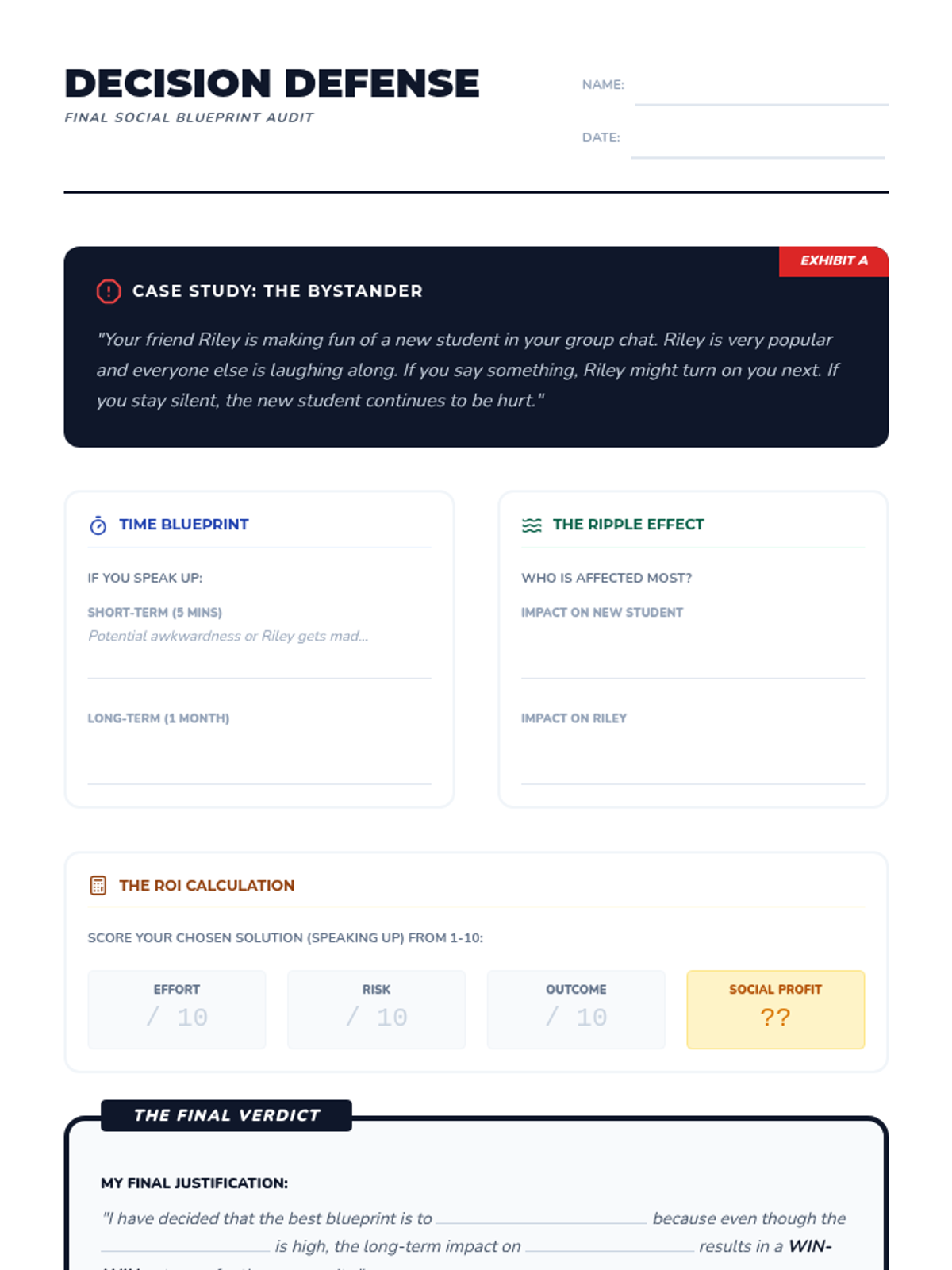 This sequence guides 7th-grade students through the process of evaluating social choices by predicting short- and long-term consequences, understanding the impact on others, and navigating digital communication. Students learn to weigh pros and cons using a 'social capital' framework to make informed, empathetic decisions in complex middle school scenarios.