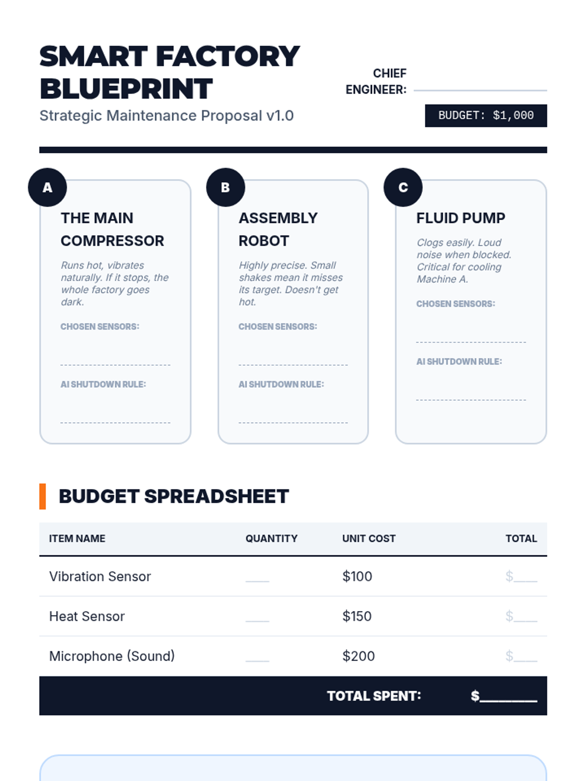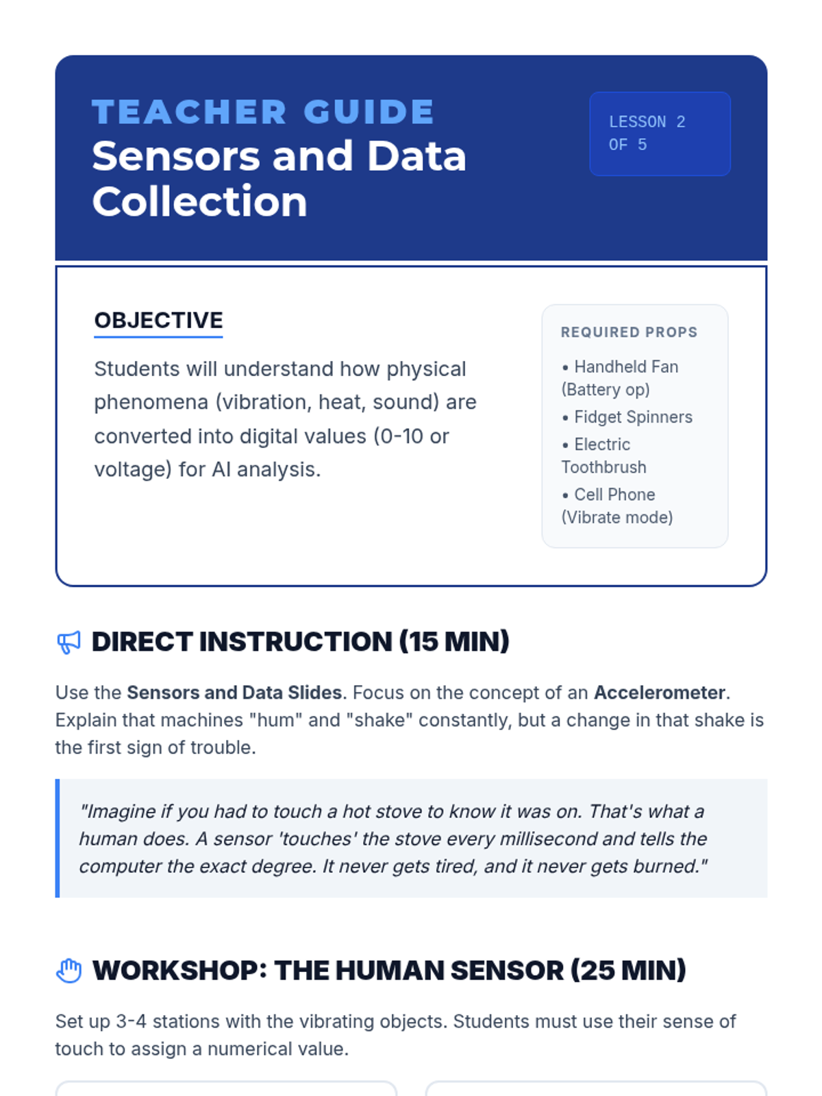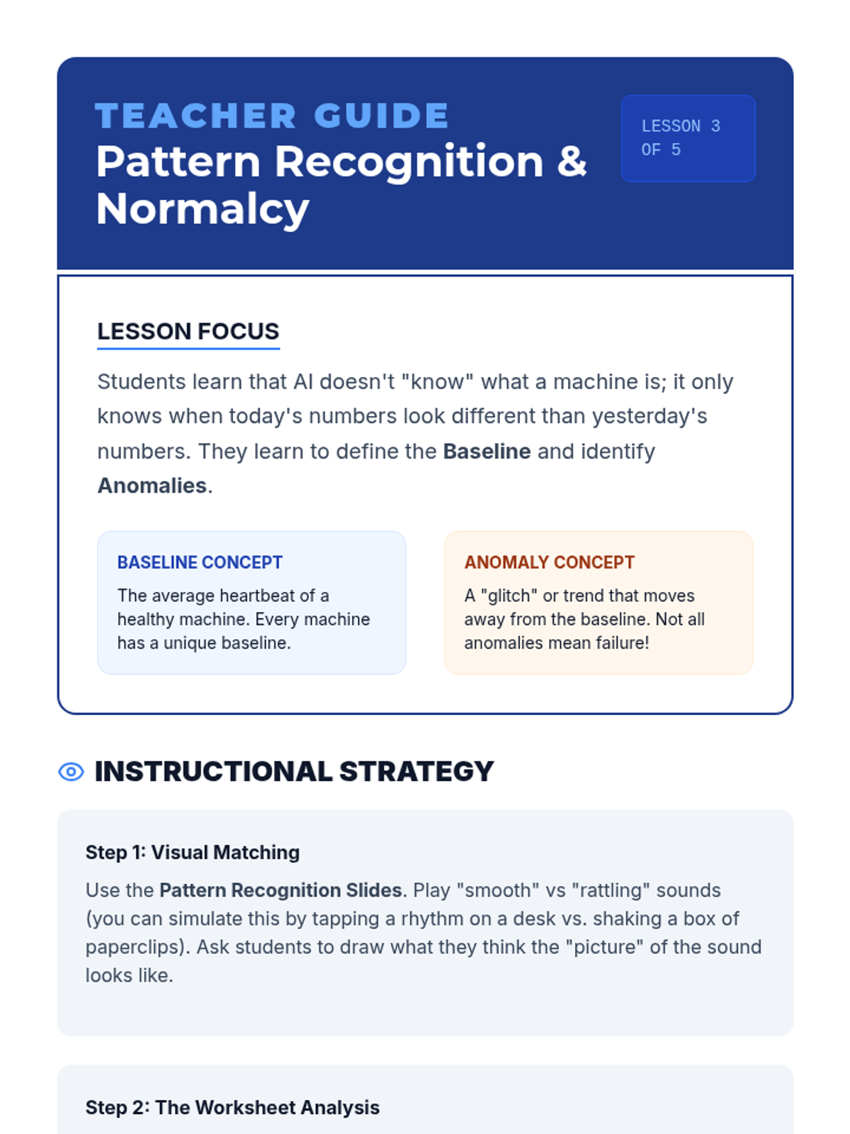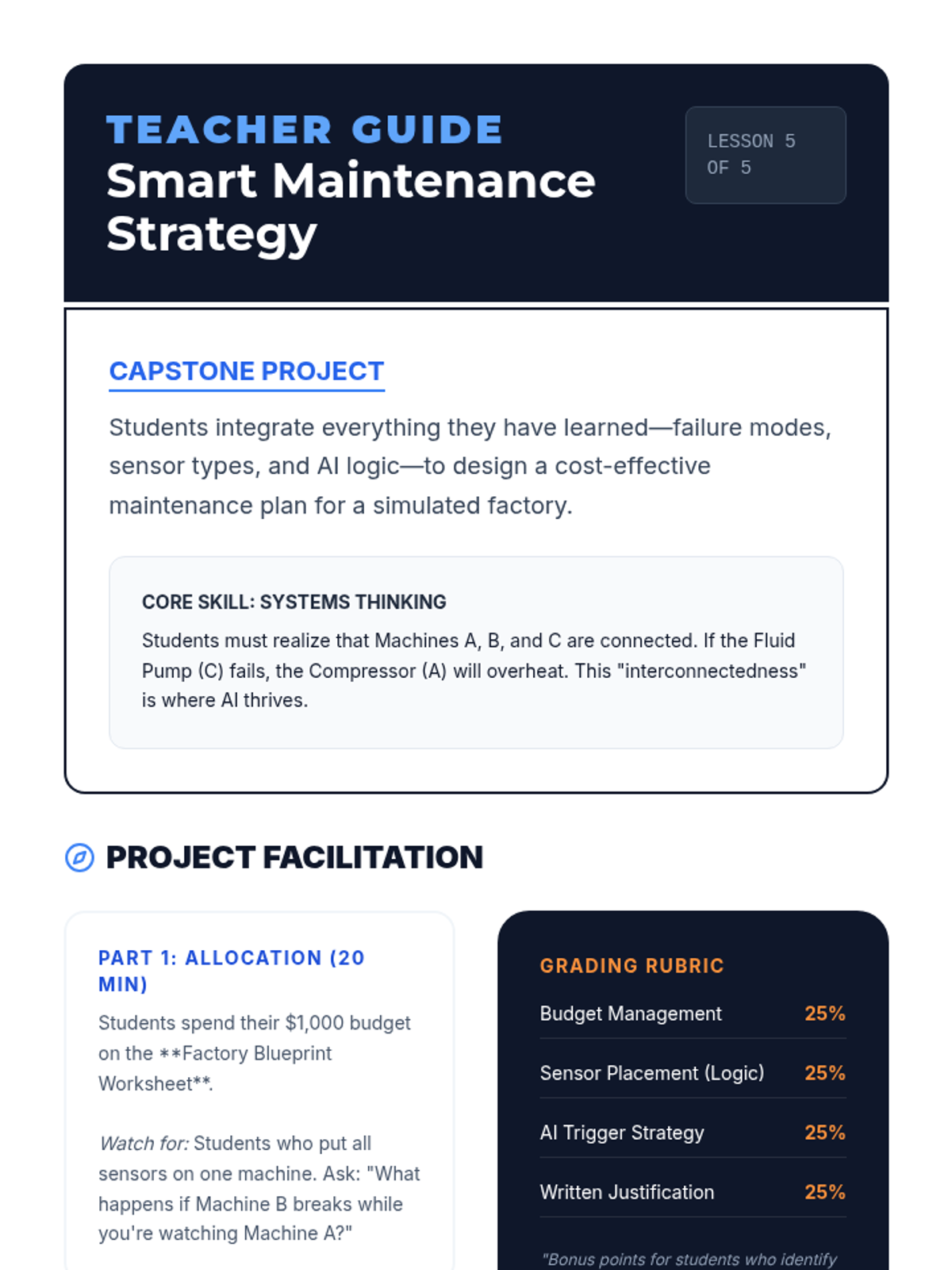 A case-study focused unit introducing 6th graders to mechanical engineering and AI. Students explore how sensors and data patterns allow AI to predict and prevent machine failure in industrial settings.