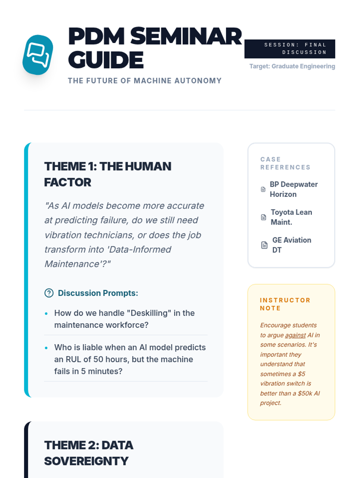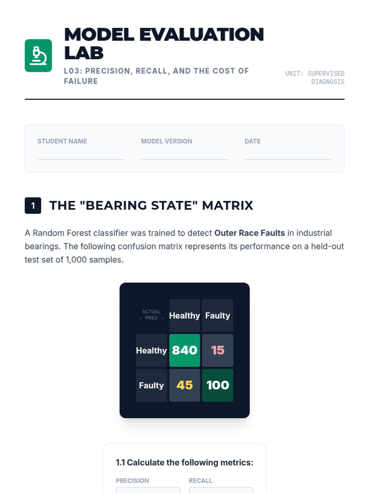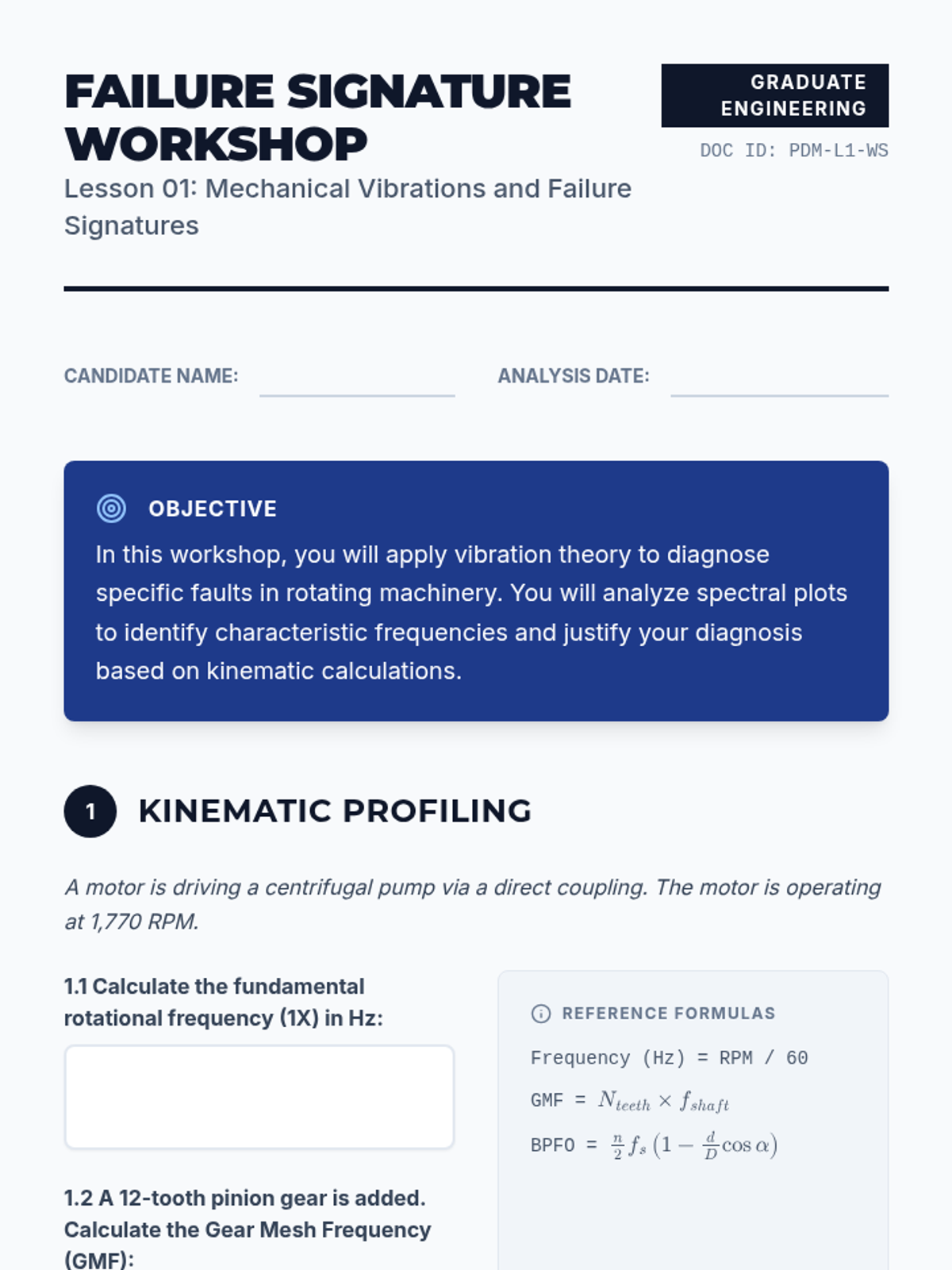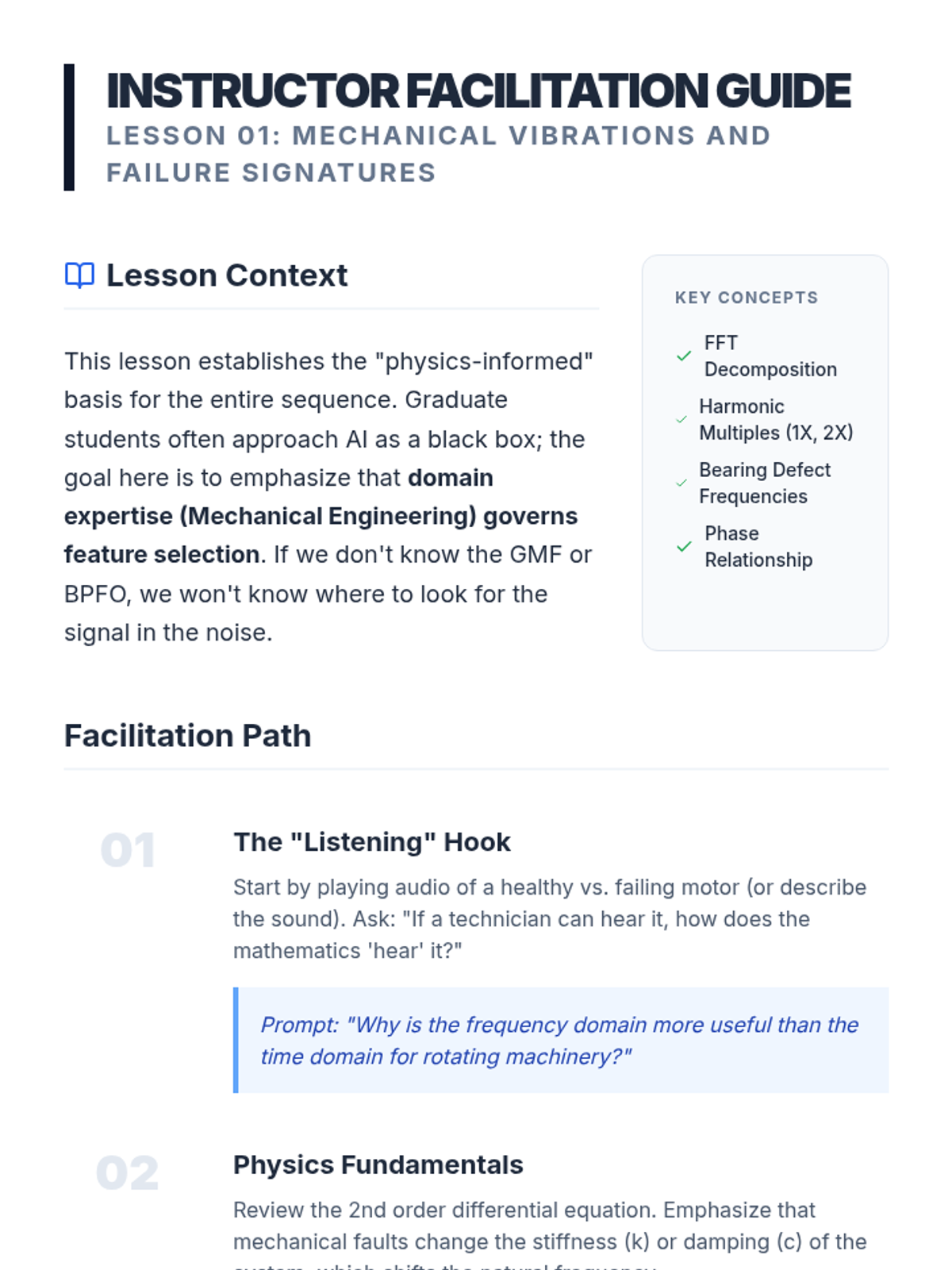 A graduate-level course on the application of machine learning to mechanical systems for predictive maintenance. Students learn to process vibration data, extract features, and build prognostic models to predict Remaining Useful Life (RUL).