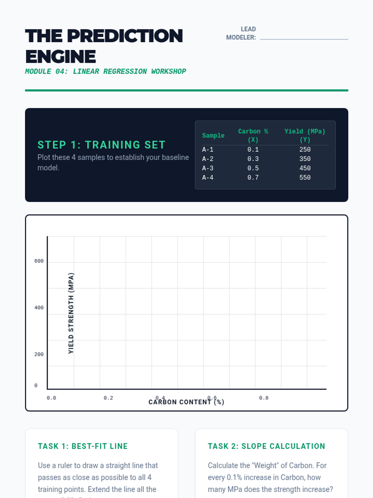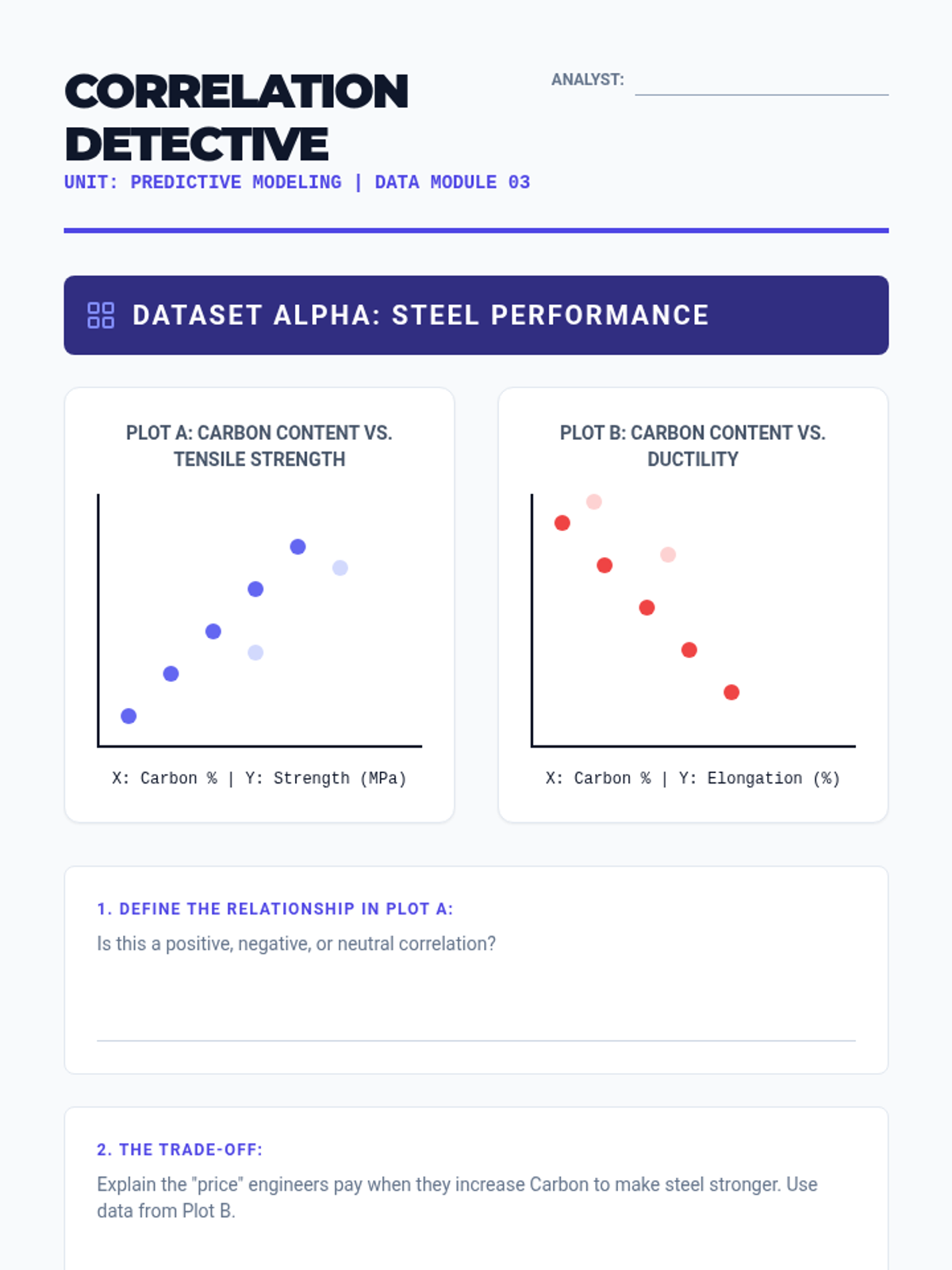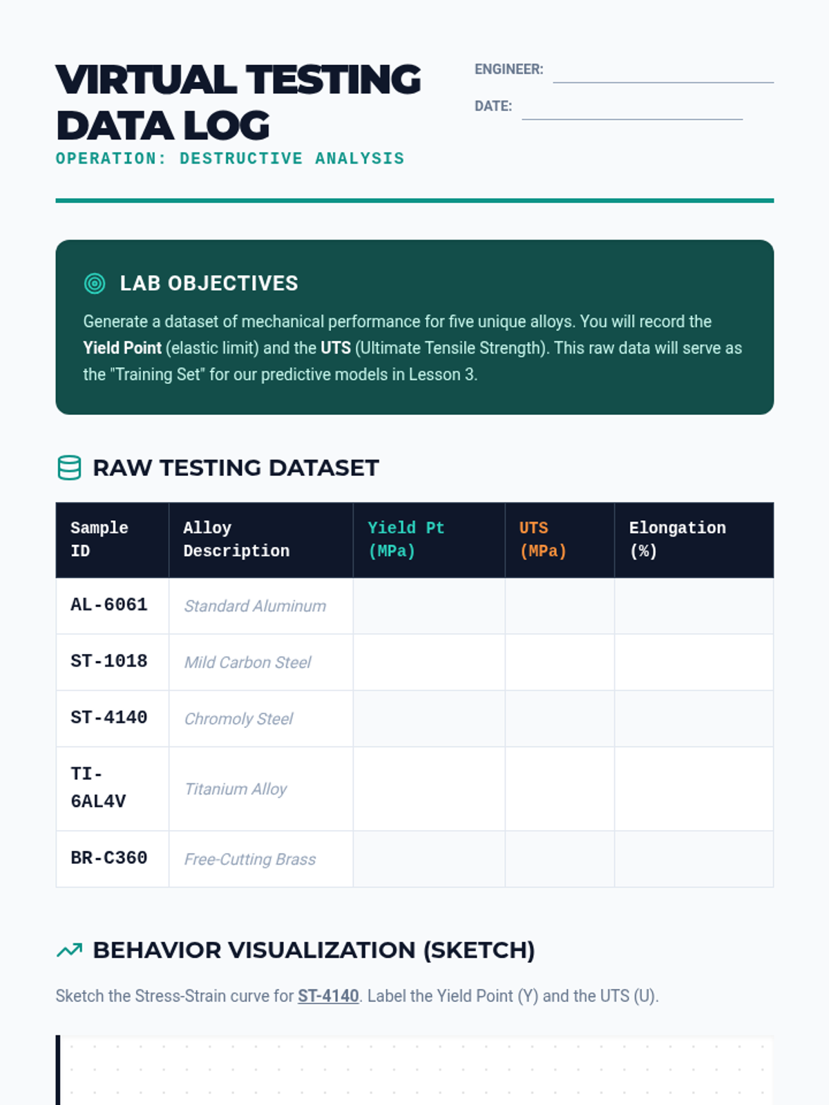 A high school engineering sequence exploring material science through the lens of data and predictive modeling. Students learn about material properties, perform virtual destructive testing, and use linear models and AI concepts to predict material failure in high-stakes environments.