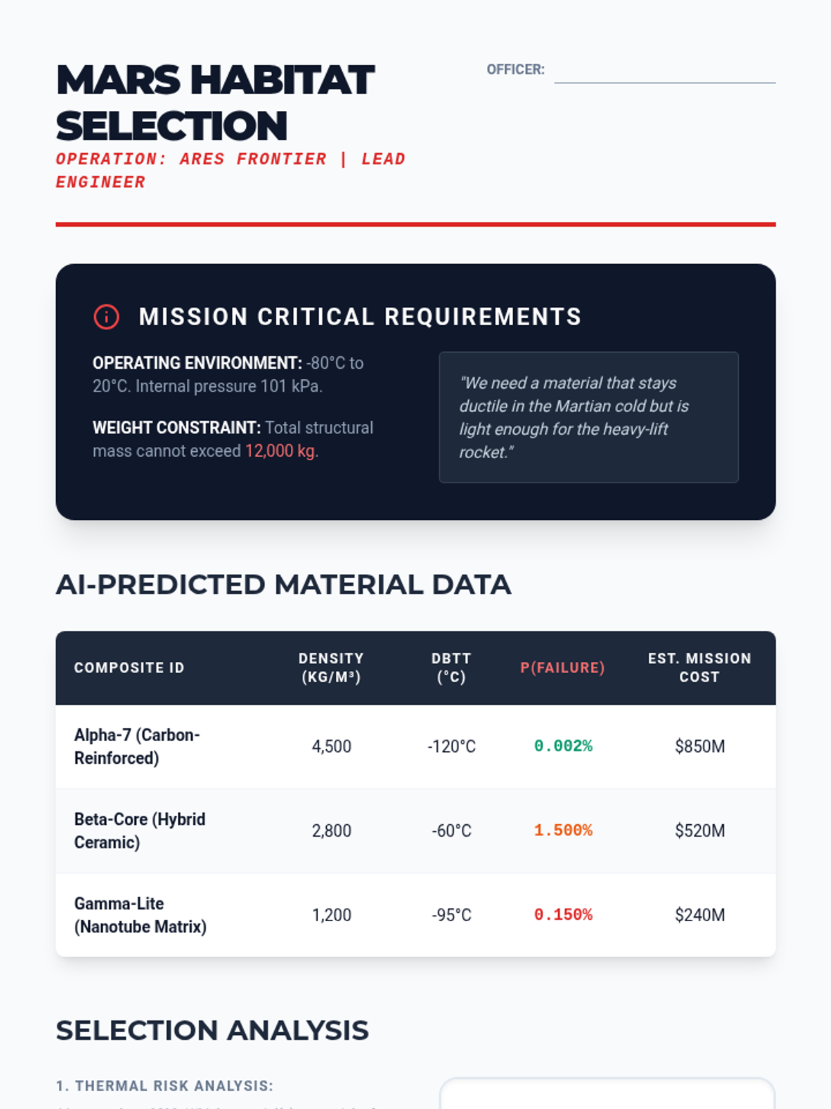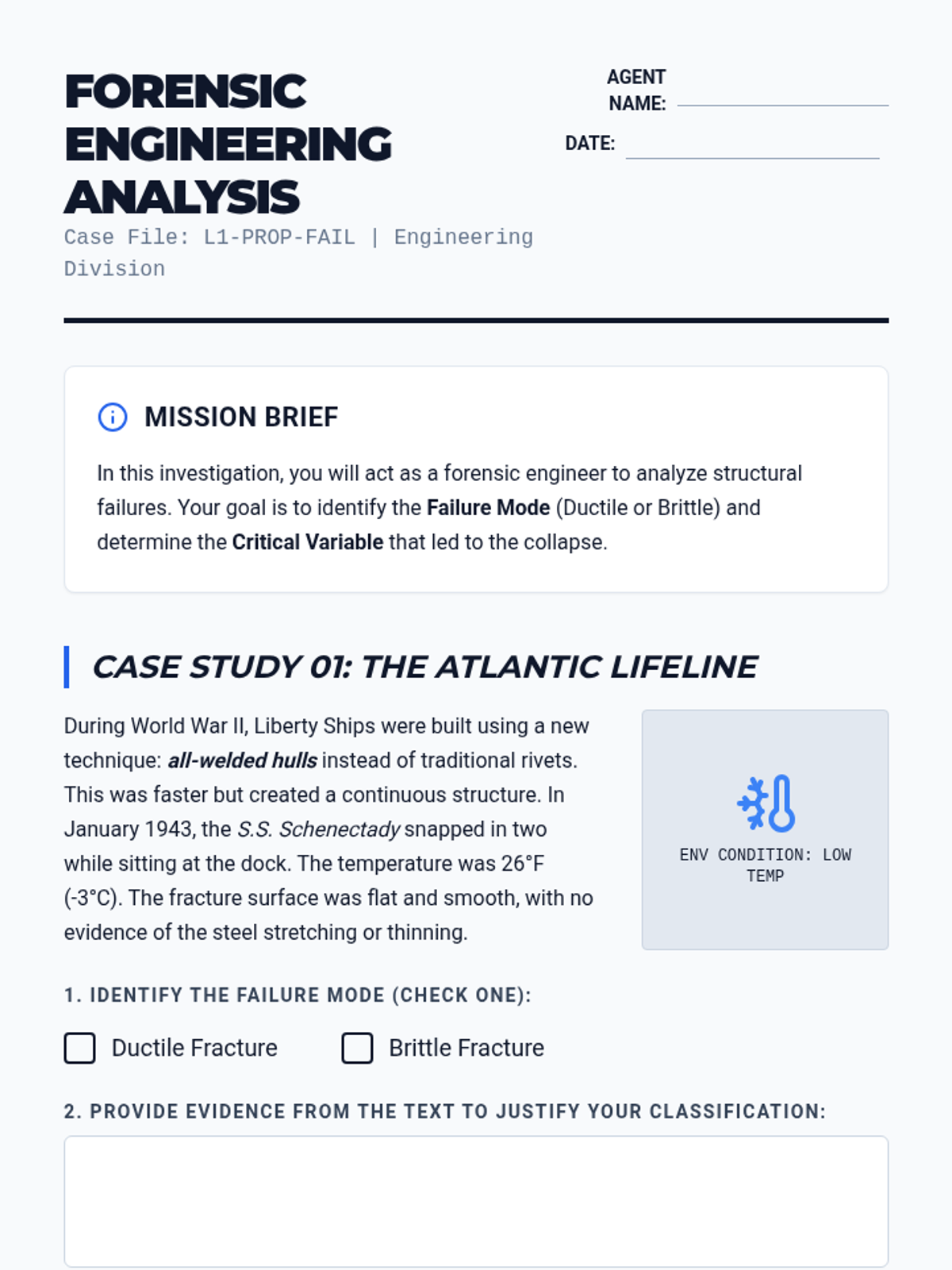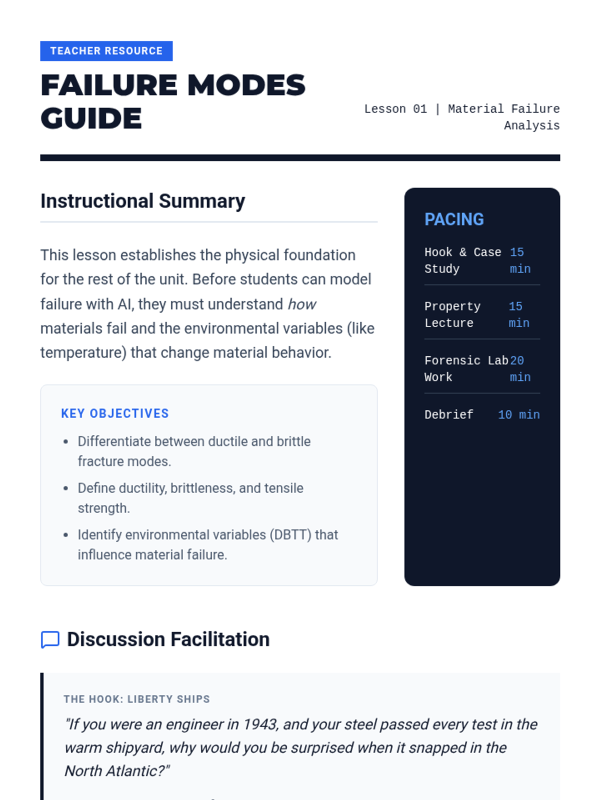 A high school engineering sequence exploring material science through the lens of data and predictive modeling. Students learn about material properties, perform virtual destructive testing, and use linear models and AI concepts to predict material failure in high-stakes environments.