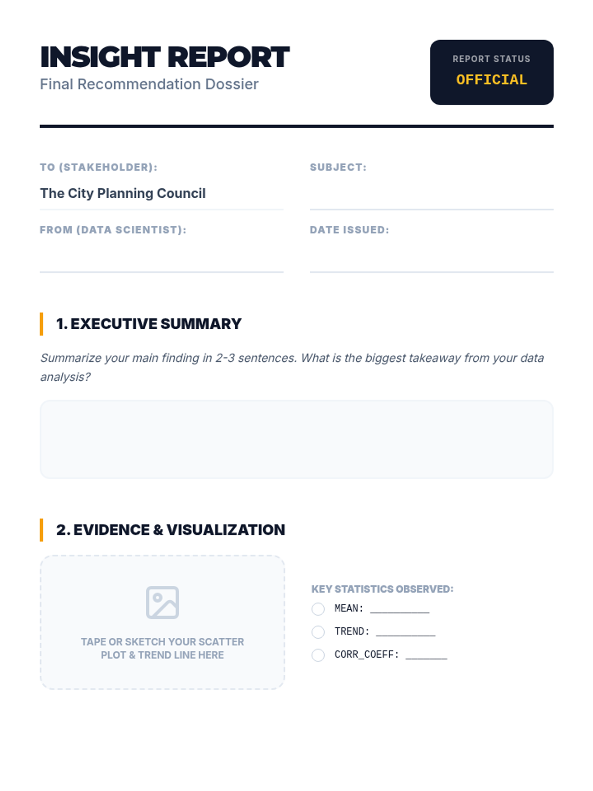 A comprehensive sequence for 7th-grade students exploring predictive modeling through real-world data analysis, from hypothesis formulation to actionable insight reporting.