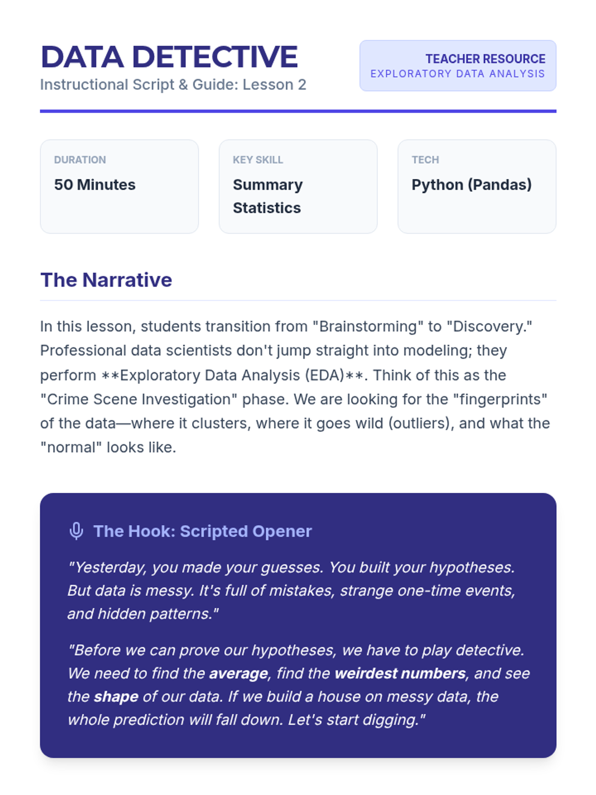 A comprehensive unit on the fundamentals of forensic science and criminal investigation, culminating in a hands-on murder mystery simulation. Students learn about evidence collection, witness psychology, and deductive reasoning.