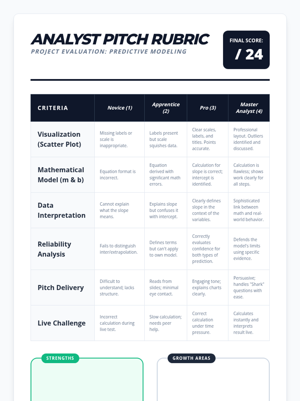 A project-based unit where 8th-grade students act as data analysts, moving from real-world data collection to constructing linear models and making evidence-based predictions using interpolation and extrapolation.
