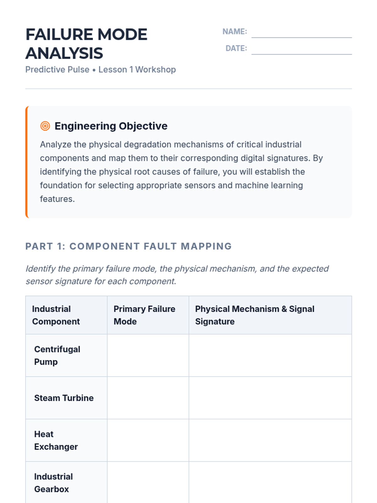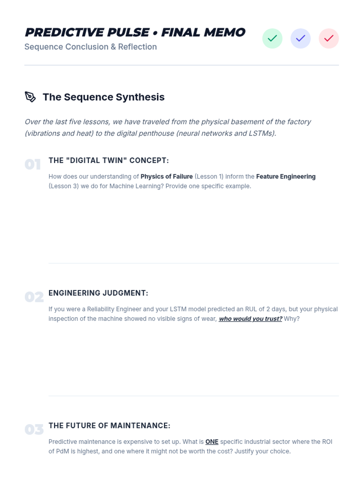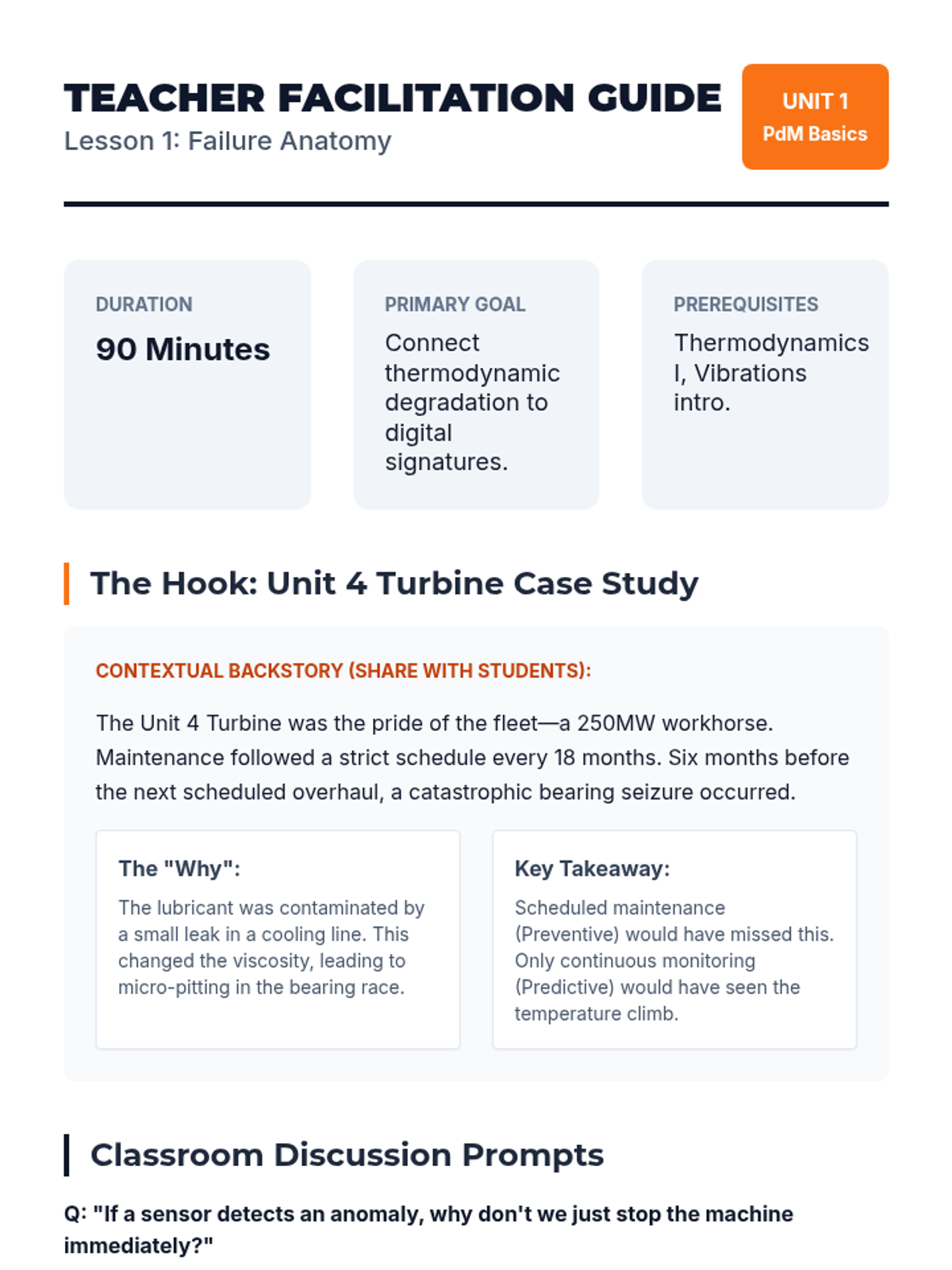This undergraduate engineering sequence bridges thermodynamics and machine learning, teaching students how to predict mechanical failures using sensor data and predictive algorithms. Students progress from analyzing physical failure modes to building time-series forecasting models for industrial reliability.