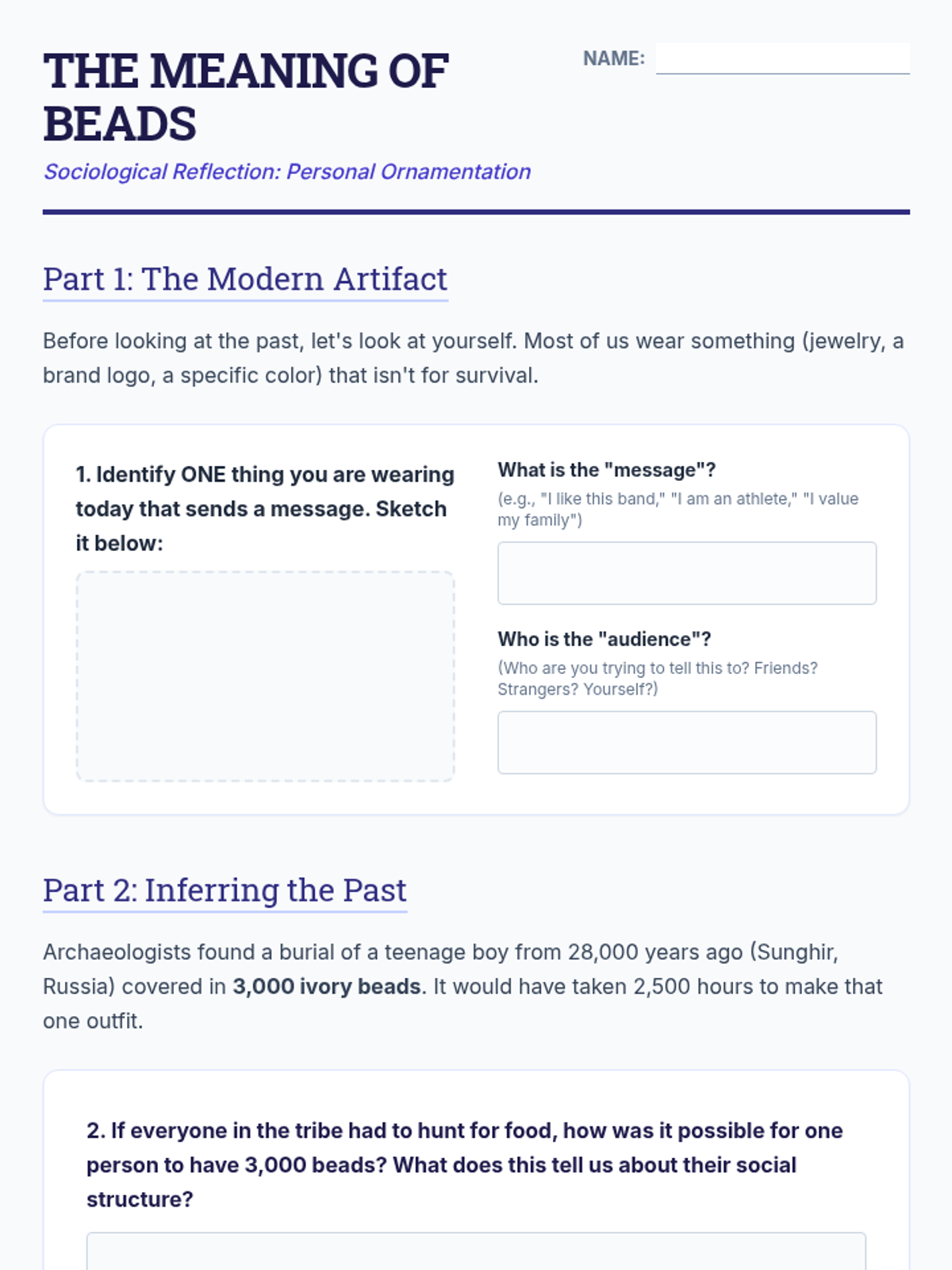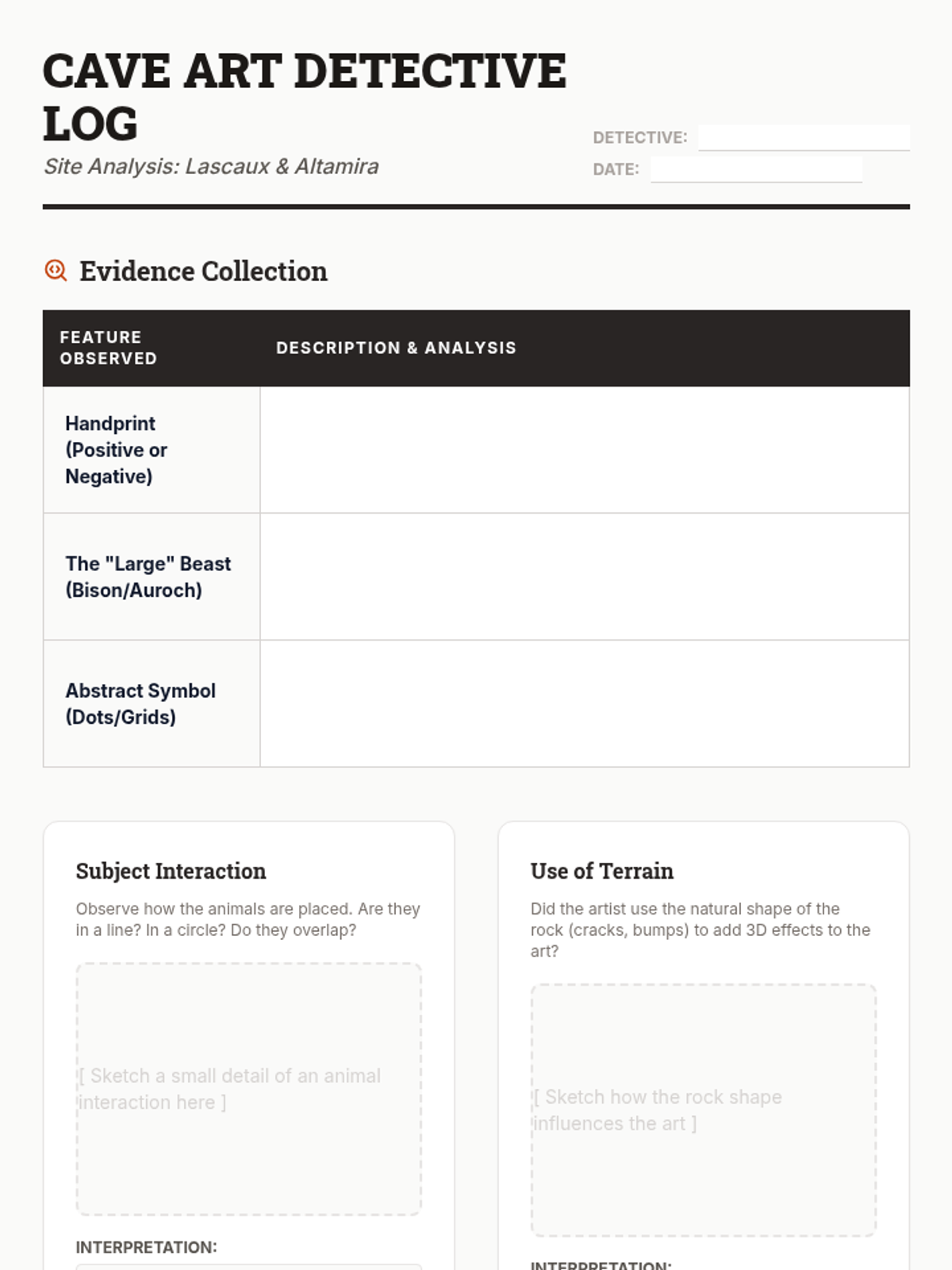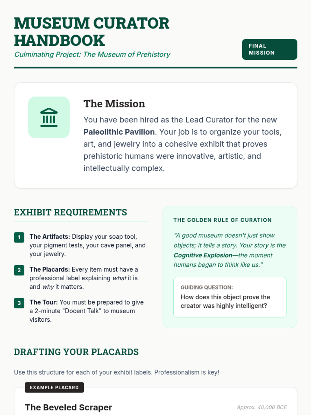 A 6th-grade sequence exploring the cognitive explosion of the Upper Paleolithic era through the lens of technology and art, emphasizing hands-on discovery and the evolution of complex thinking.