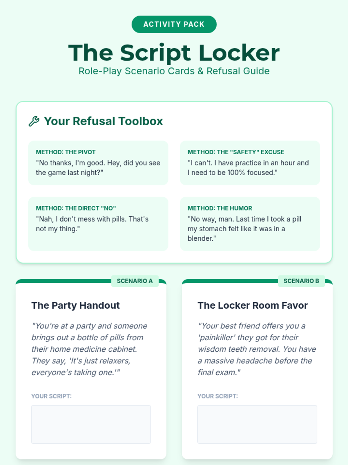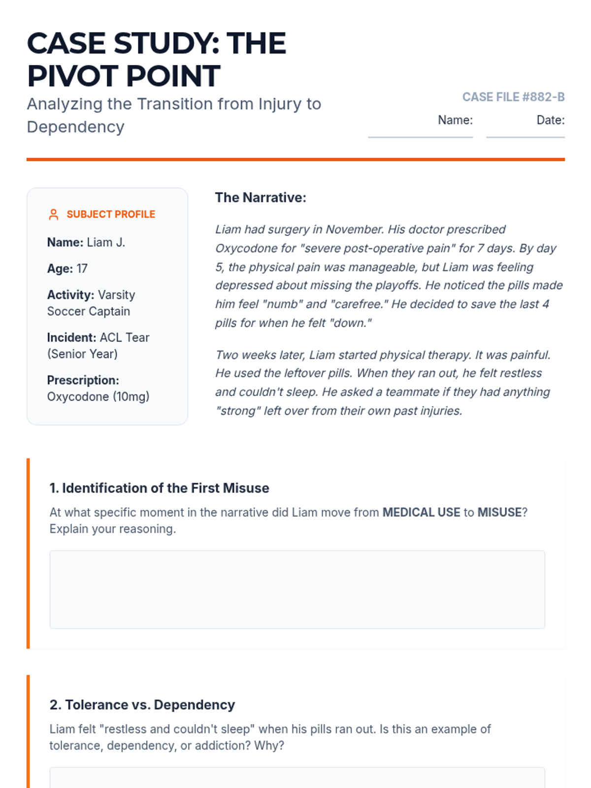 A 5-lesson sequence for 9th-grade students focused on opioid awareness, moving from reading prescription labels to safe storage and refusal skills. Students analyze the transition from medical use to dependency and develop practical safety protocols for medication management.