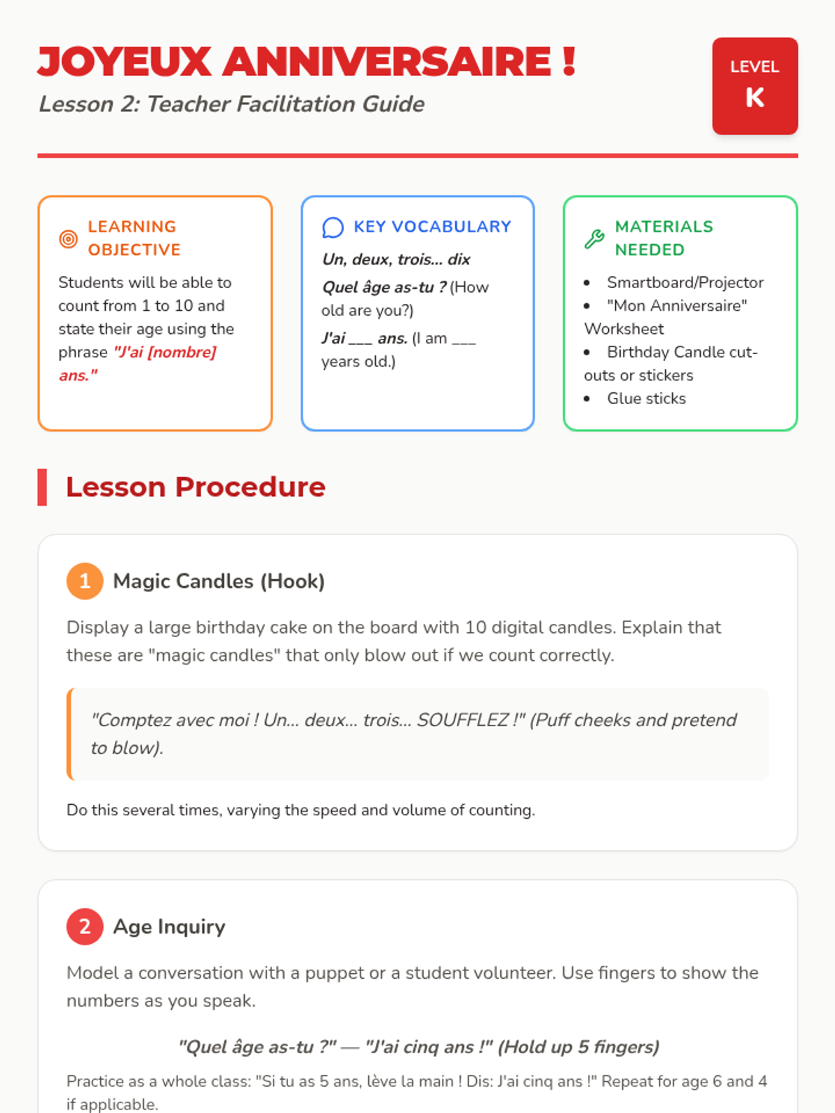 A Kindergarten sequence focused on auditory recognition of Mandarin Chinese numbers 1-10. Through hands-on workshops, cultural gestures, and interactive games, students connect Mandarin number sounds to physical quantities and sequences.